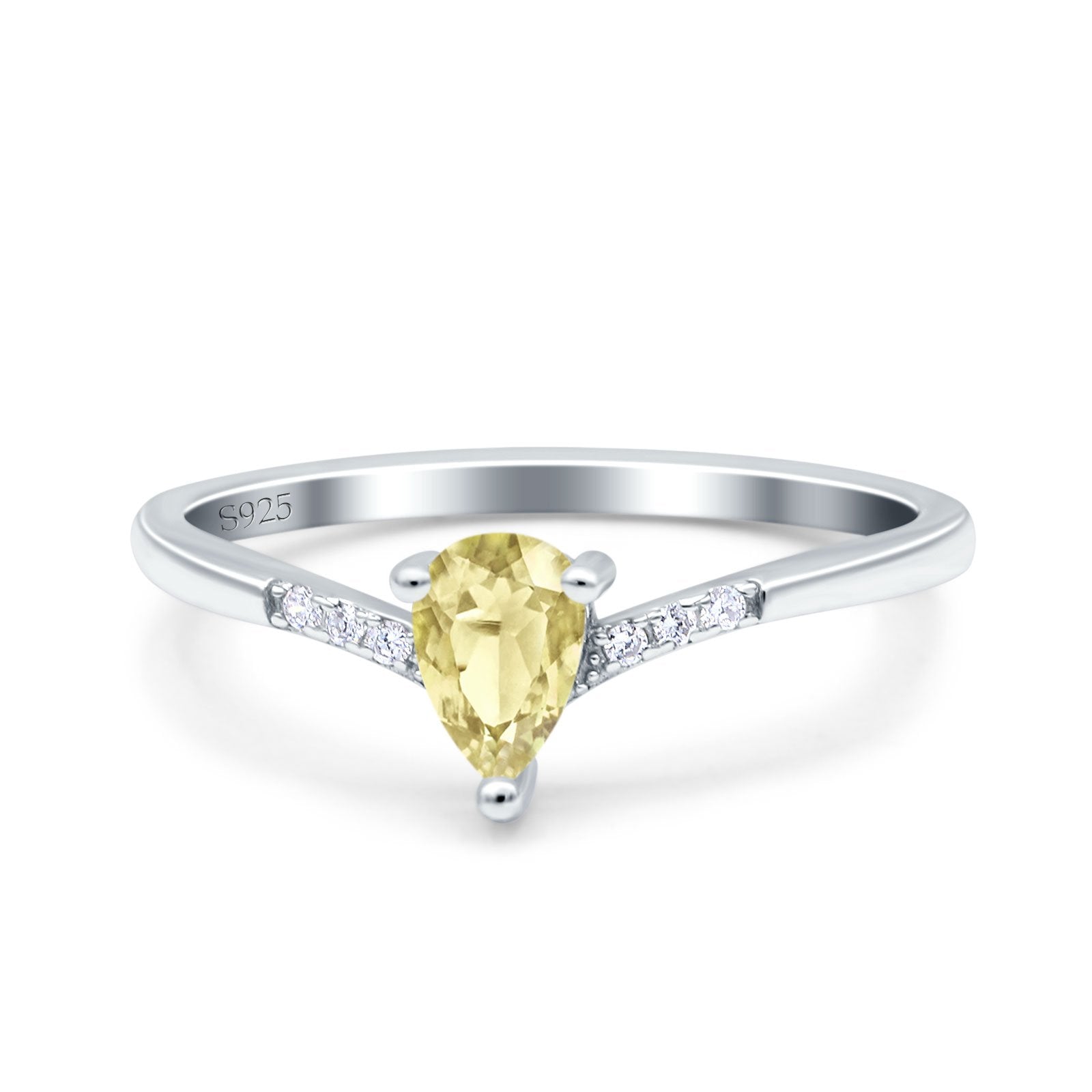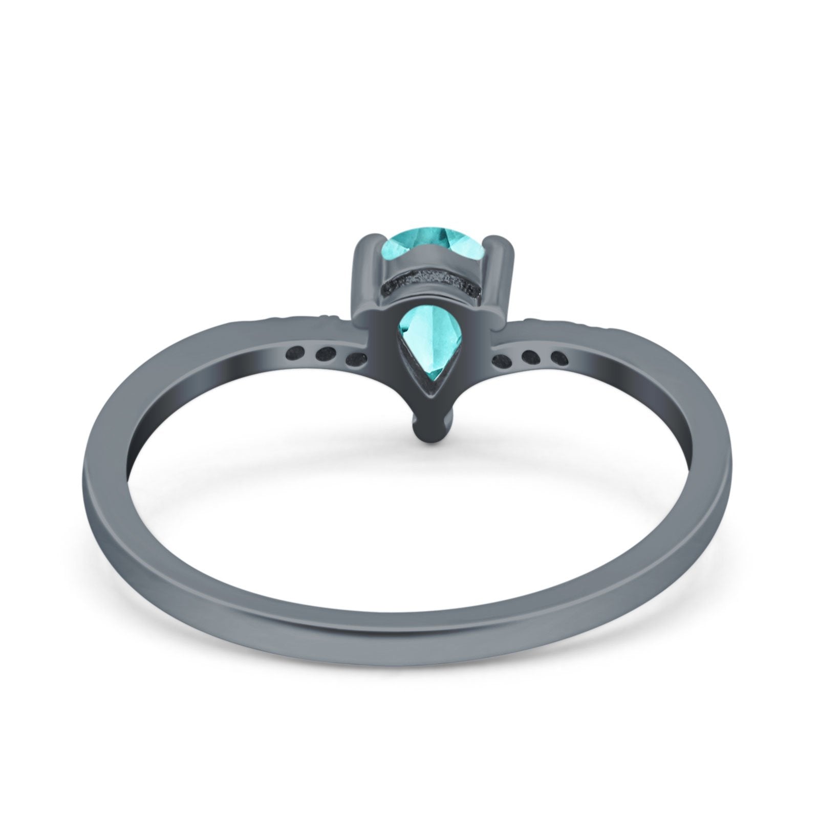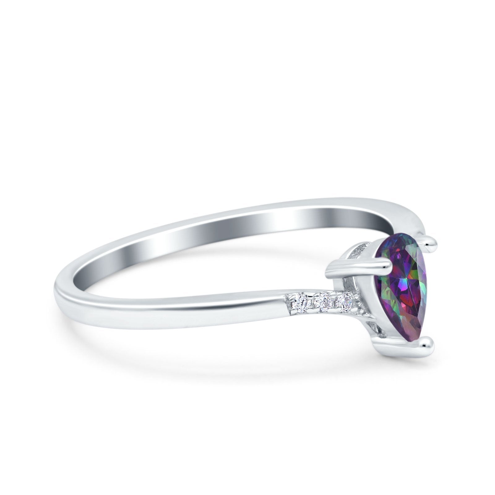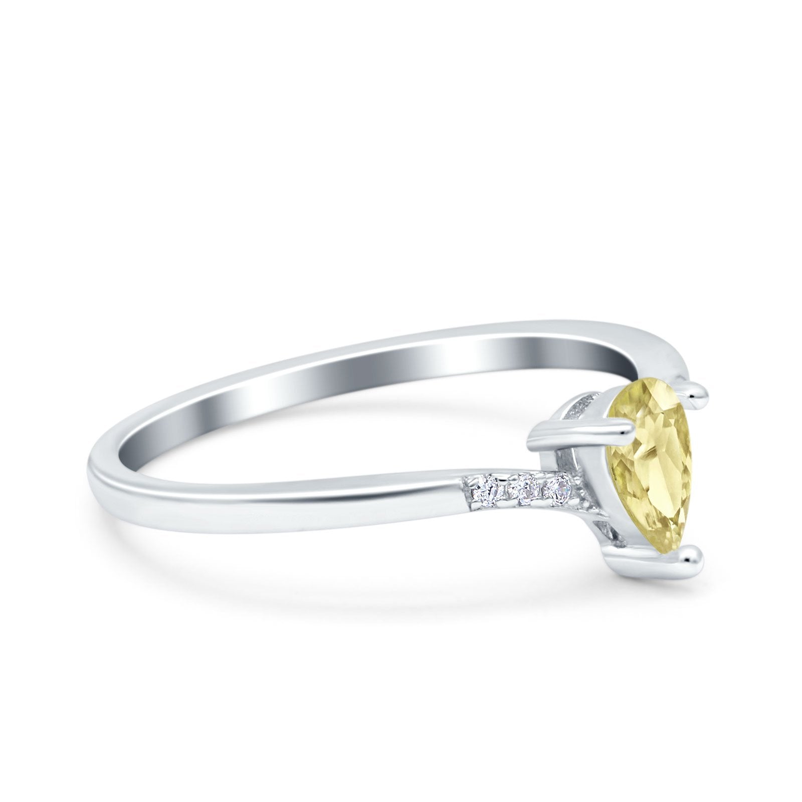 Teardrop Pear Art Deco Wedding Bridal Engagement Ring Round Simulated Cubic Zirconia 925 Sterling Silver