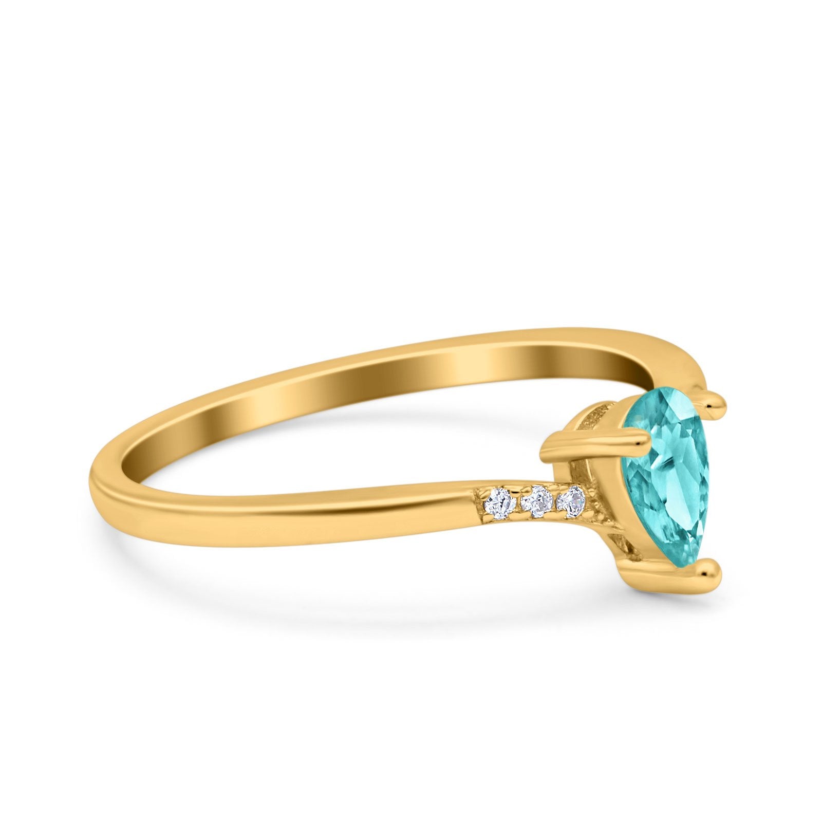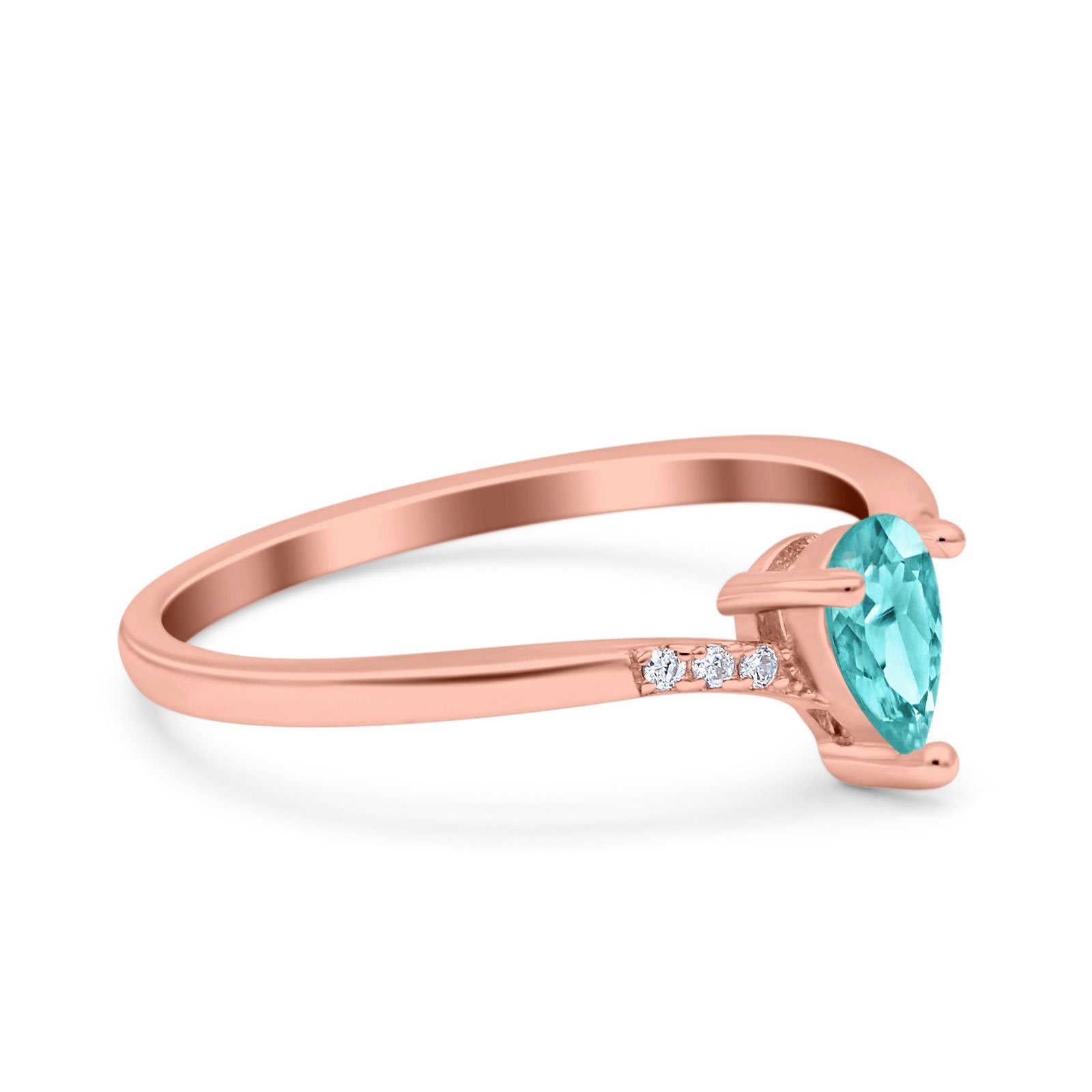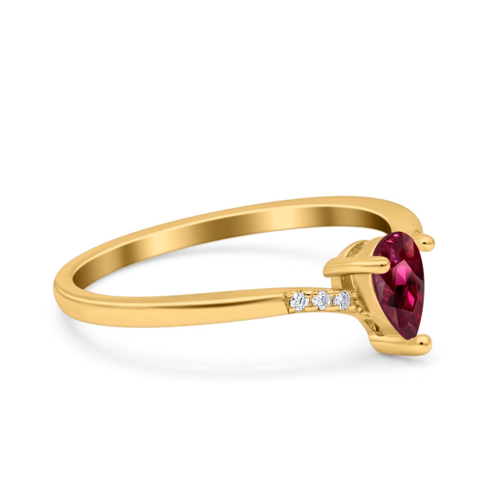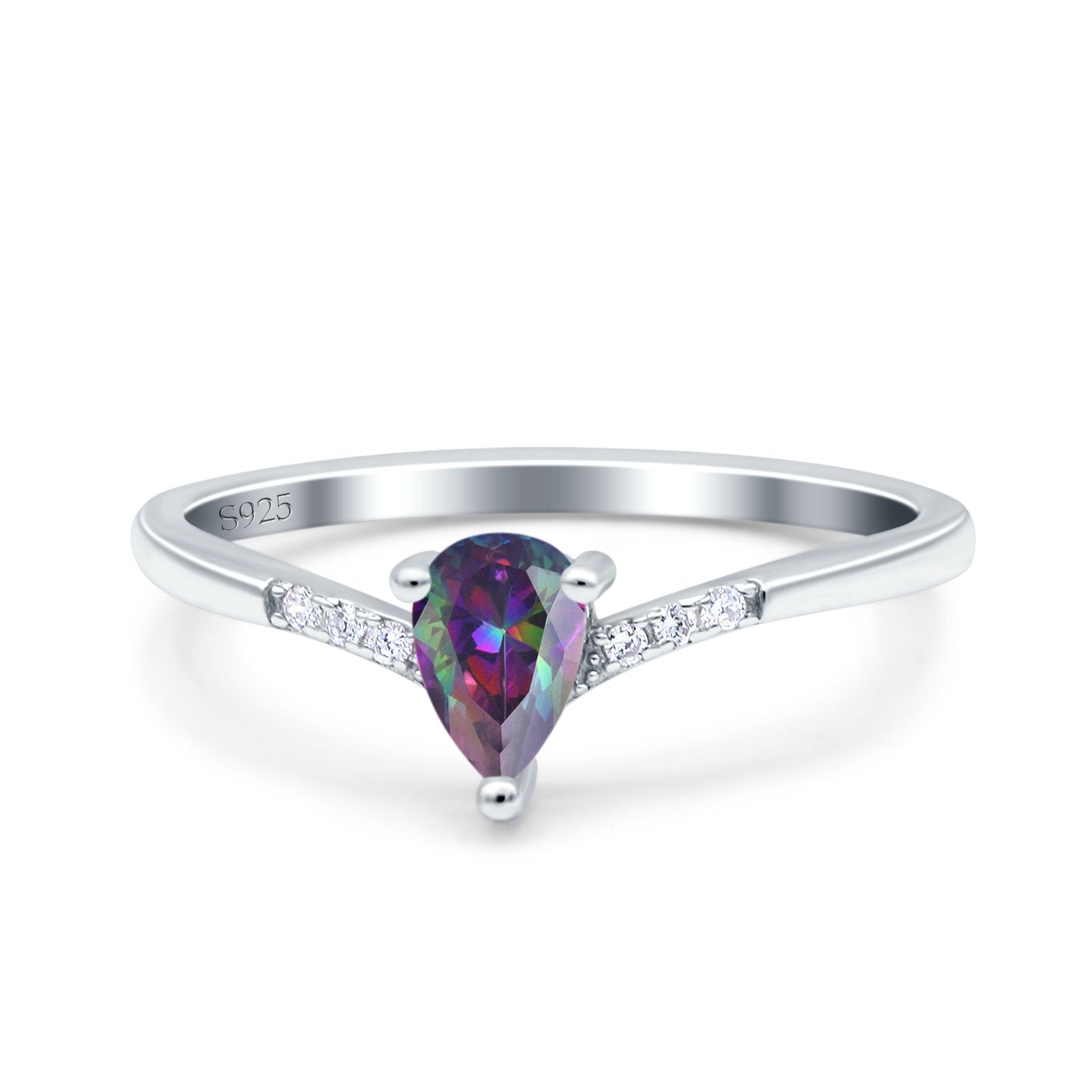 Teardrop Pear Art Deco Wedding Bridal Engagement Ring Round Simulated Cubic Zirconia 925 Sterling Silver