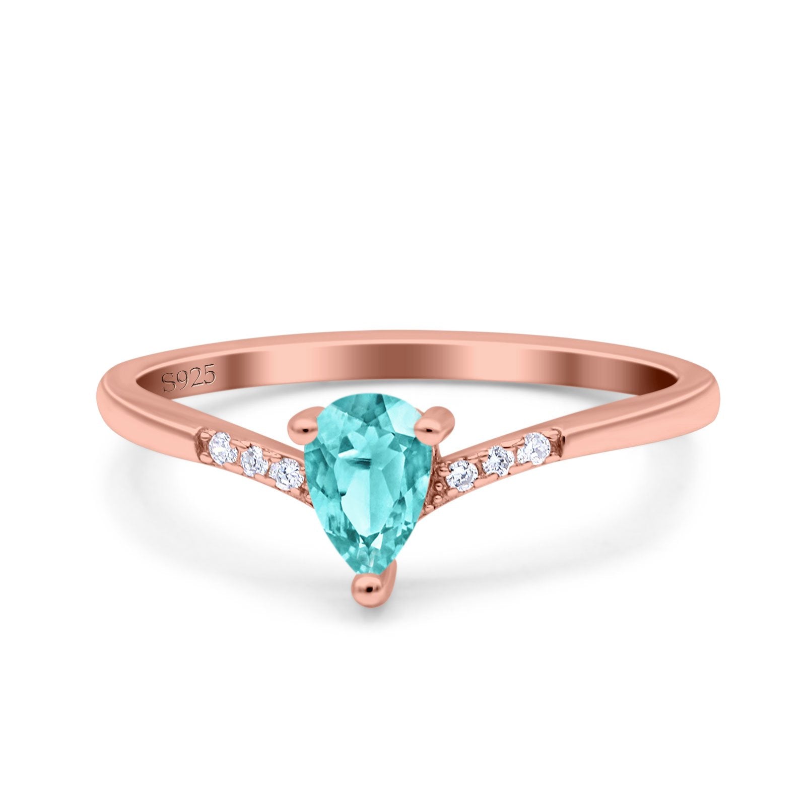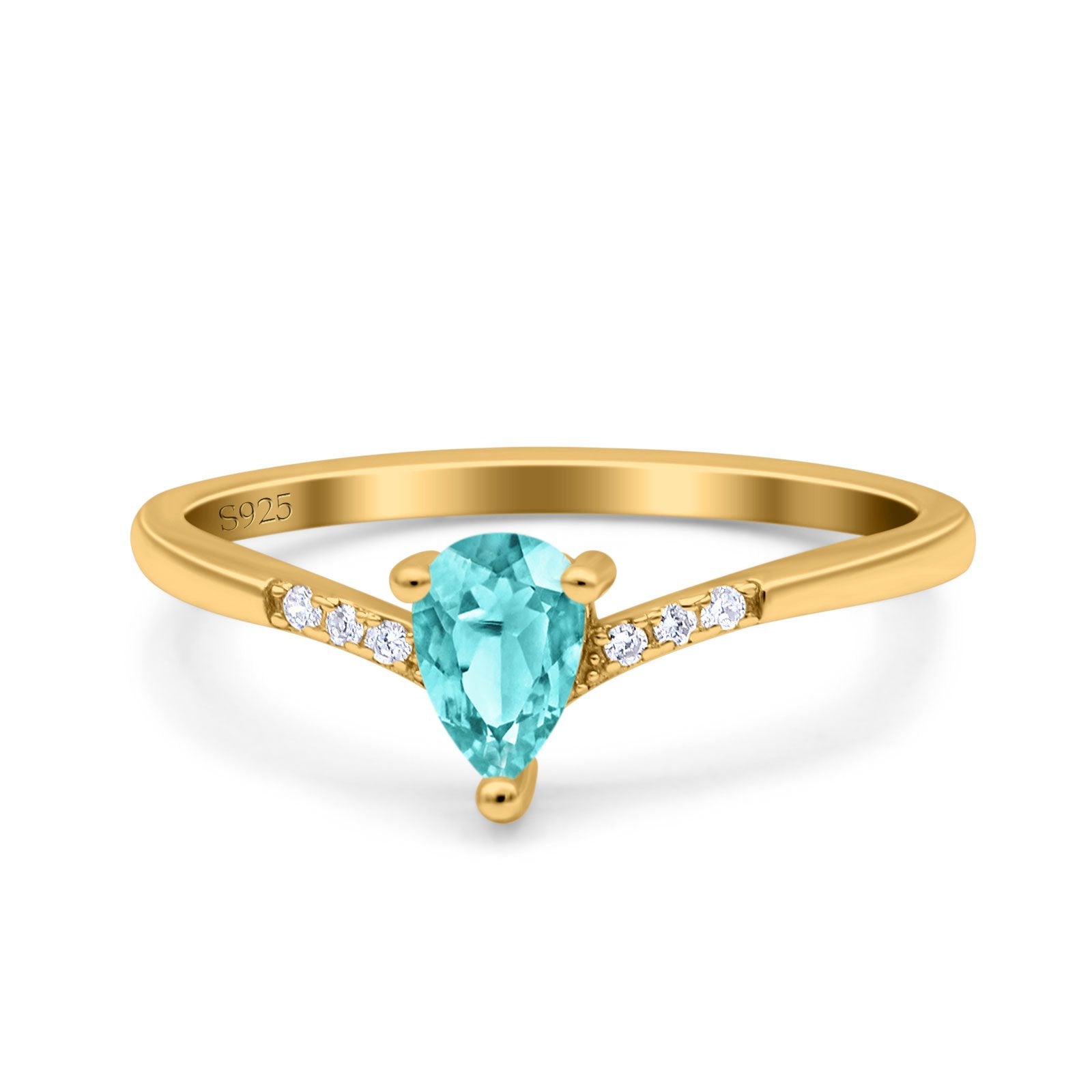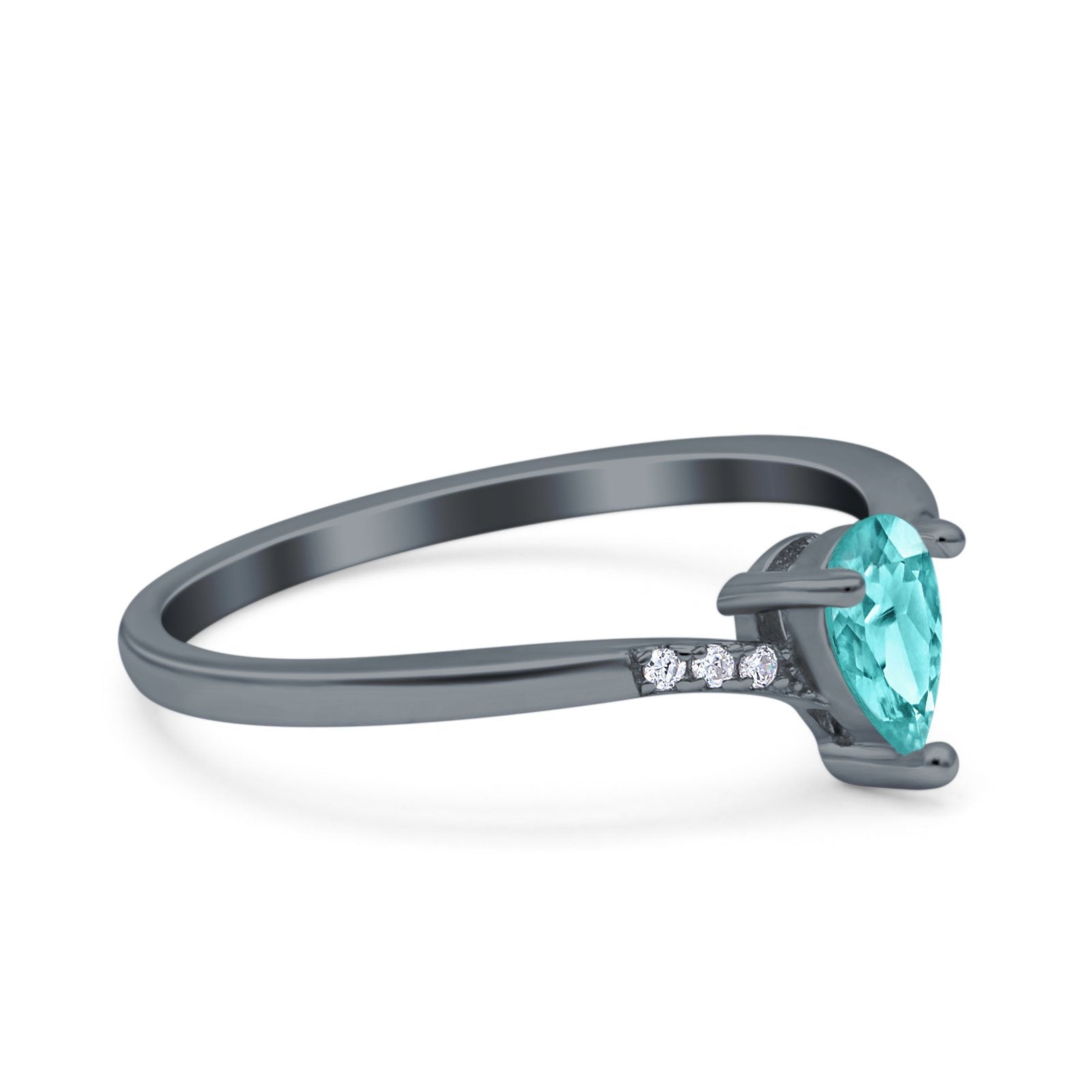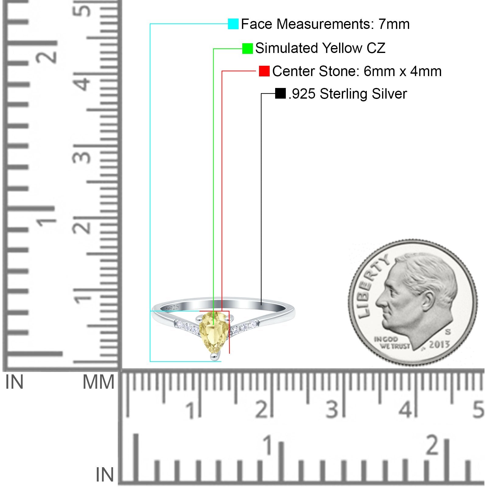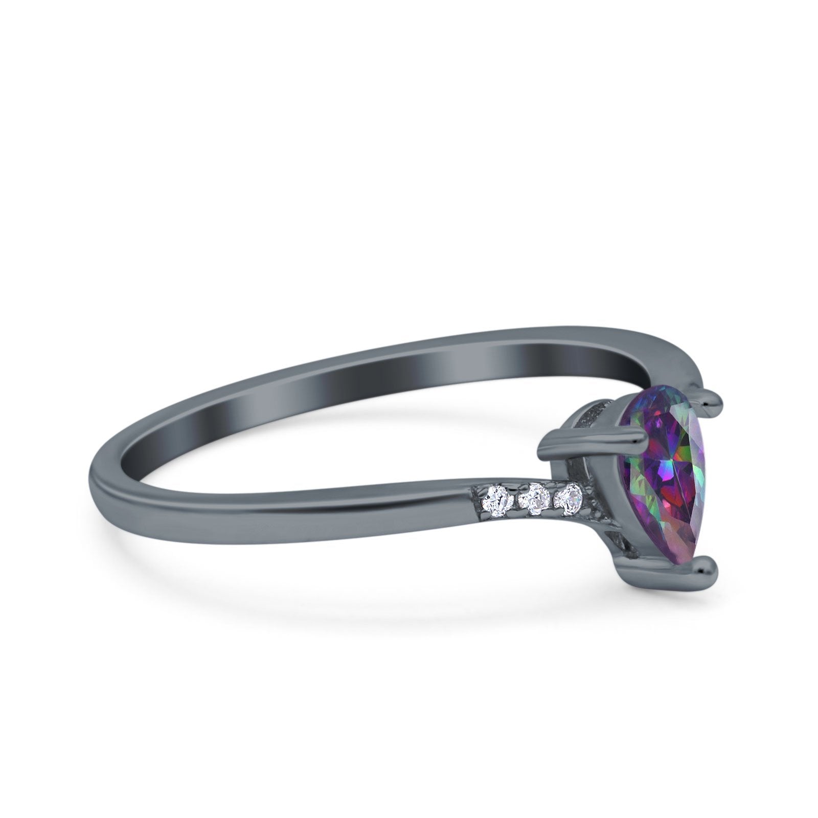 Teardrop Pear Art Deco Wedding Bridal Engagement Ring Round Simulated Cubic Zirconia 925 Sterling Silver