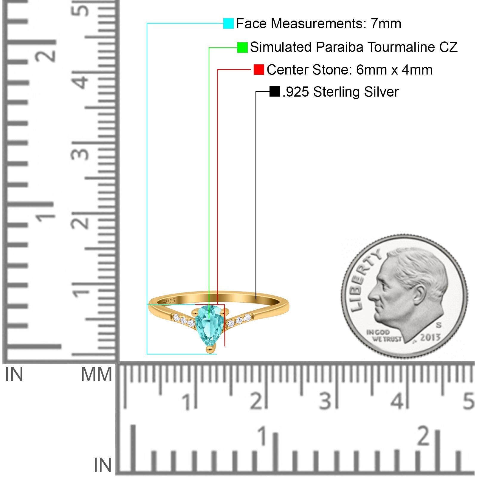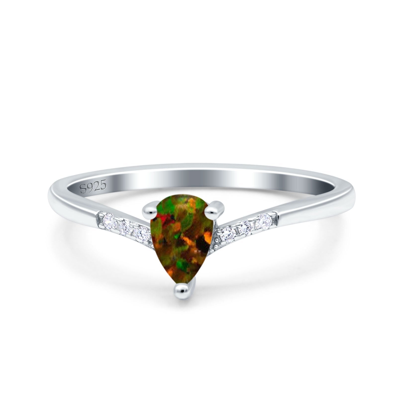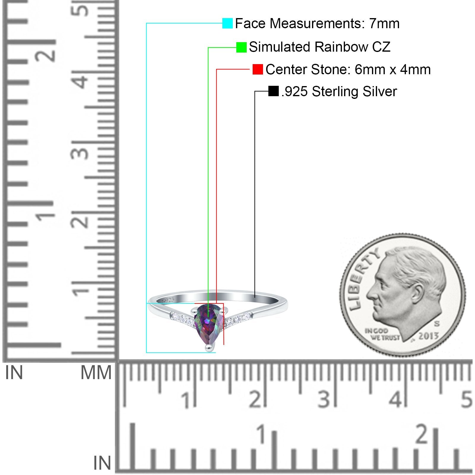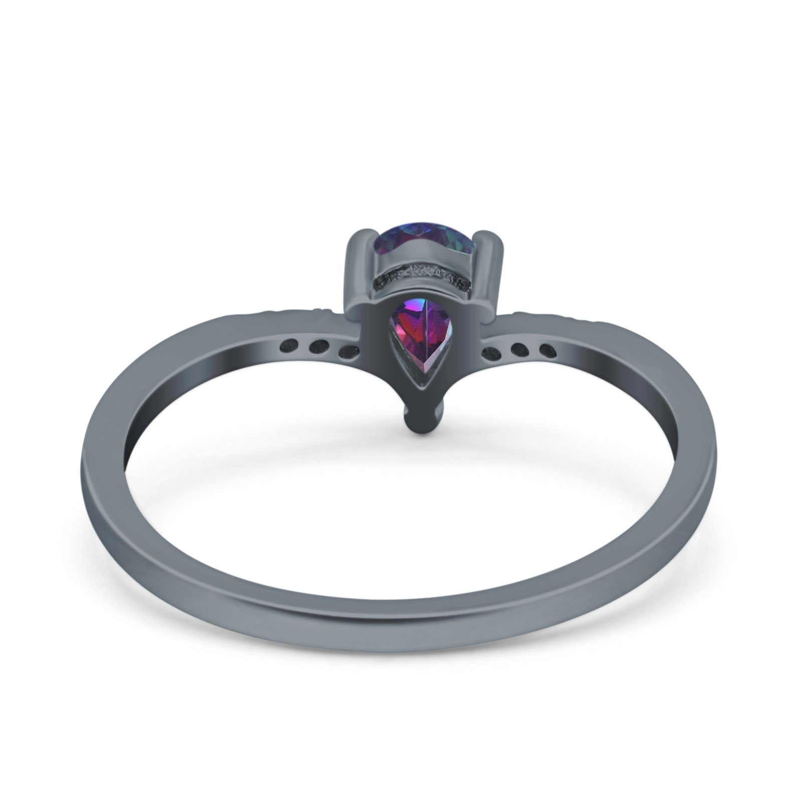 Teardrop Pear Art Deco Wedding Bridal Engagement Ring Round Simulated Cubic Zirconia 925 Sterling Silver