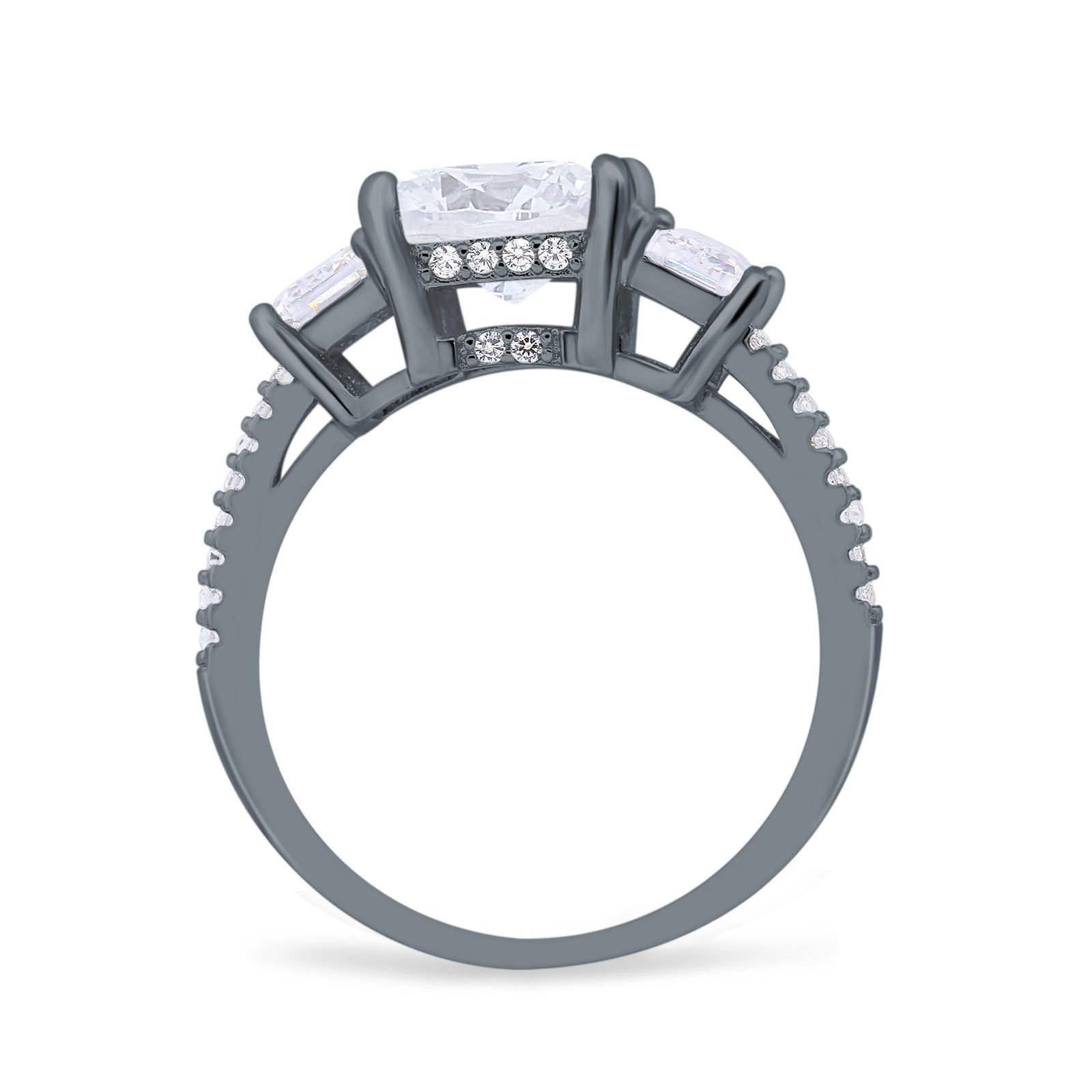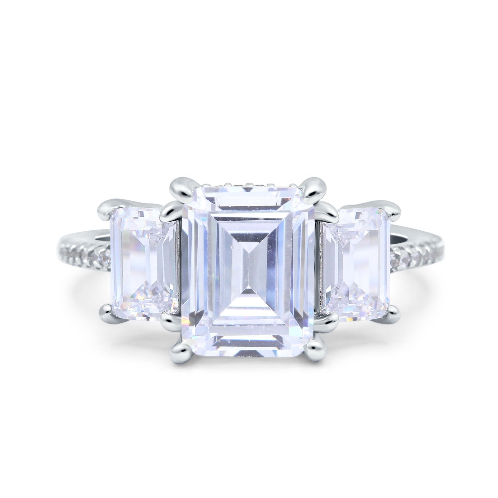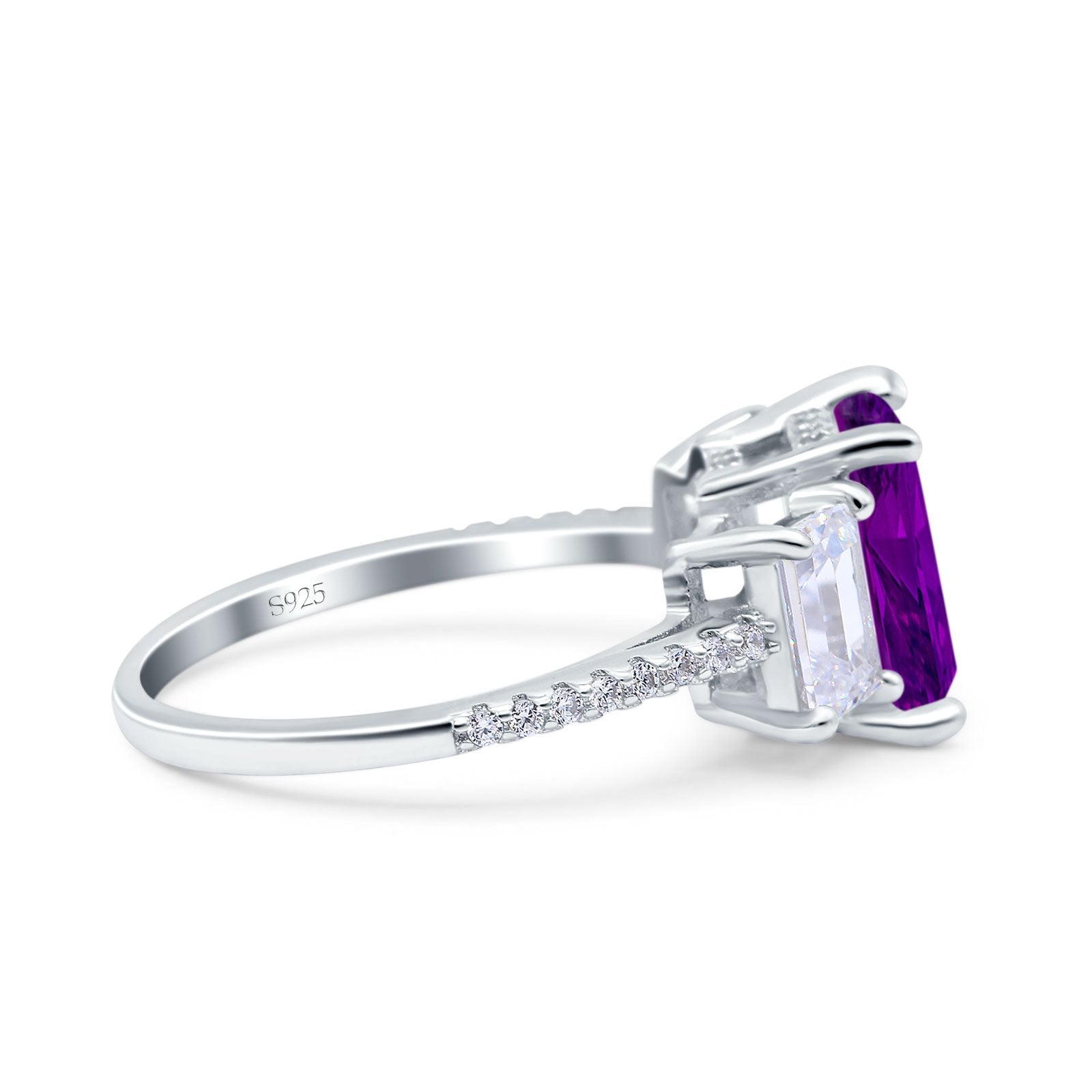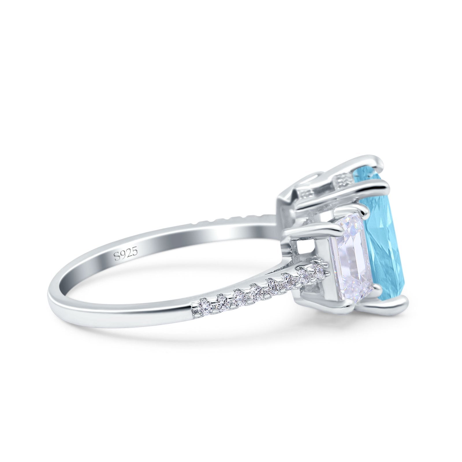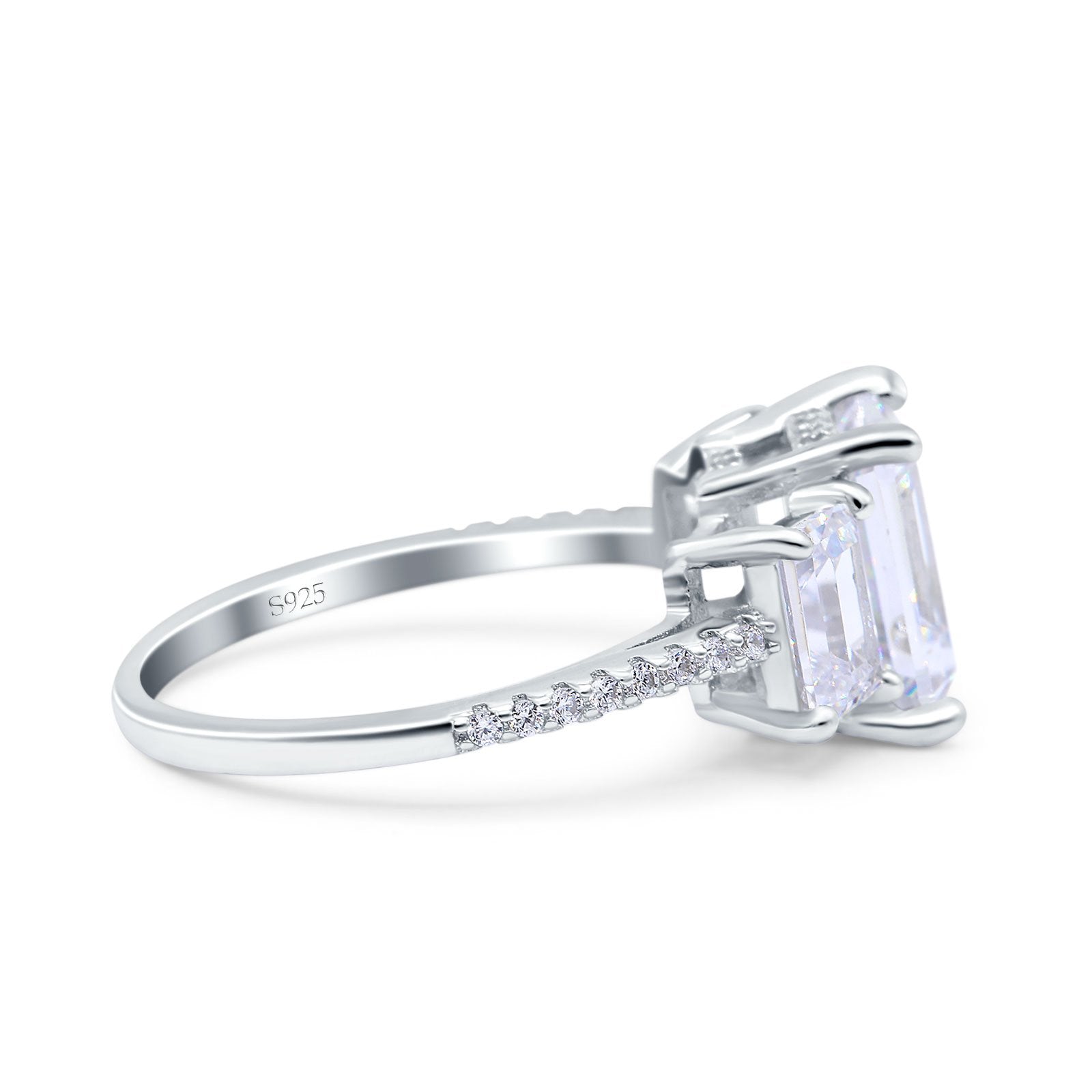 Three Stone Radiant Cut Wedding Engagement Bridal Ring Round Simulated Cubic Zirconia 925 Sterling Silver