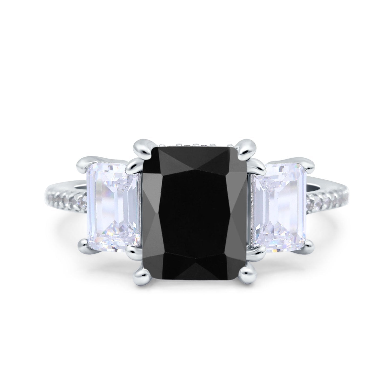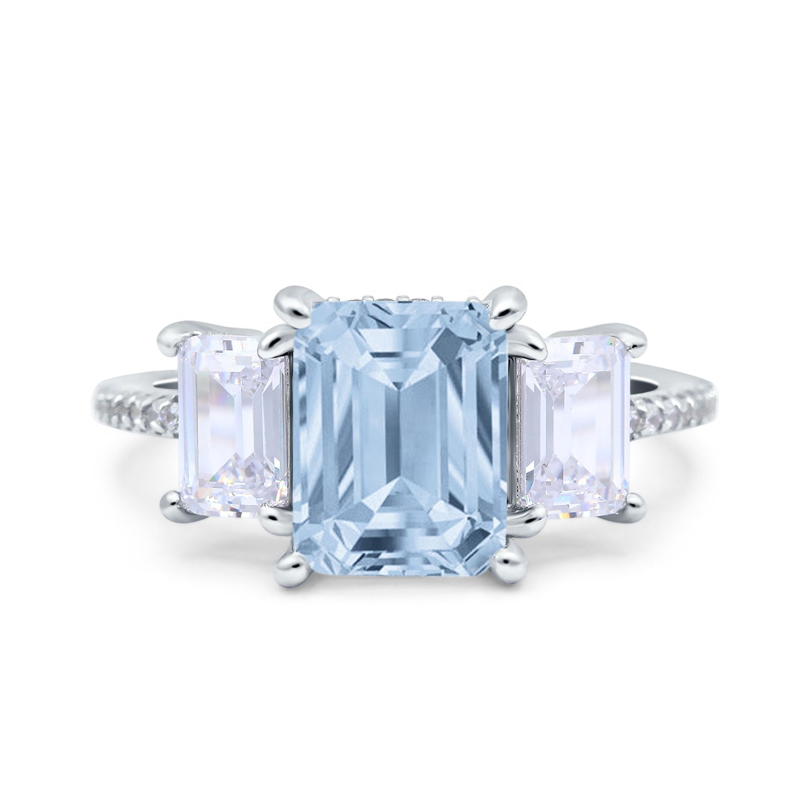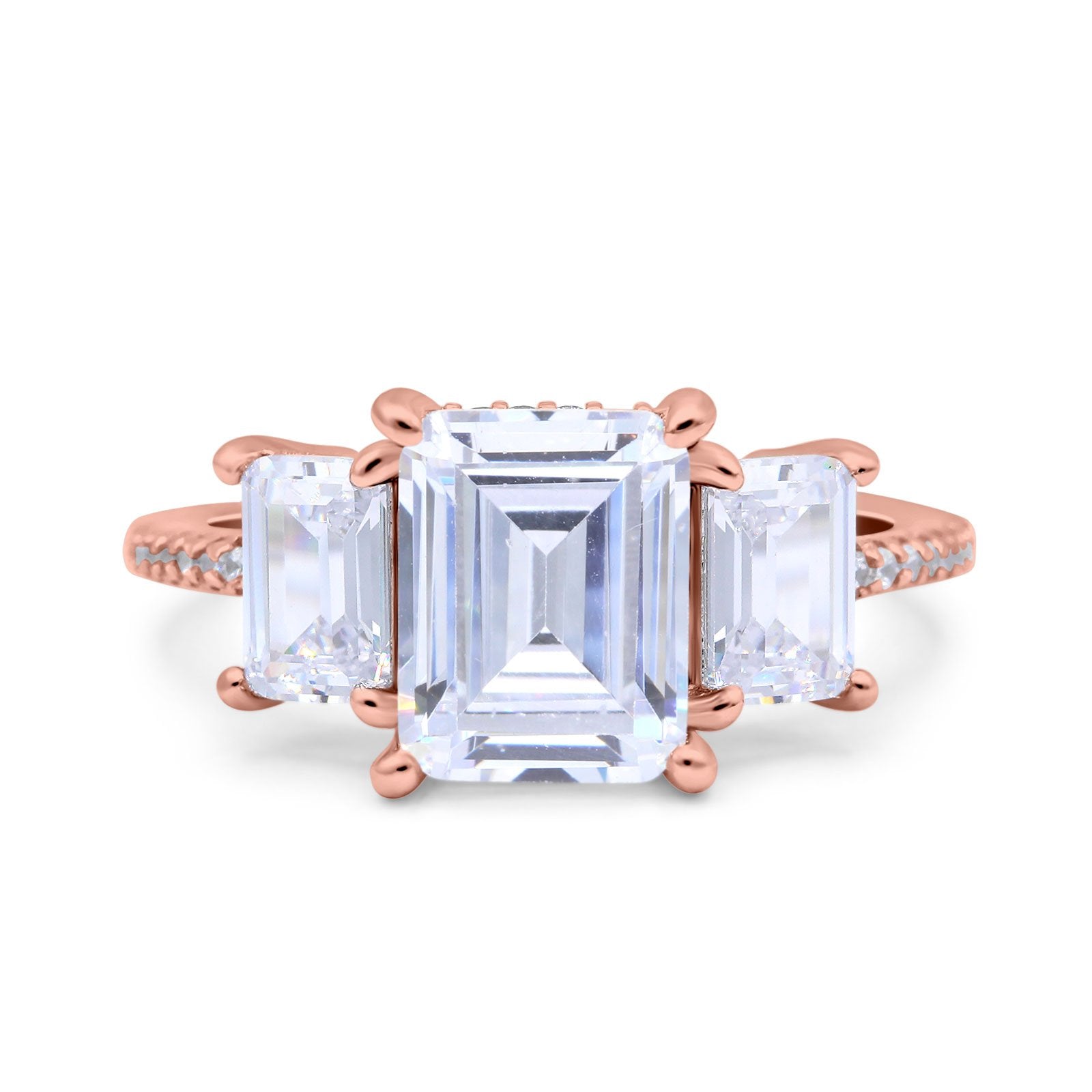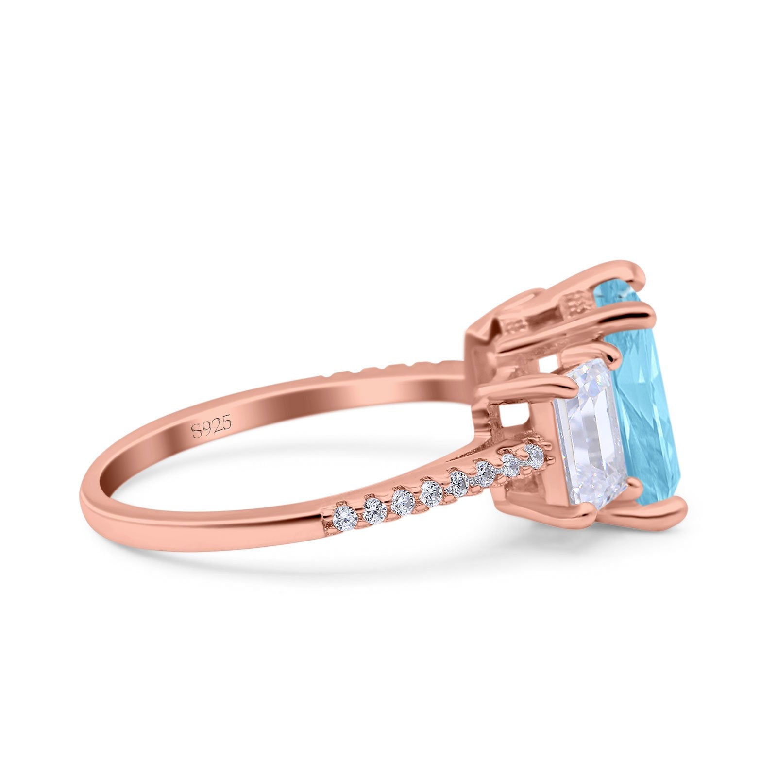 Three Stone Radiant Cut Wedding Engagement Bridal Ring Round Simulated Cubic Zirconia 925 Sterling Silver