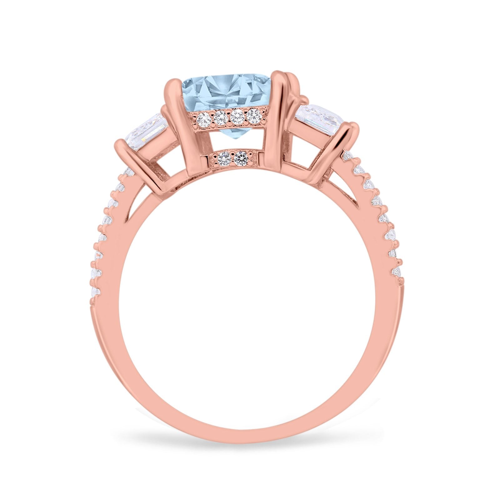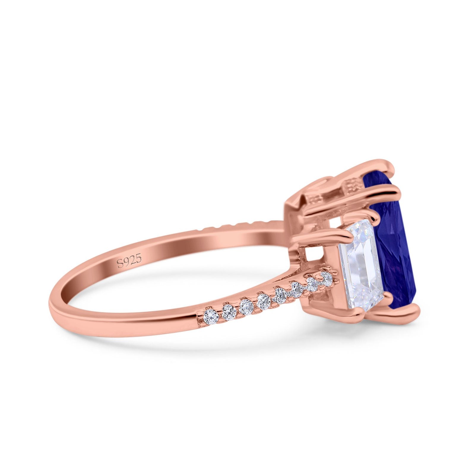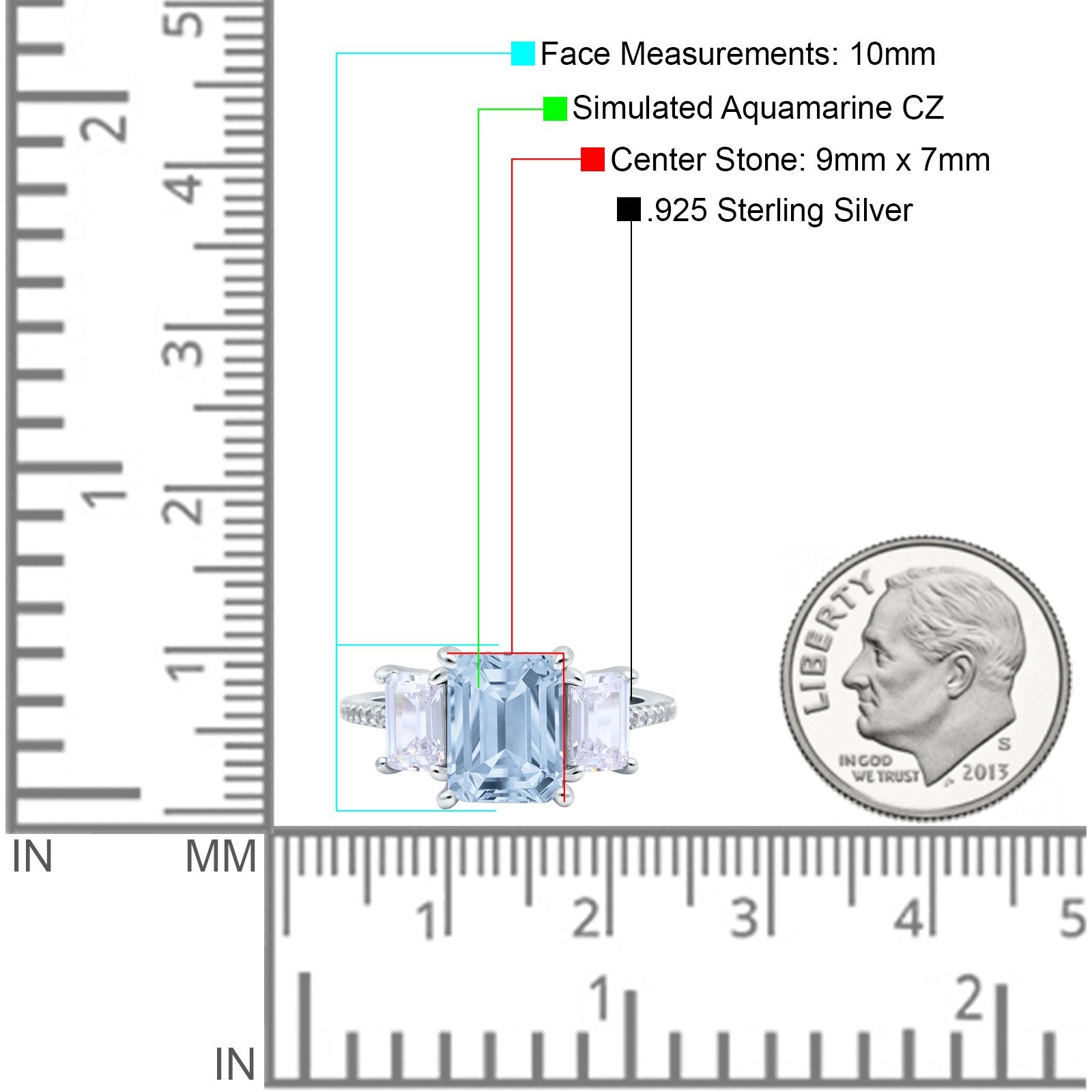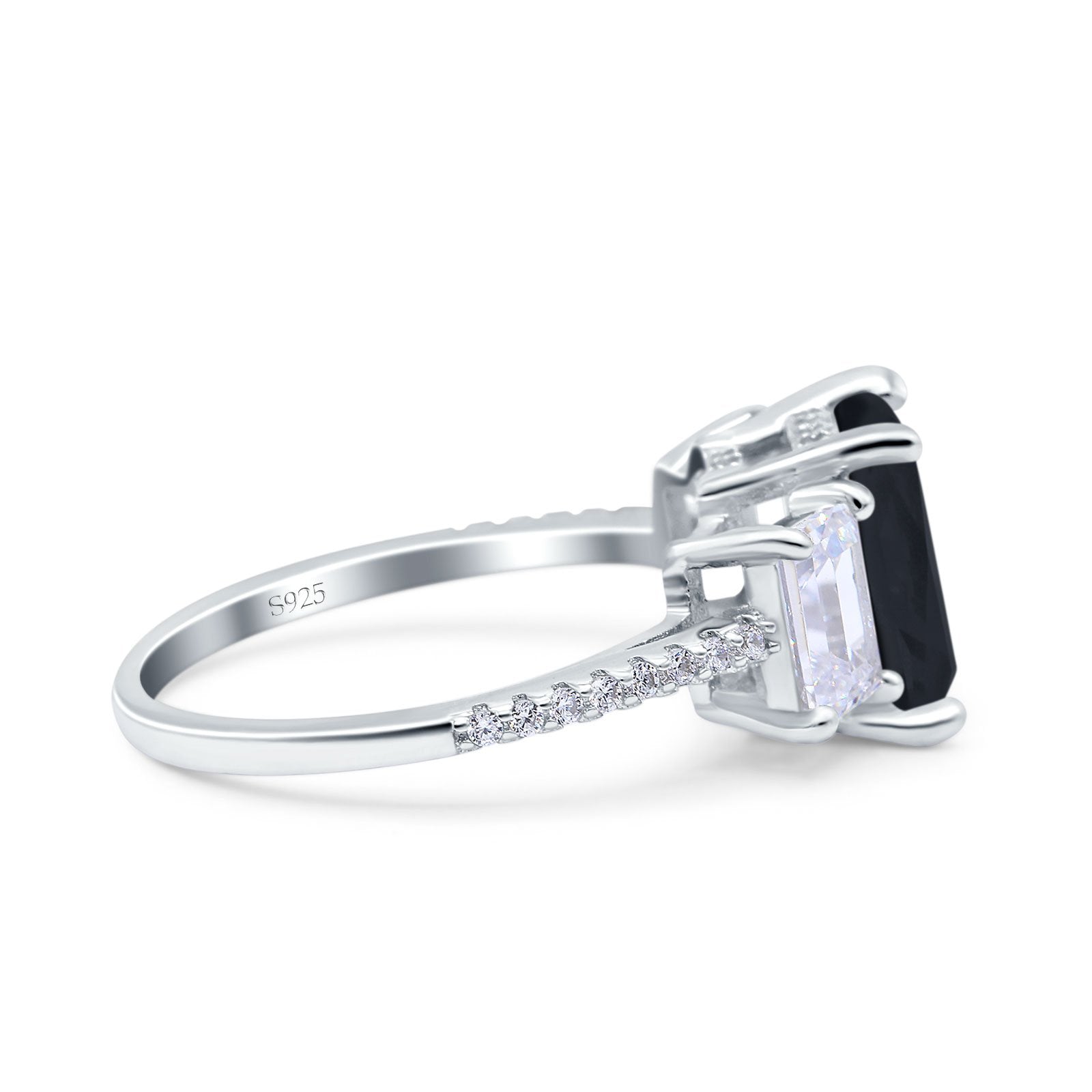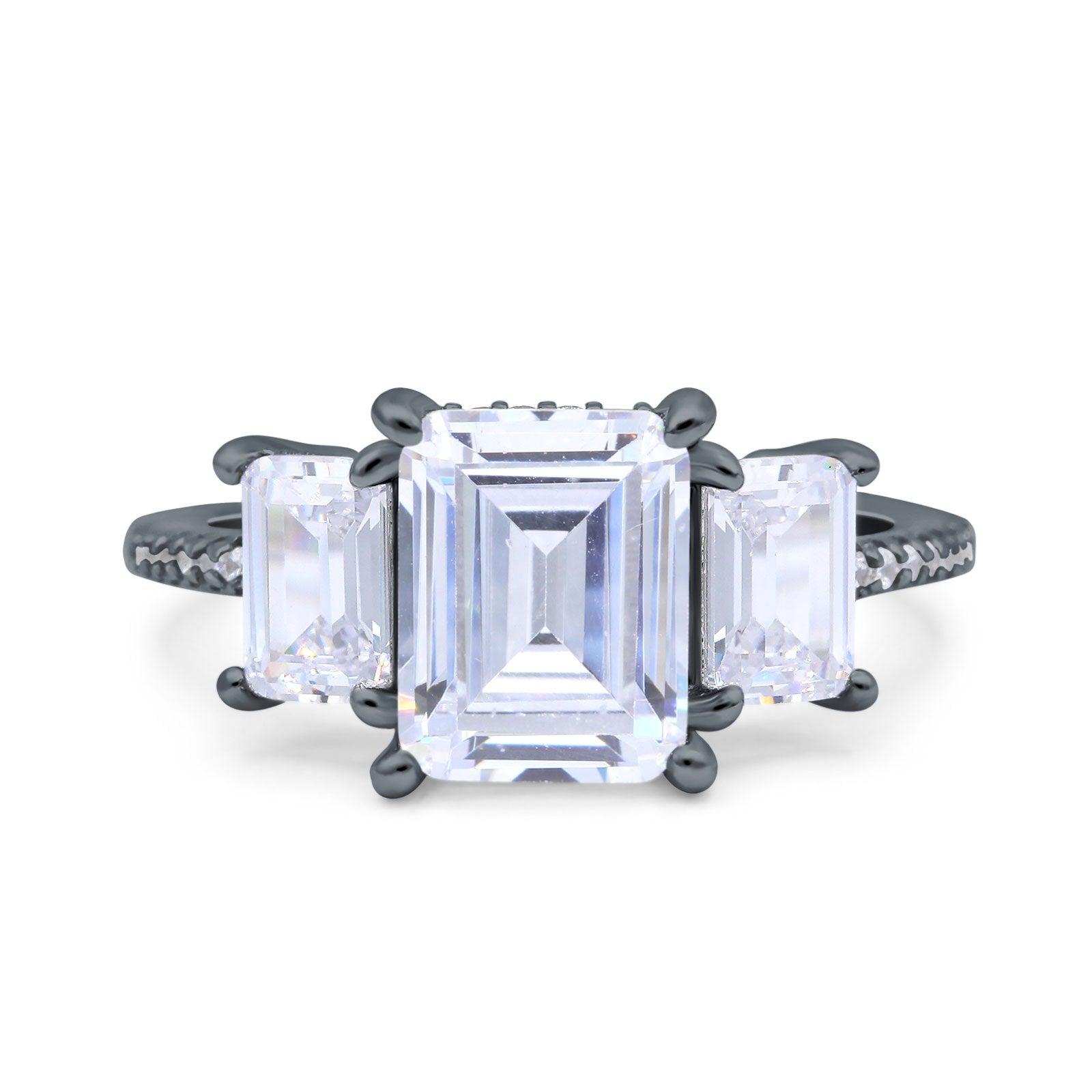 Three Stone Radiant Cut Wedding Engagement Bridal Ring Round Simulated Cubic Zirconia 925 Sterling Silver