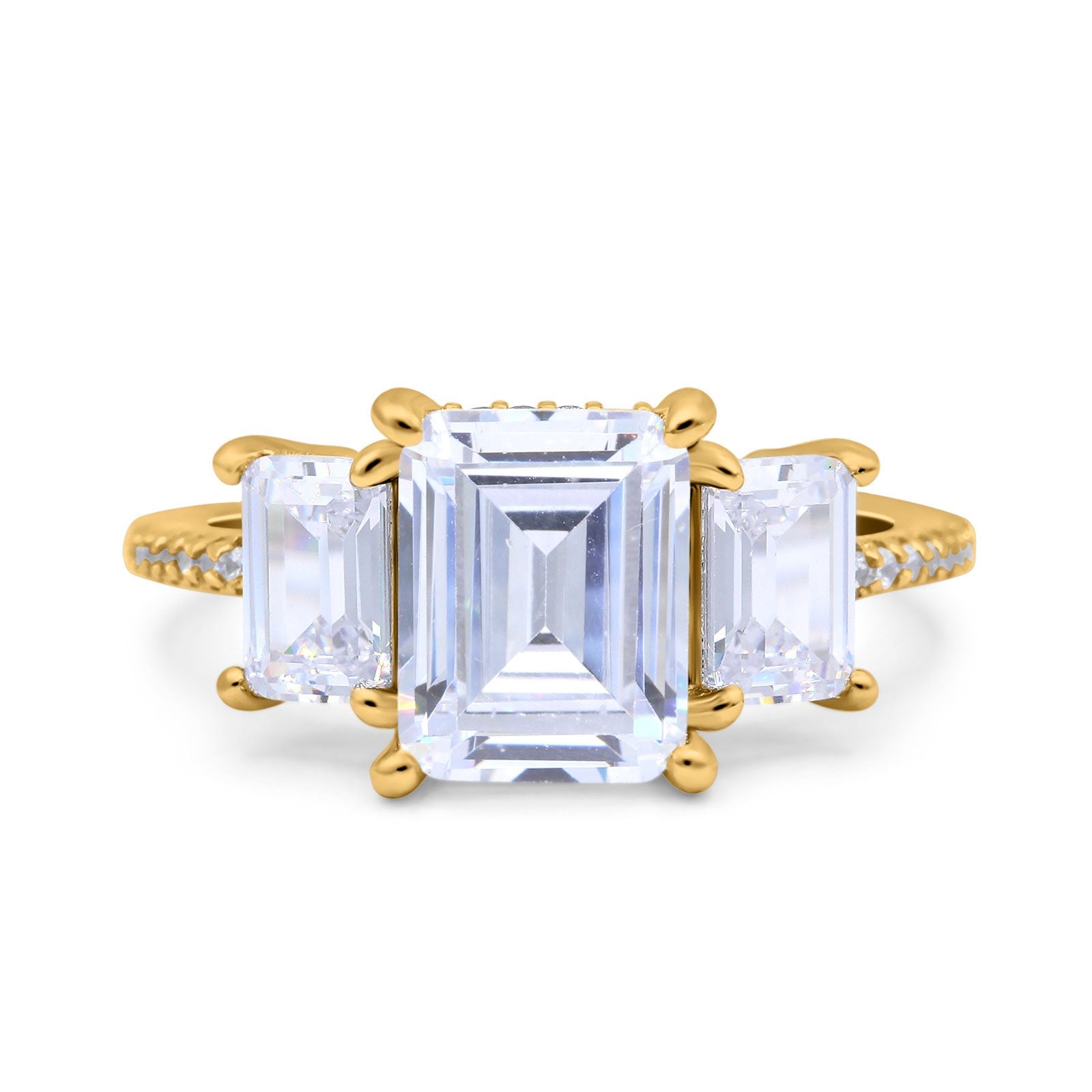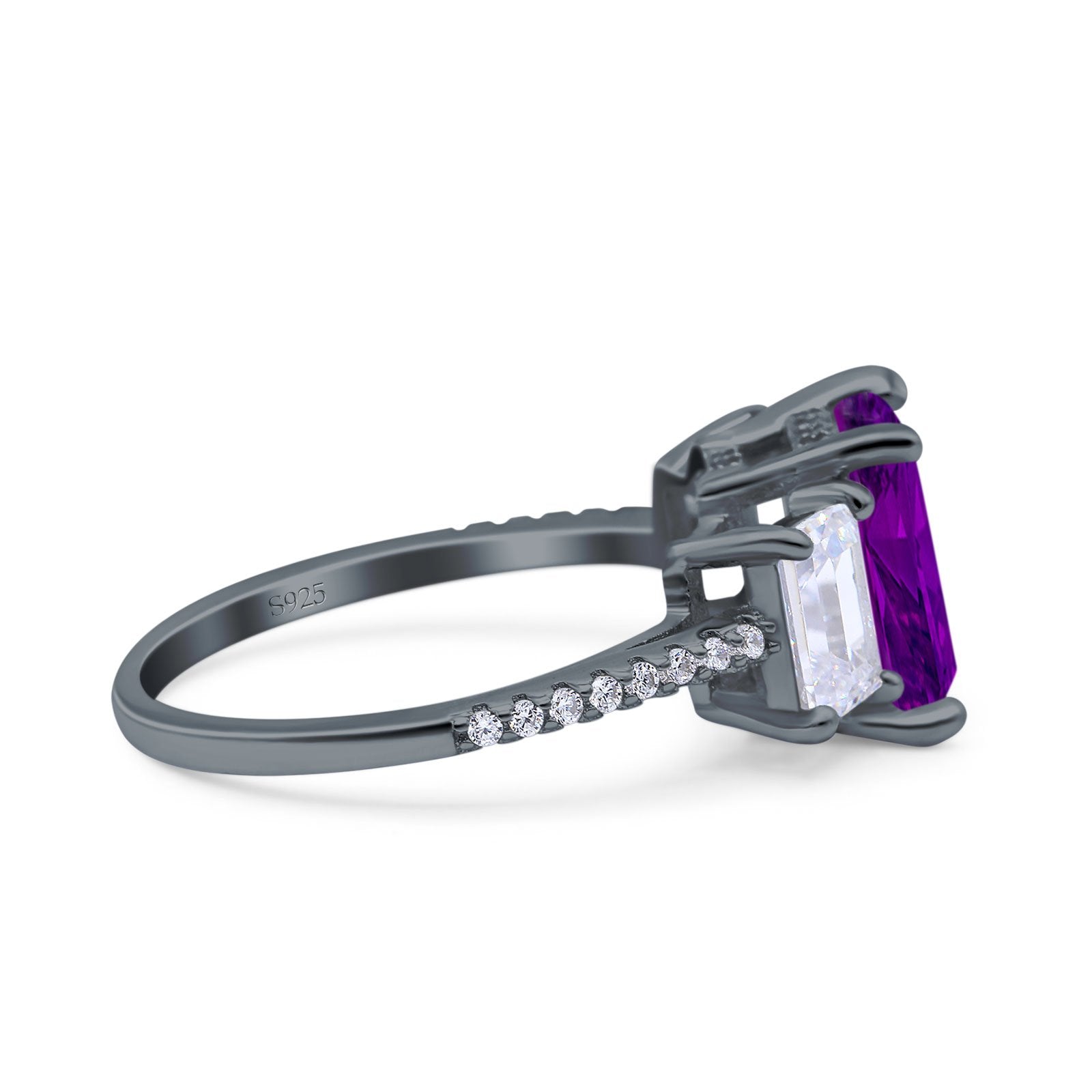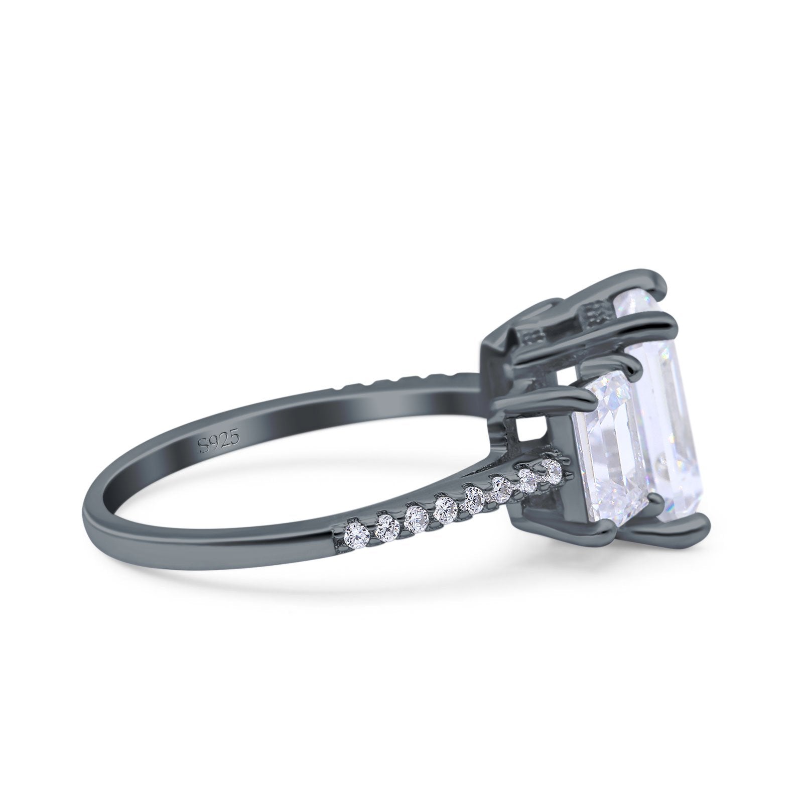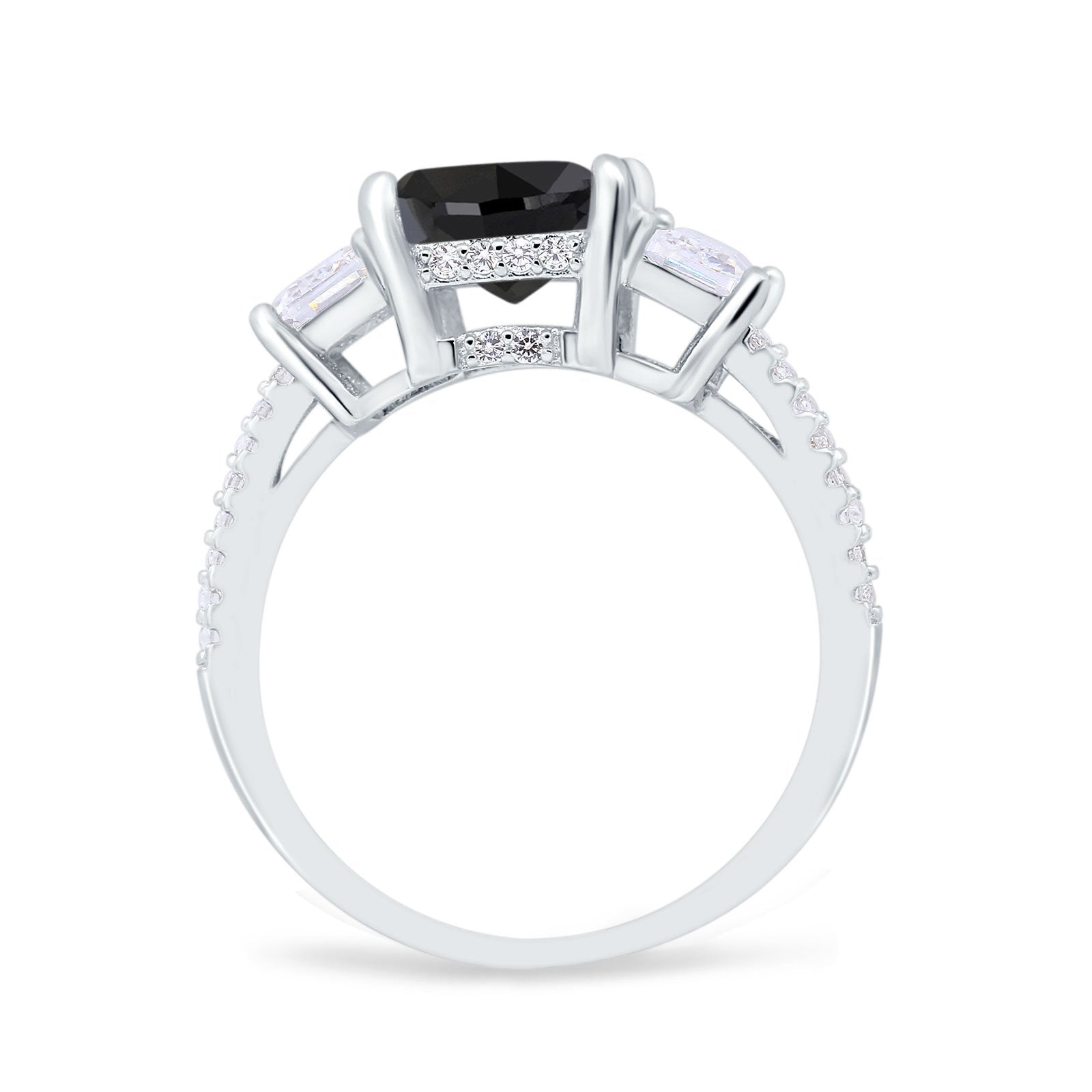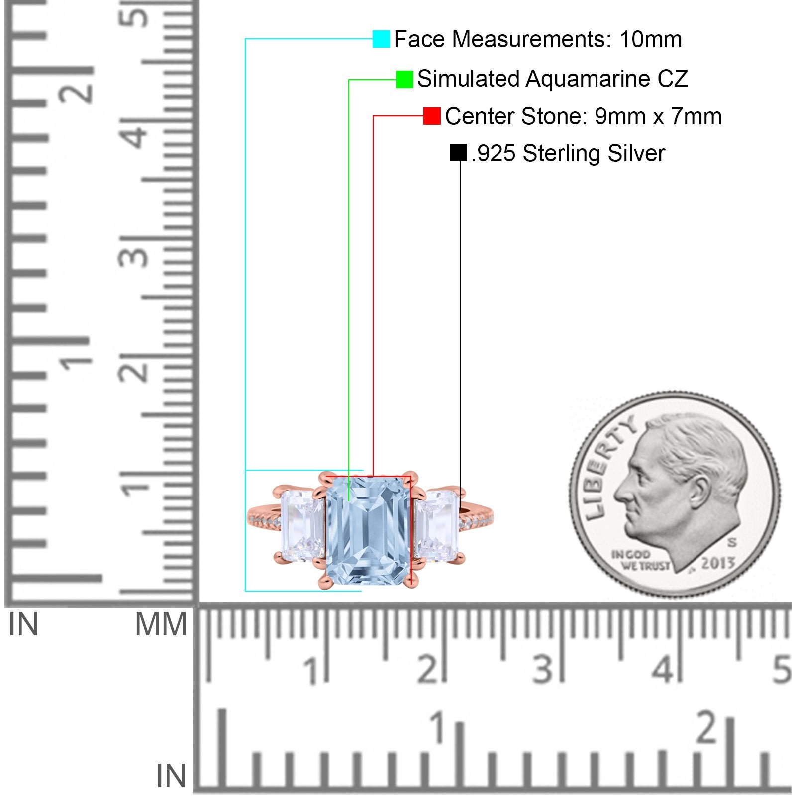 Three Stone Radiant Cut Wedding Engagement Bridal Ring Round Simulated Cubic Zirconia 925 Sterling Silver