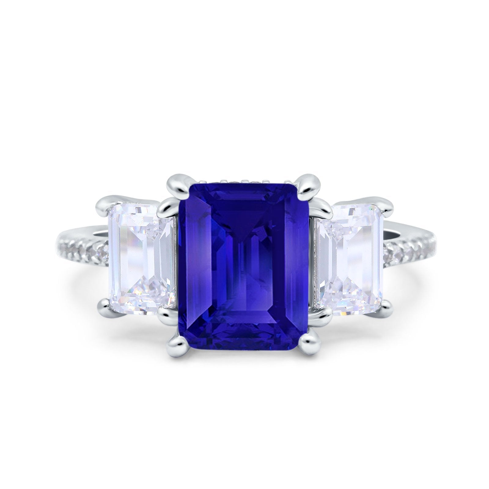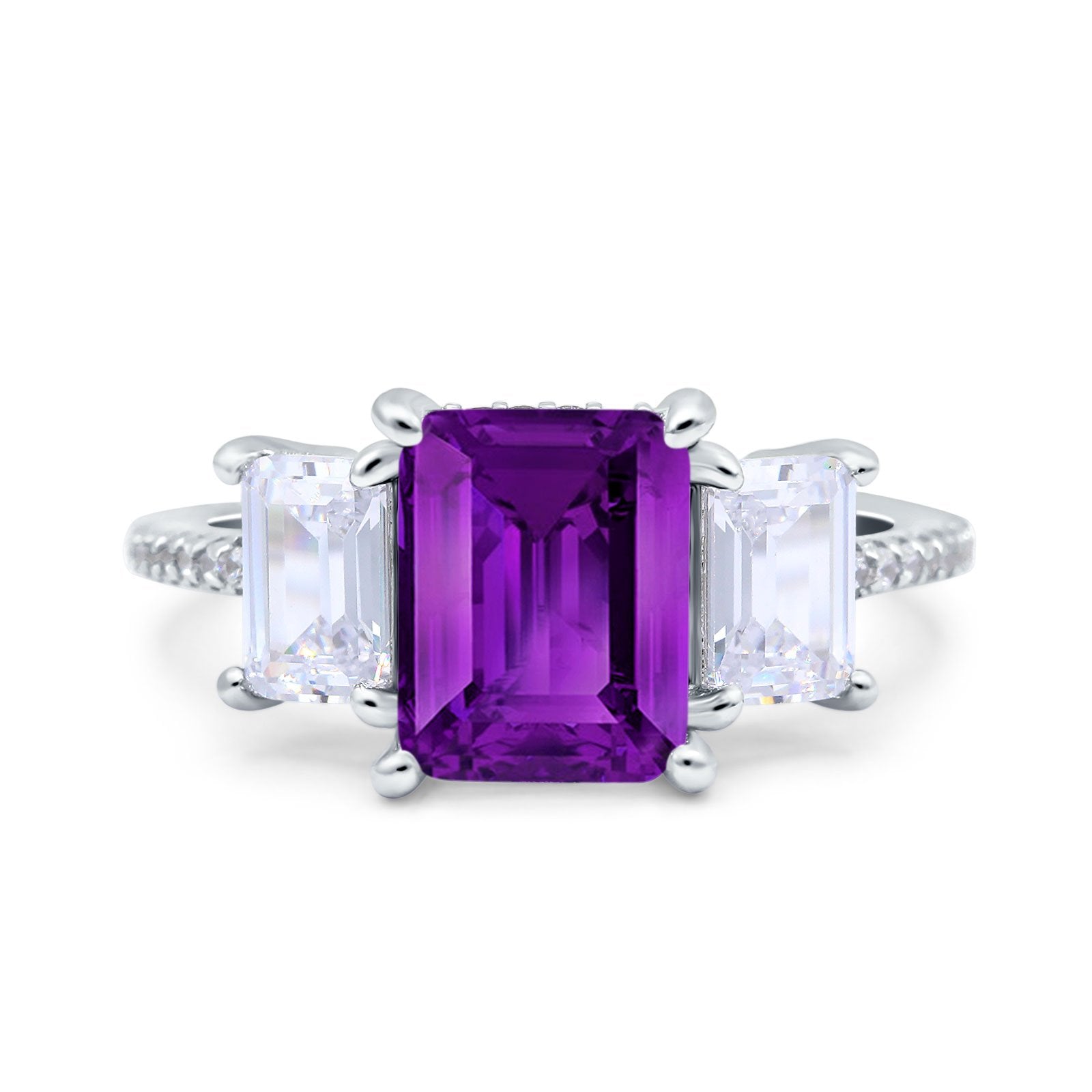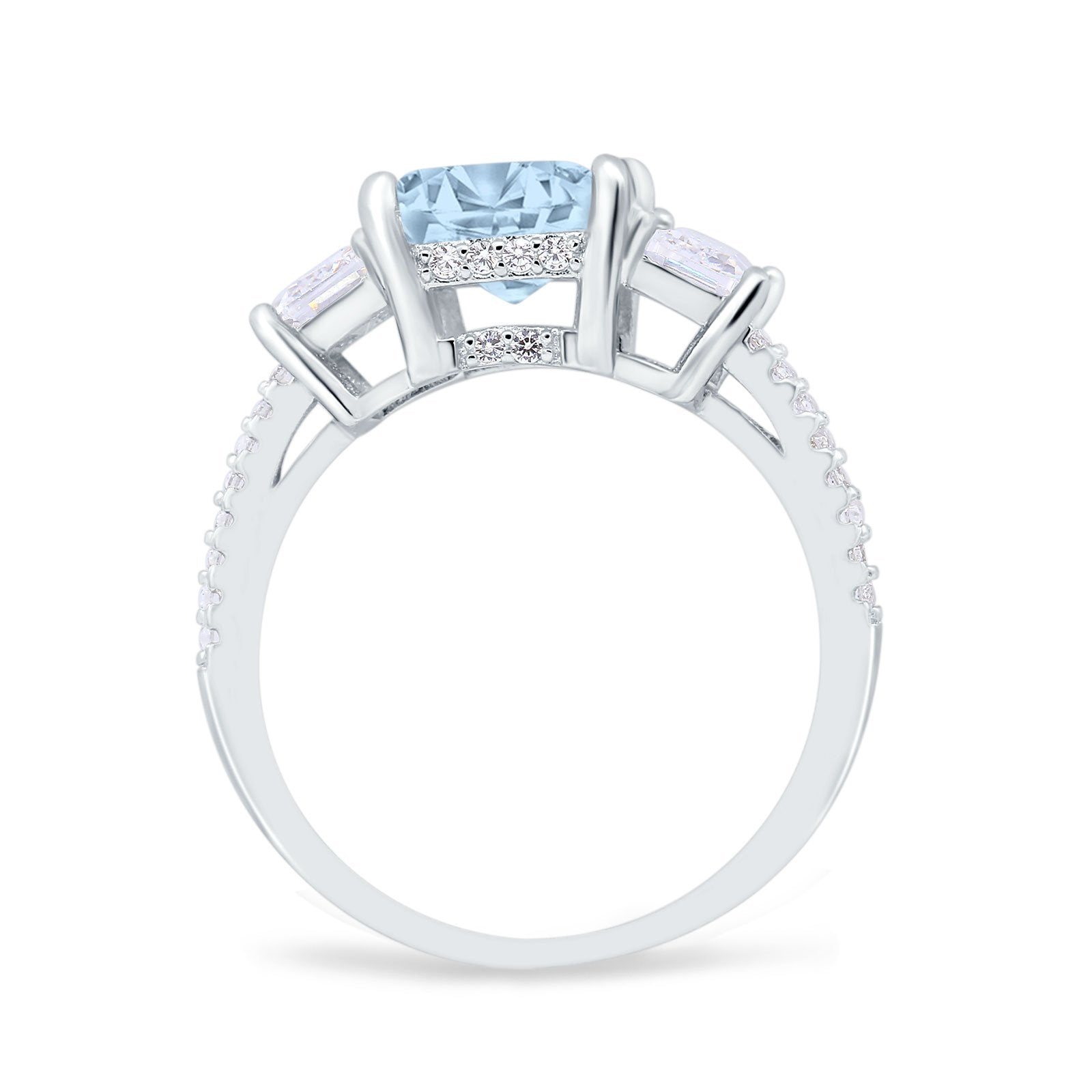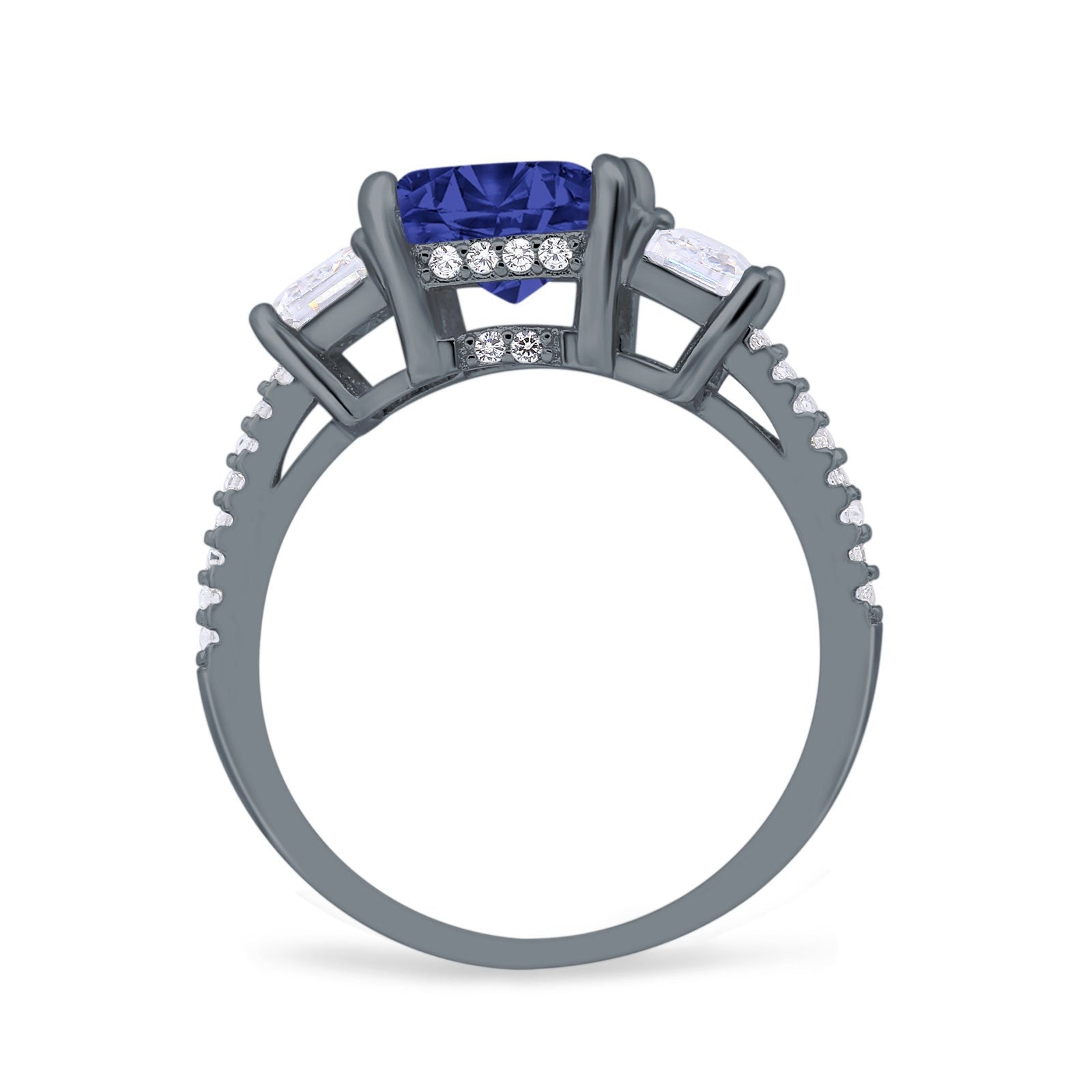 Three Stone Radiant Cut Wedding Engagement Bridal Ring Round Simulated Cubic Zirconia 925 Sterling Silver