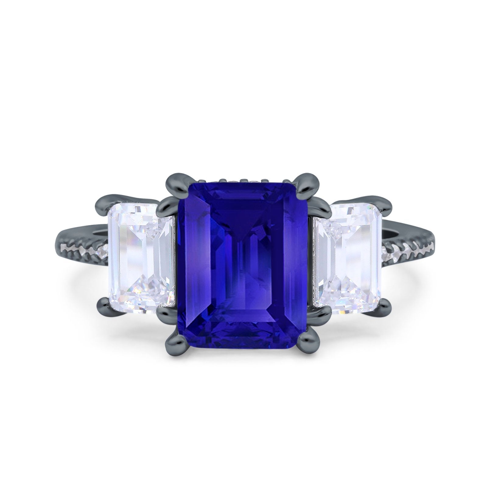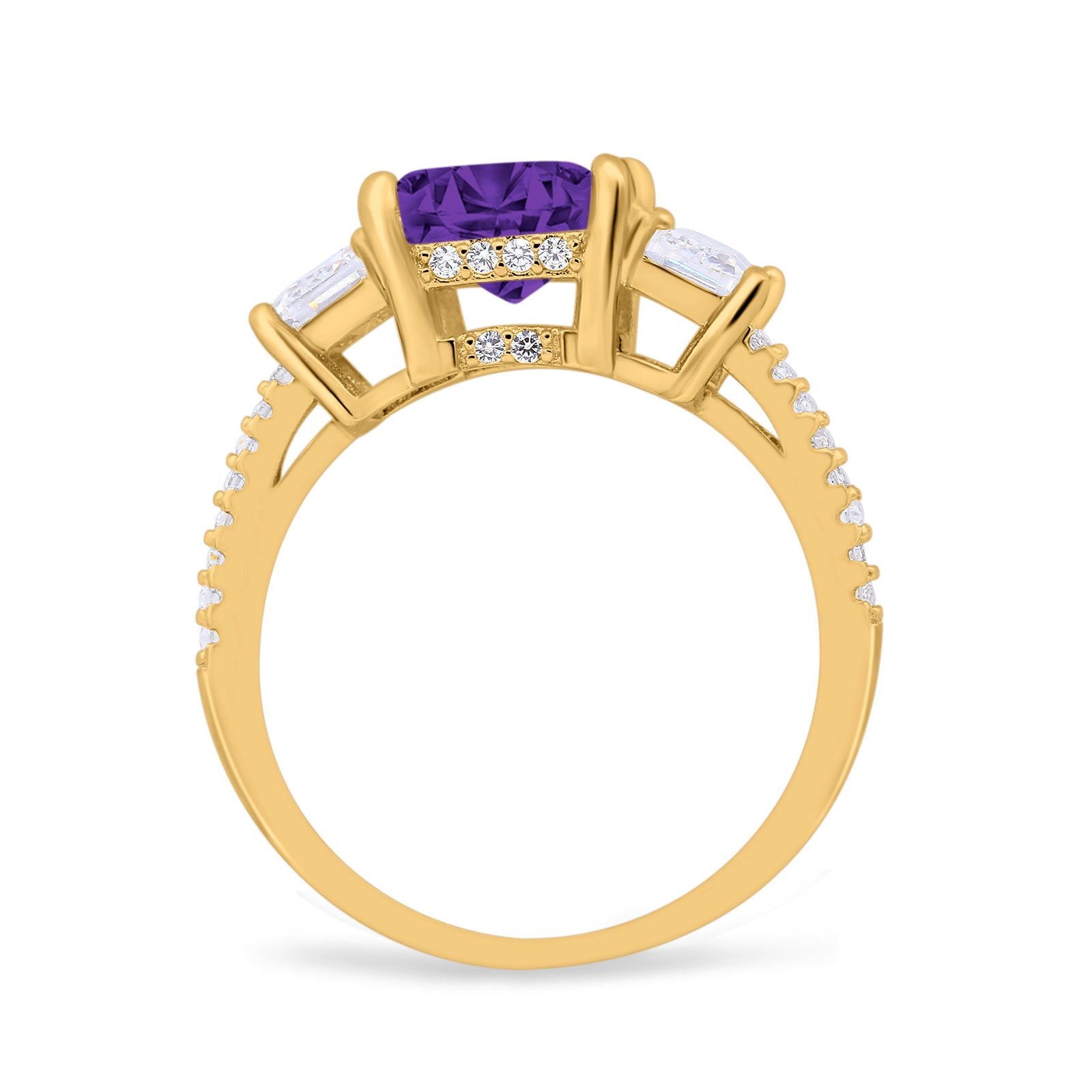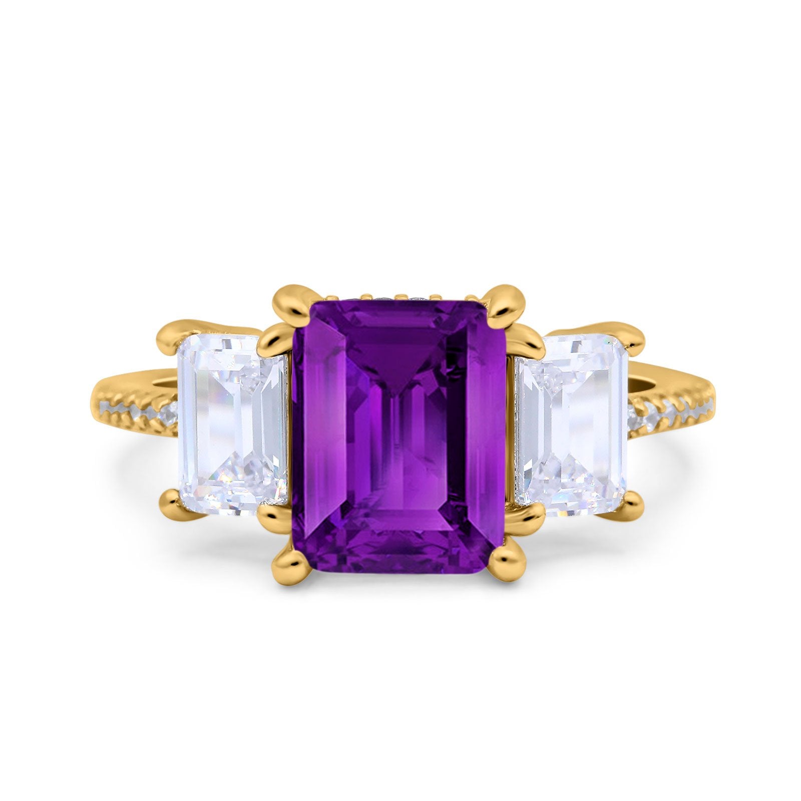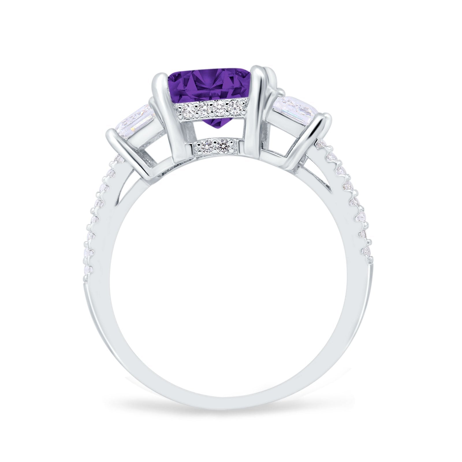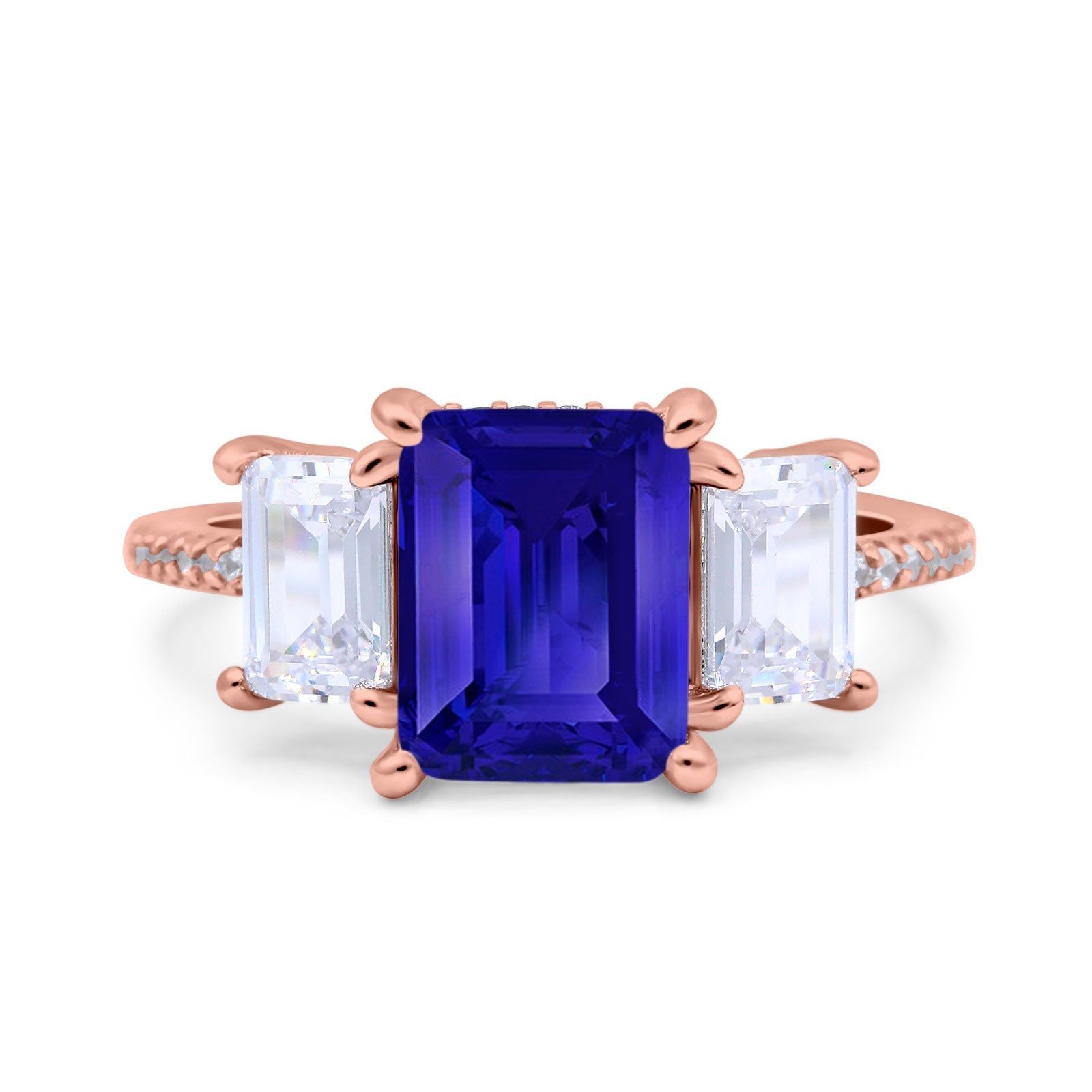 Three Stone Radiant Cut Wedding Engagement Bridal Ring Round Simulated Cubic Zirconia 925 Sterling Silver