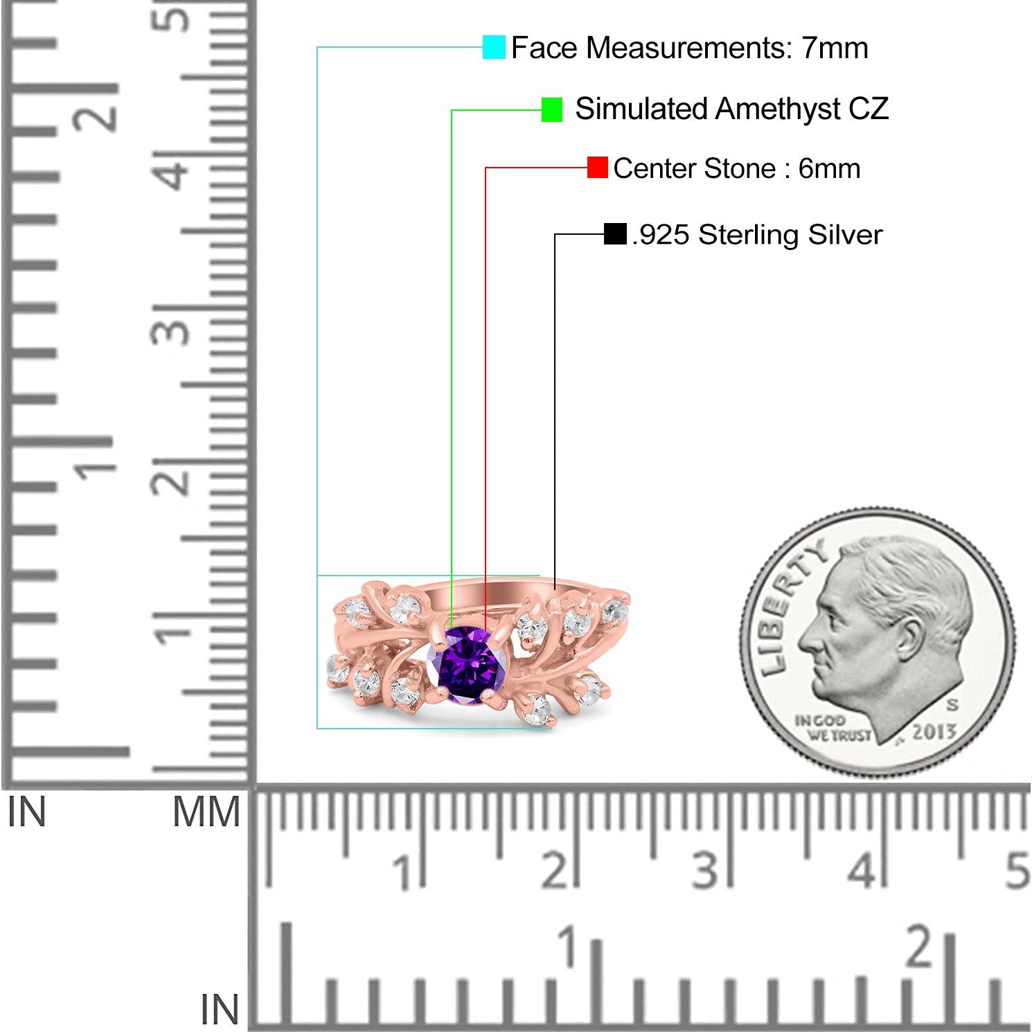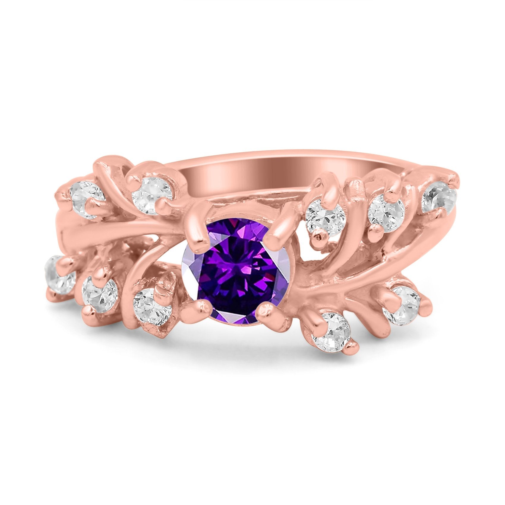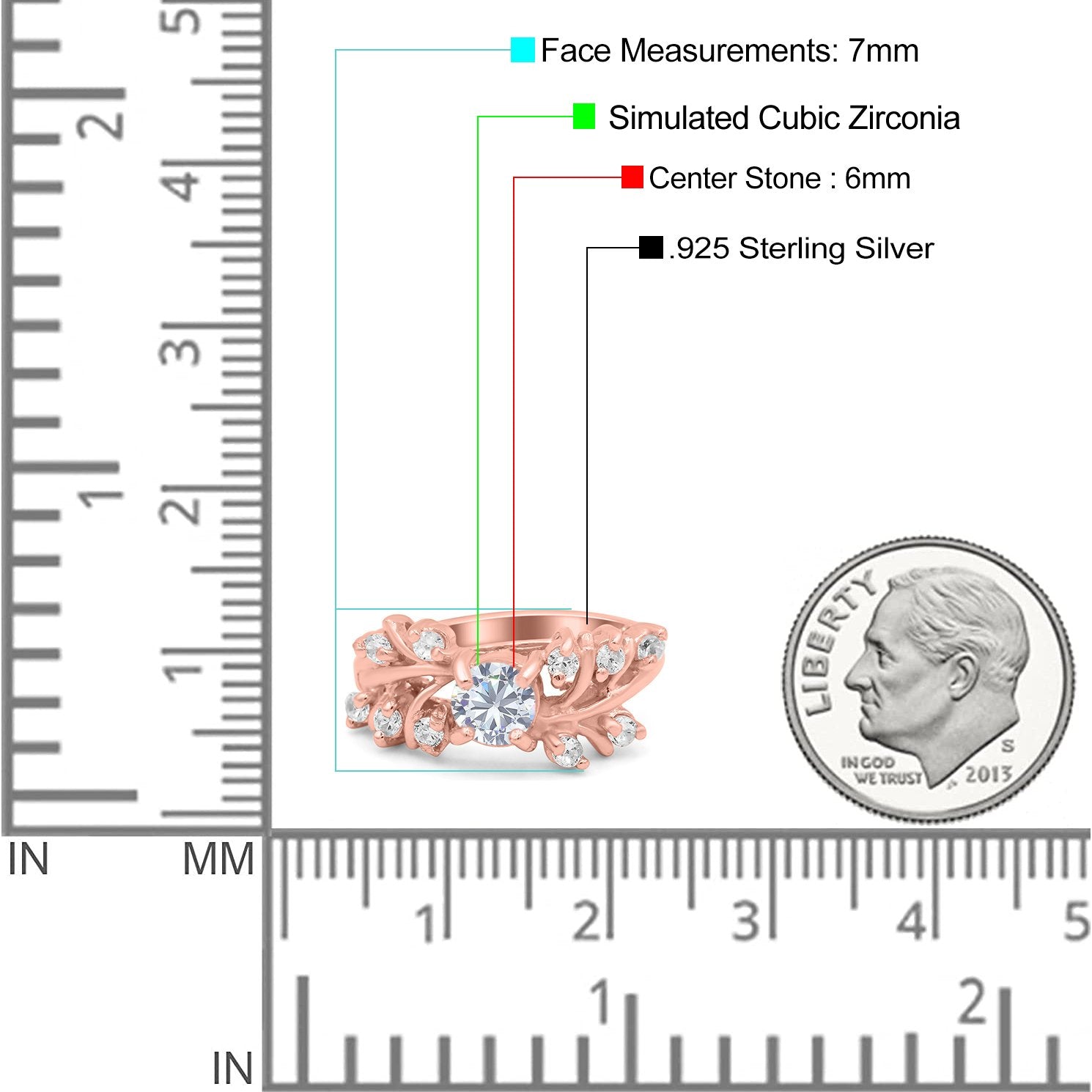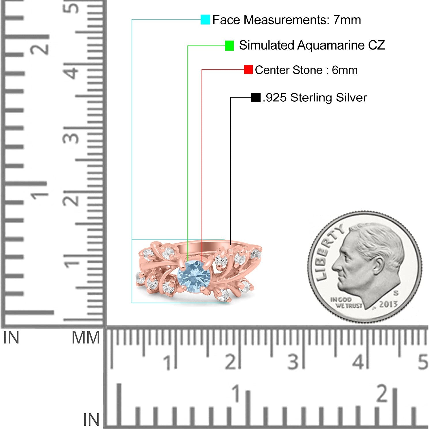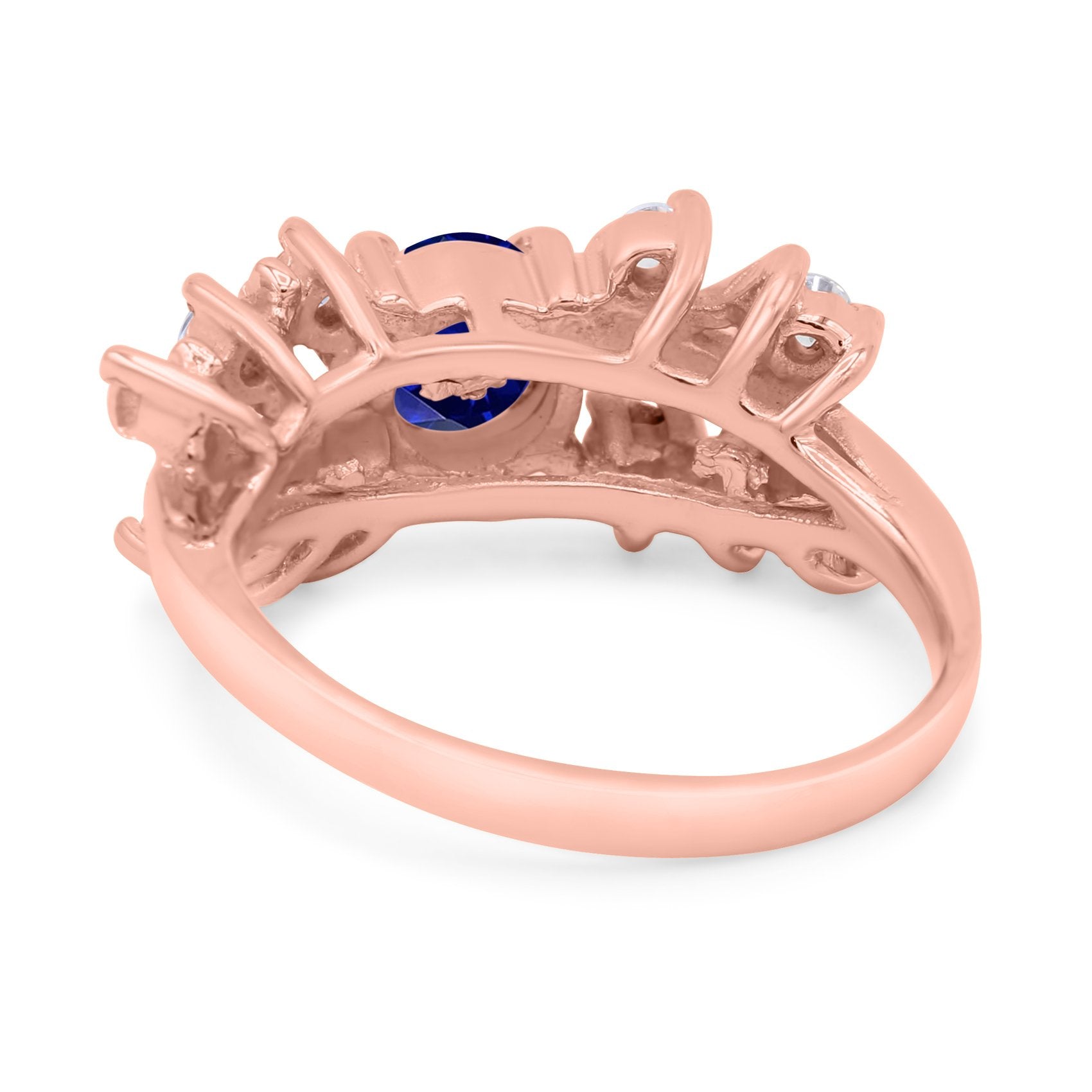 CZ & Blue Sapphire CZ Rose Tone Silver