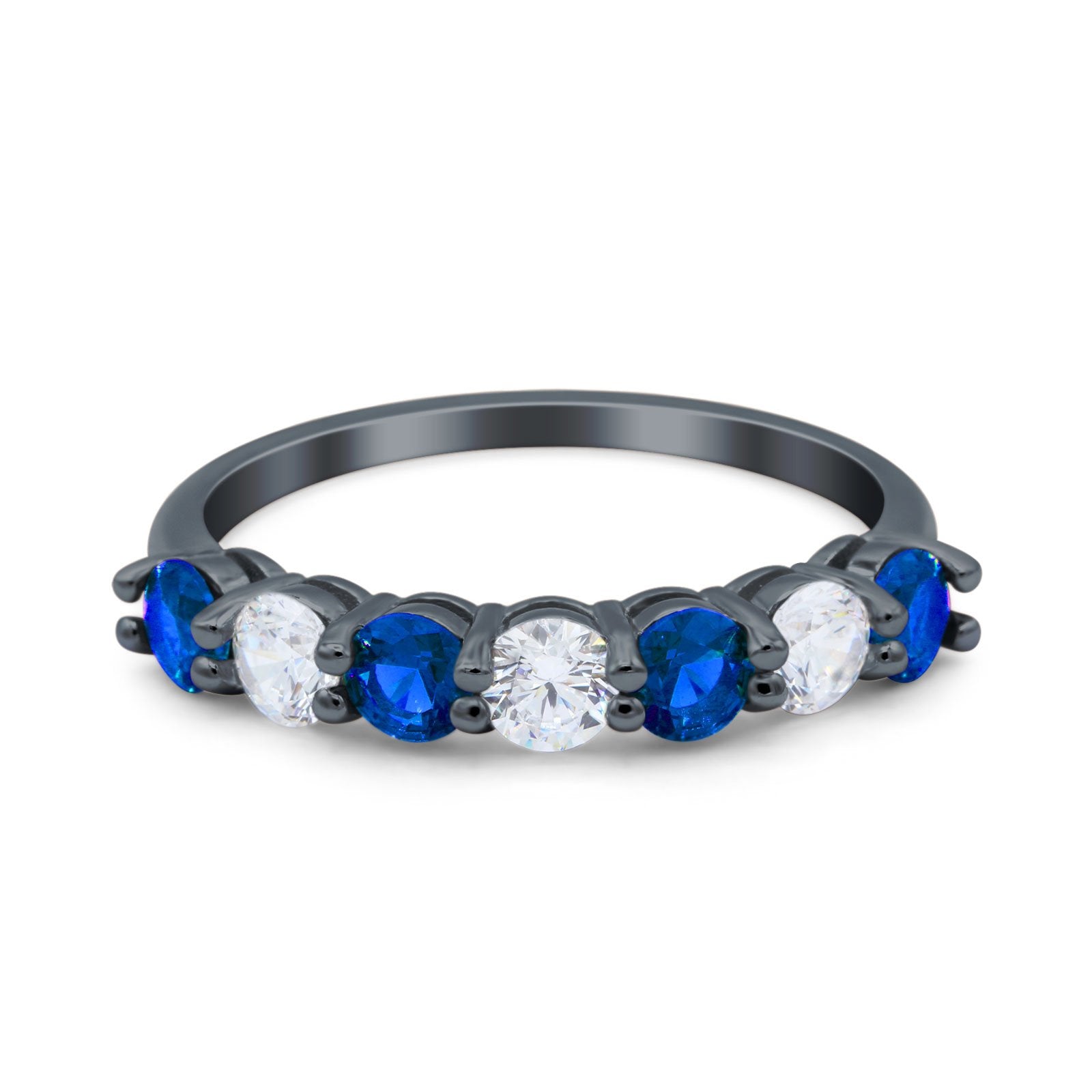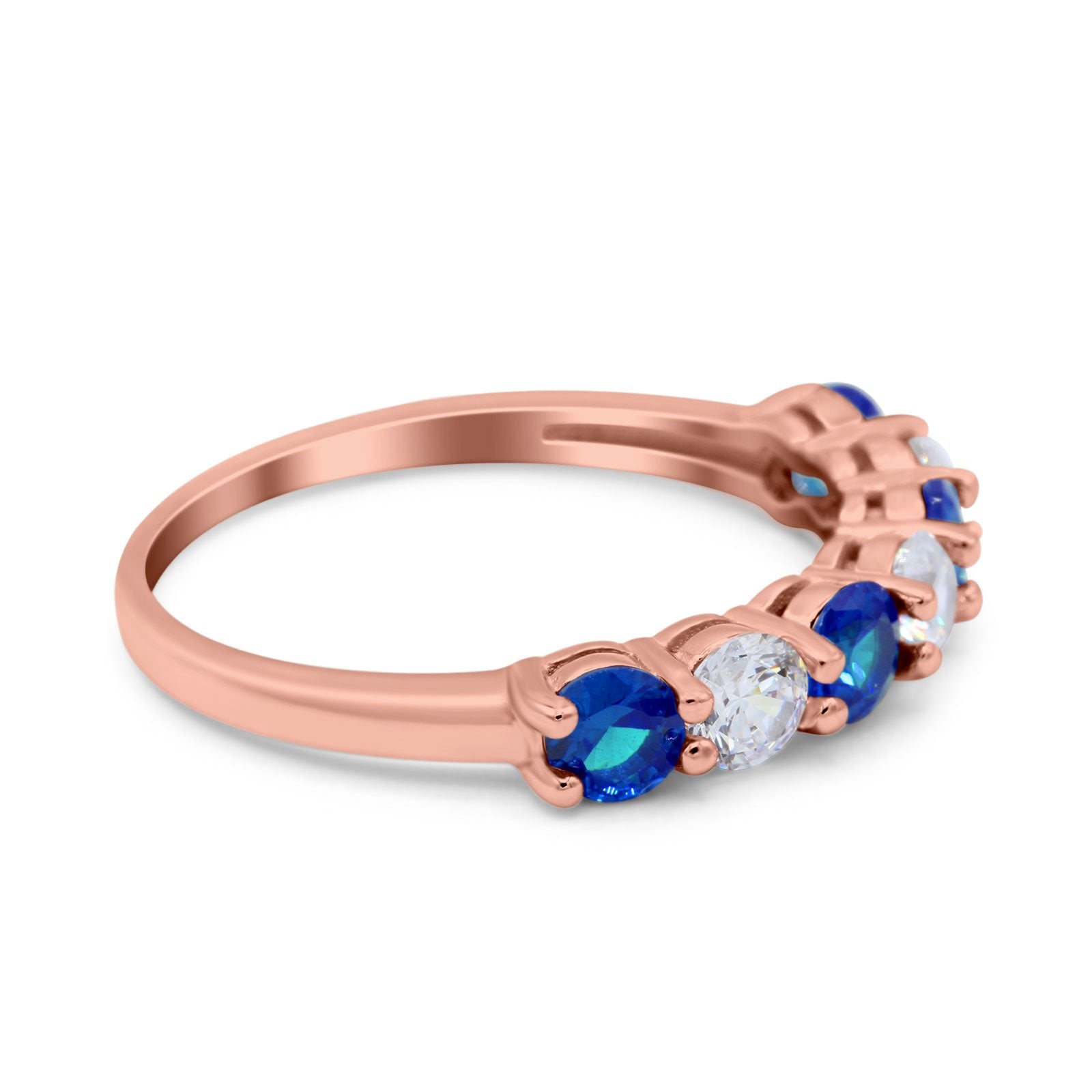 Minimalist 2.5mm Full Eternity Band CZ & Blue Sapphire CZ 925 Sterling Silver