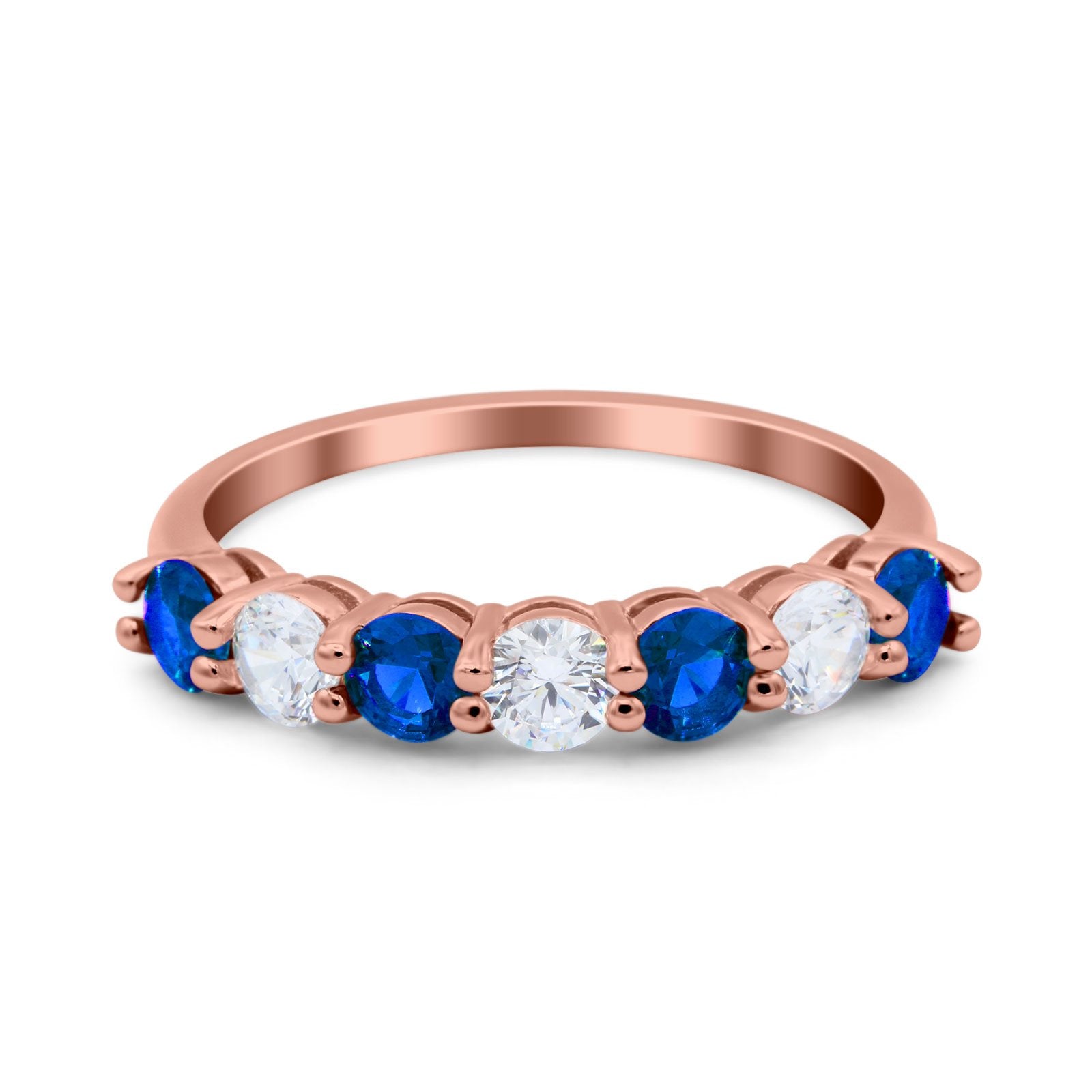 CZ & Blue Sapphire CZ Rose Tone Silver