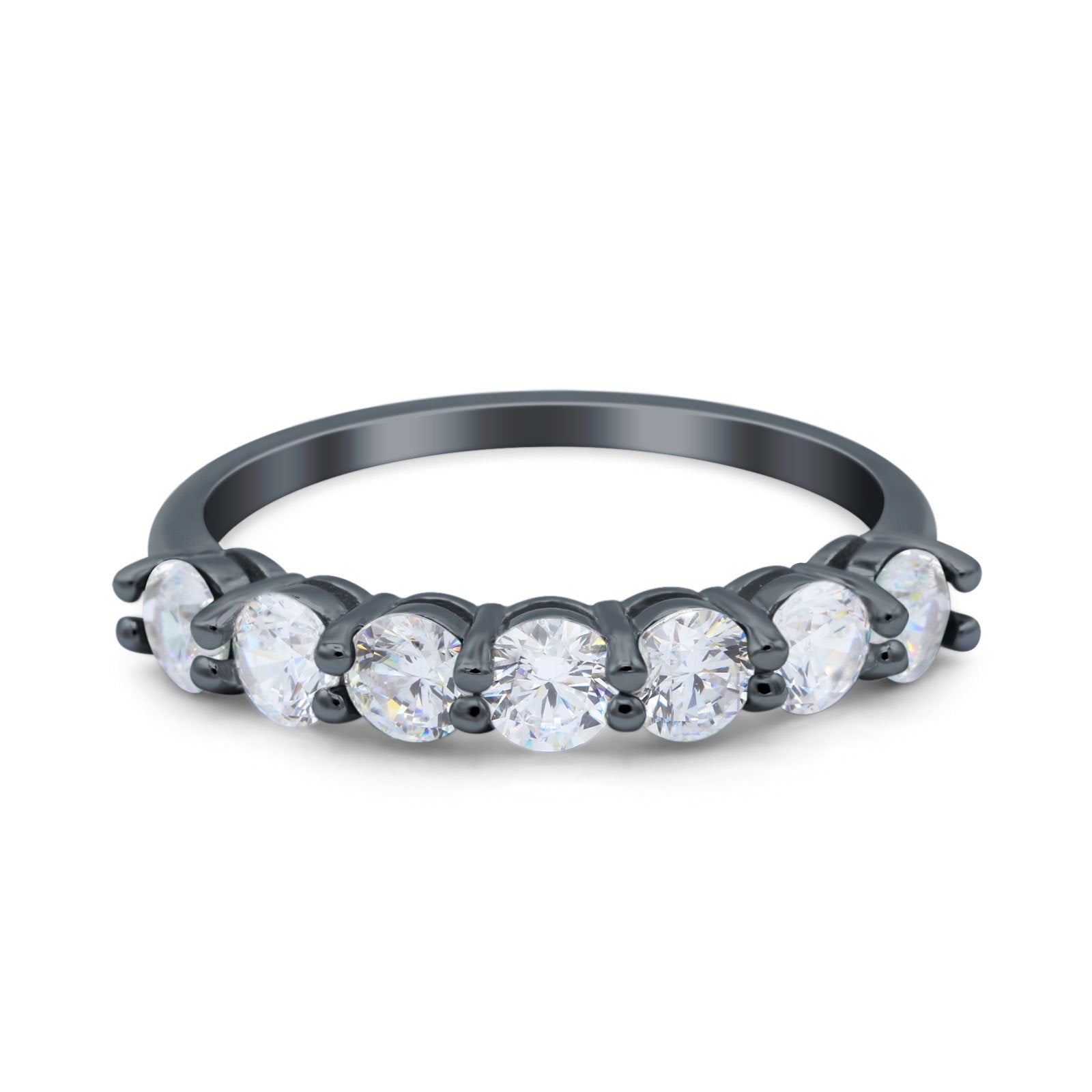Art Deco Half Eternity Wedding Ring Simulated Cubic Zirconia 925 Sterling Silver