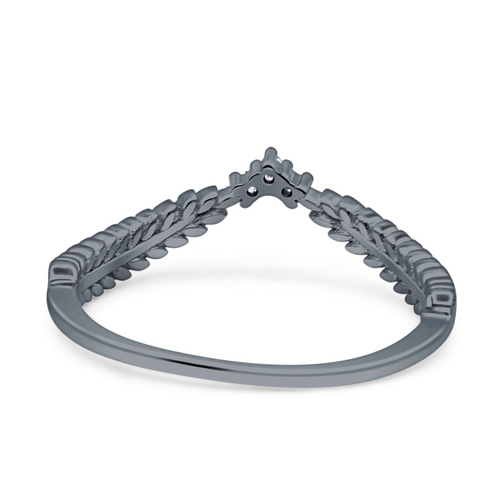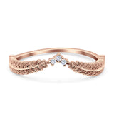 Curve Shape Leaf Design Wedding Engagement Ring Round Simulated Cubic Zirconia 925 Sterling Silver