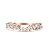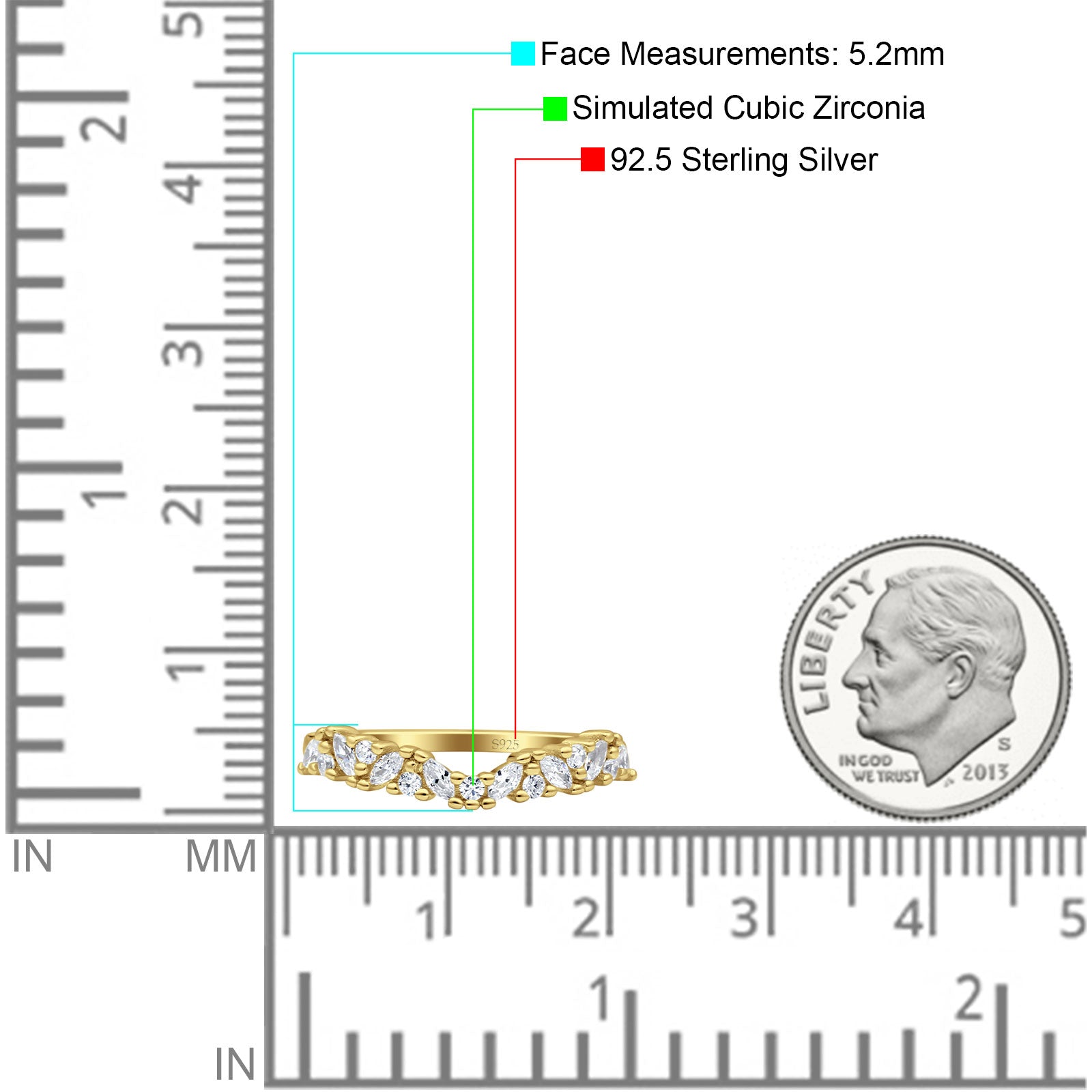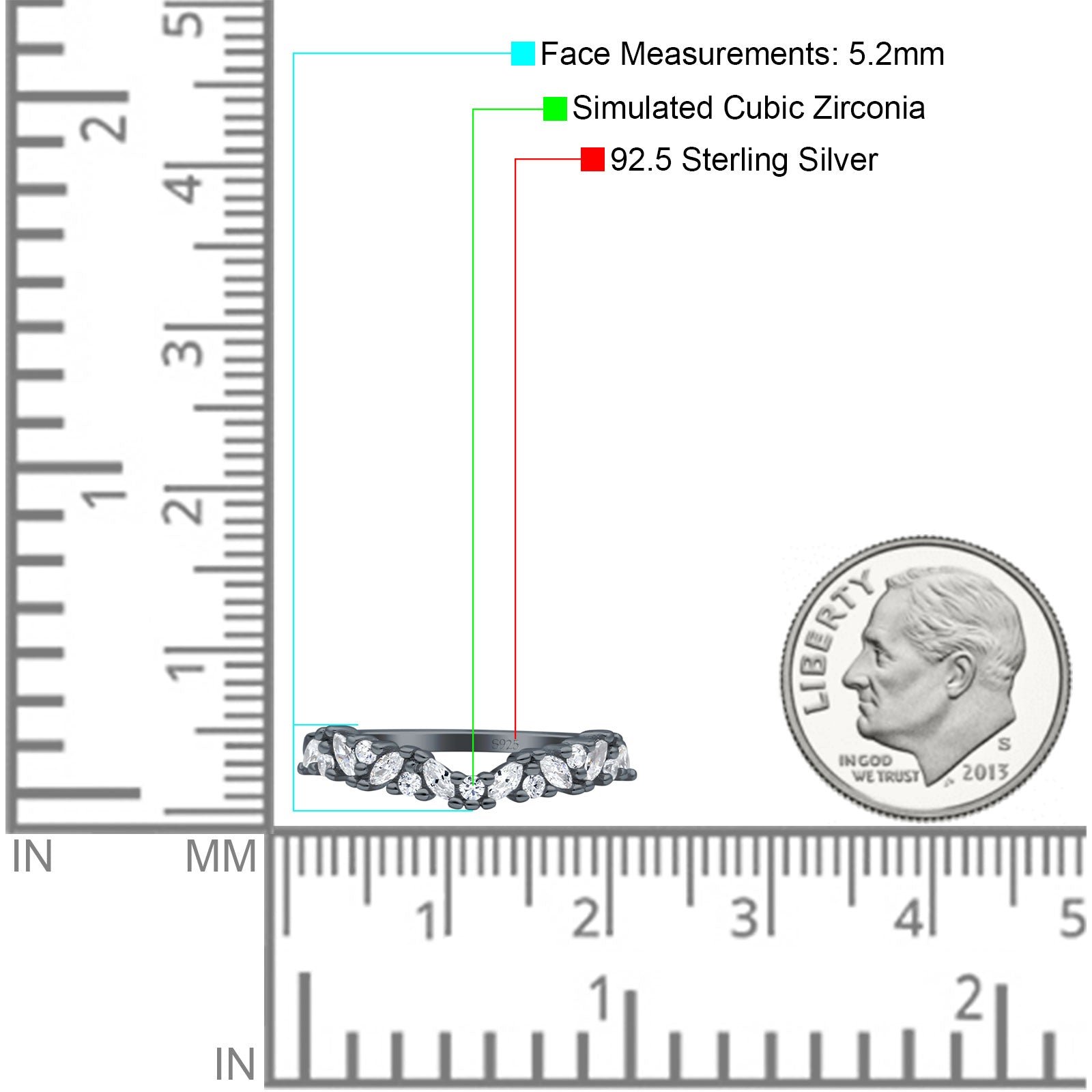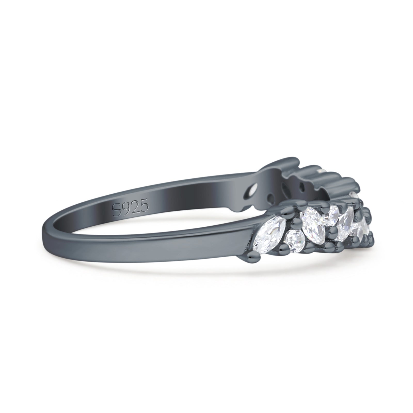 Half Eternity Art Deco Marquise Round Wedding Ring Simulated Cubic Zirconia 925 Sterling Silver