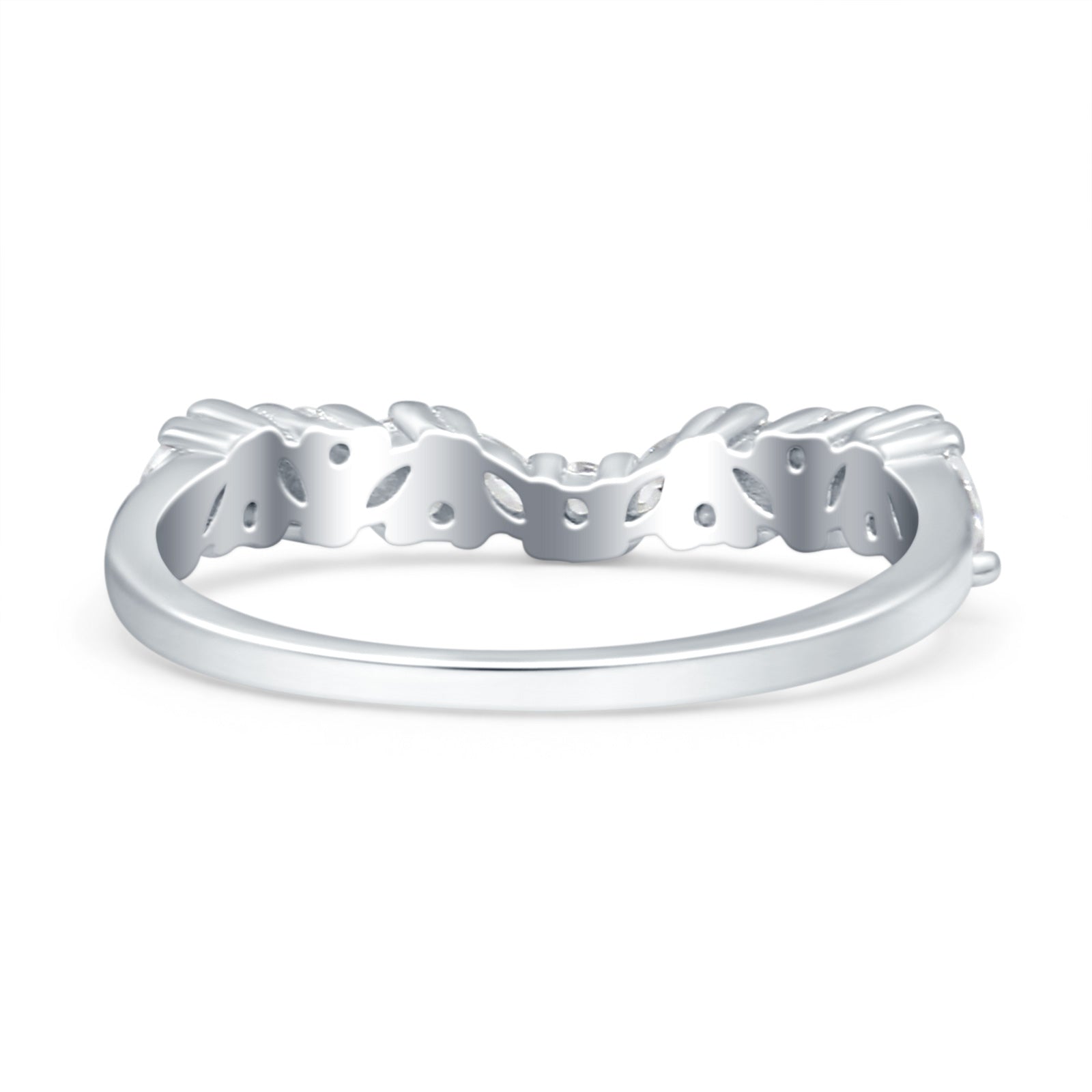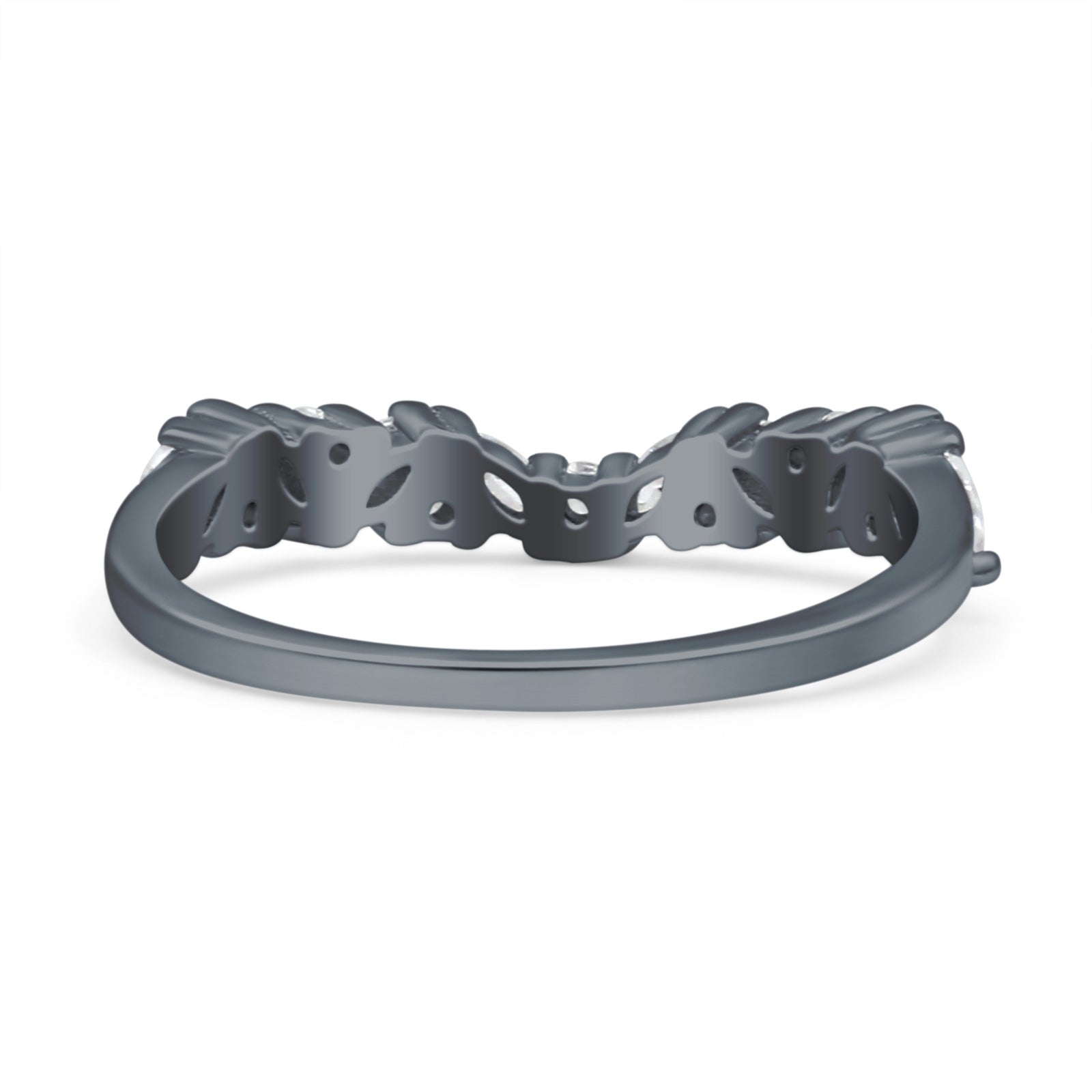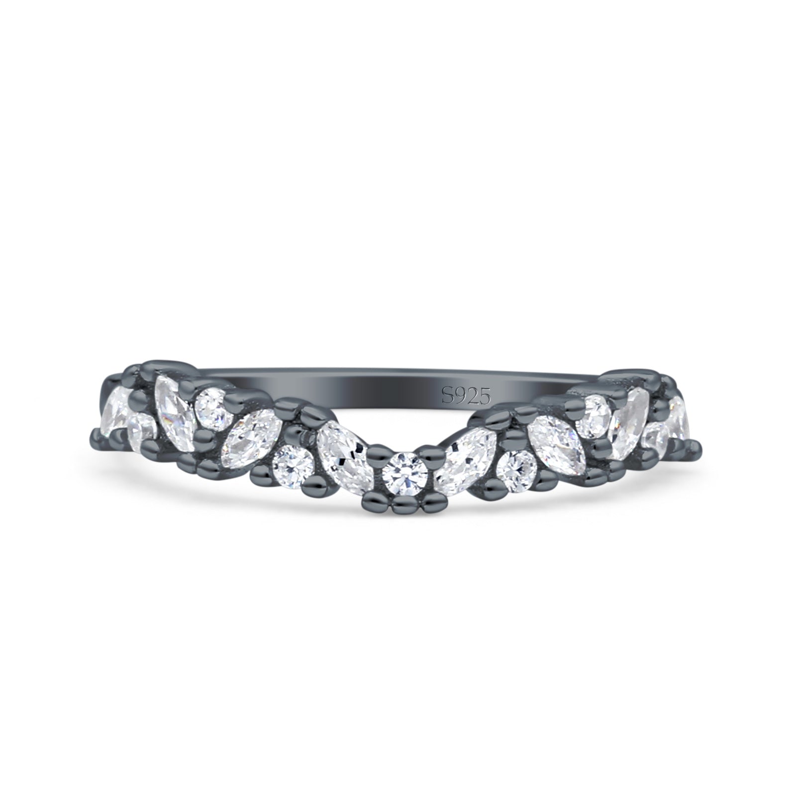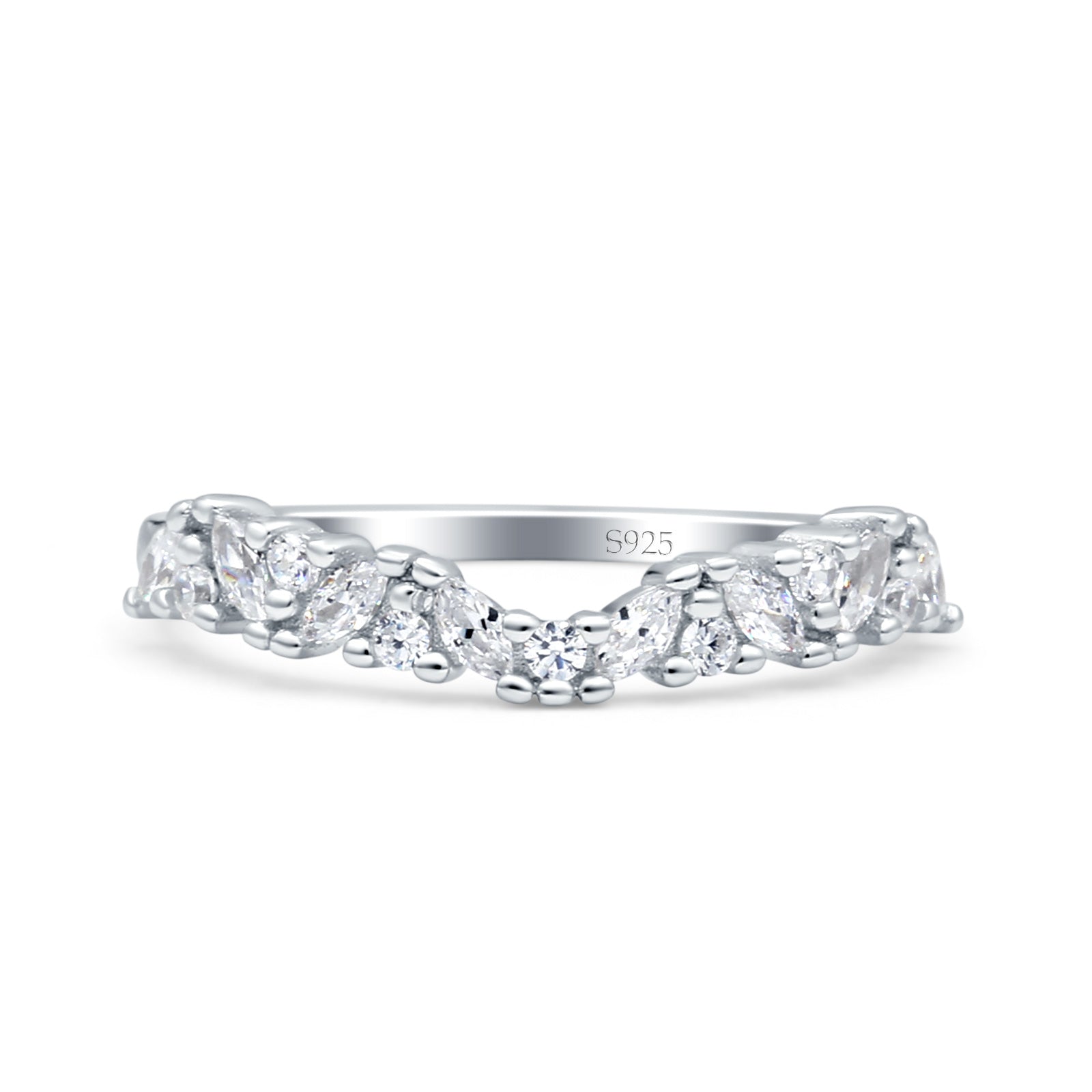 Half Eternity Art Deco Marquise Round Wedding Ring Simulated Cubic Zirconia 925 Sterling Silver