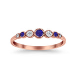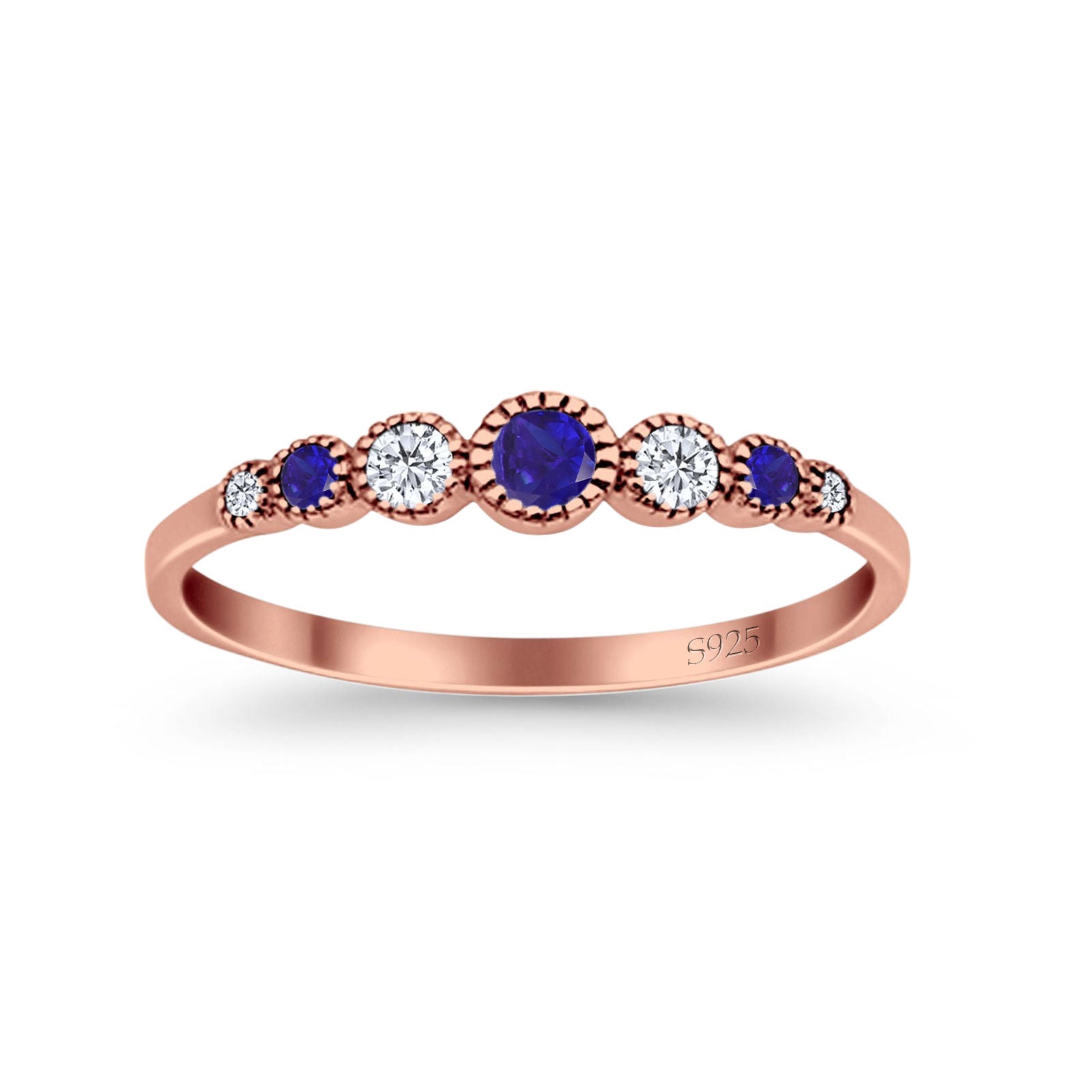 CZ & Blue Sapphire CZ Rose Tone Silver