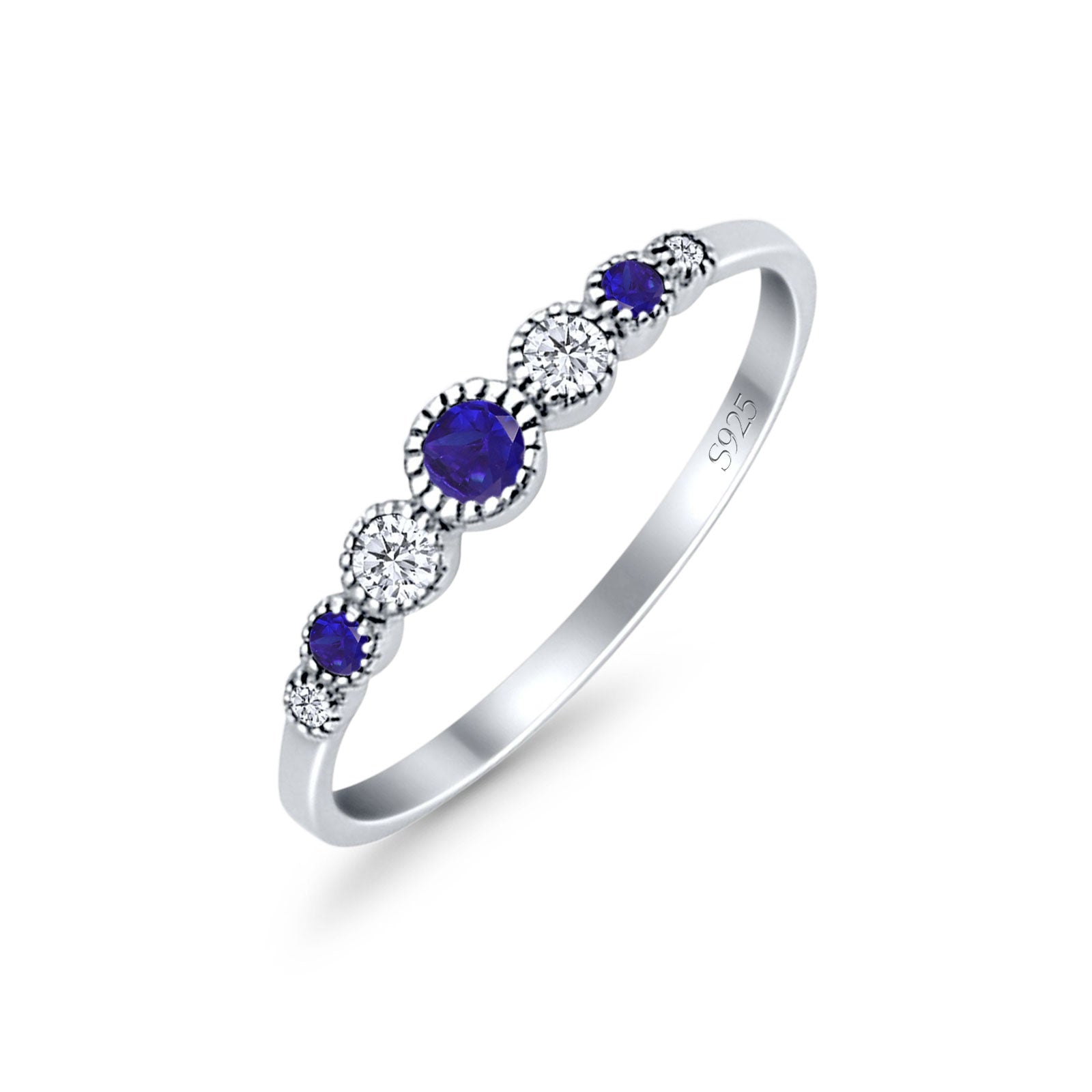 Half Eternity Band Round Simulated Blue Sapphire Cubic Zirconia 925 Sterling Silver (4mm)