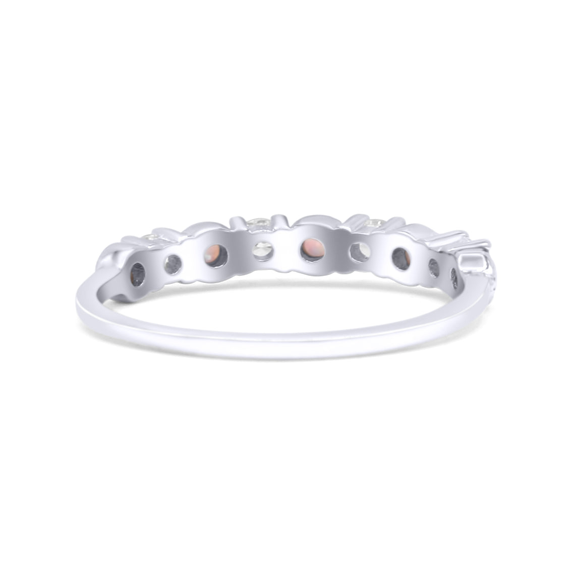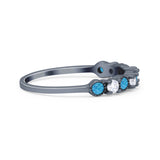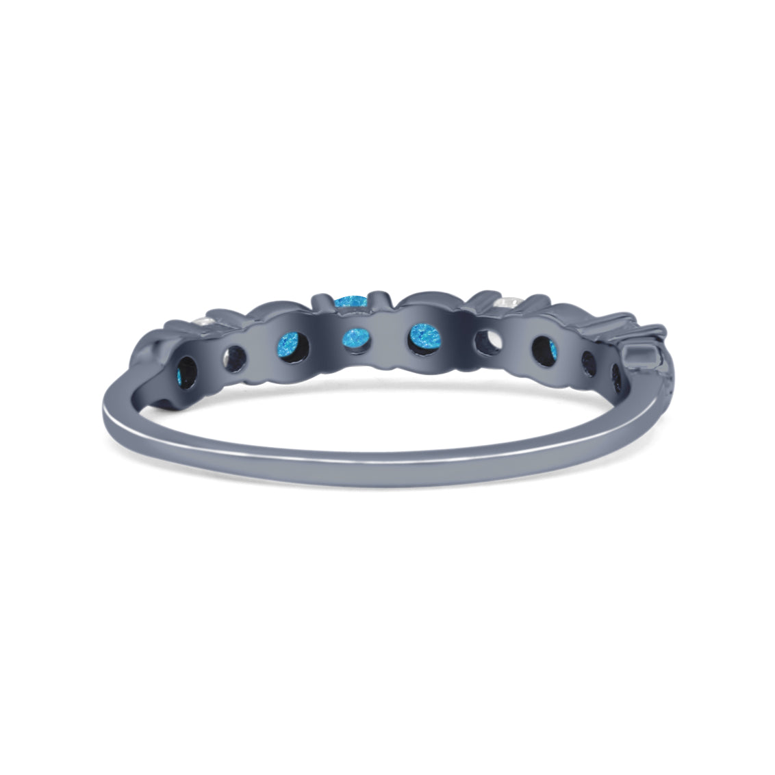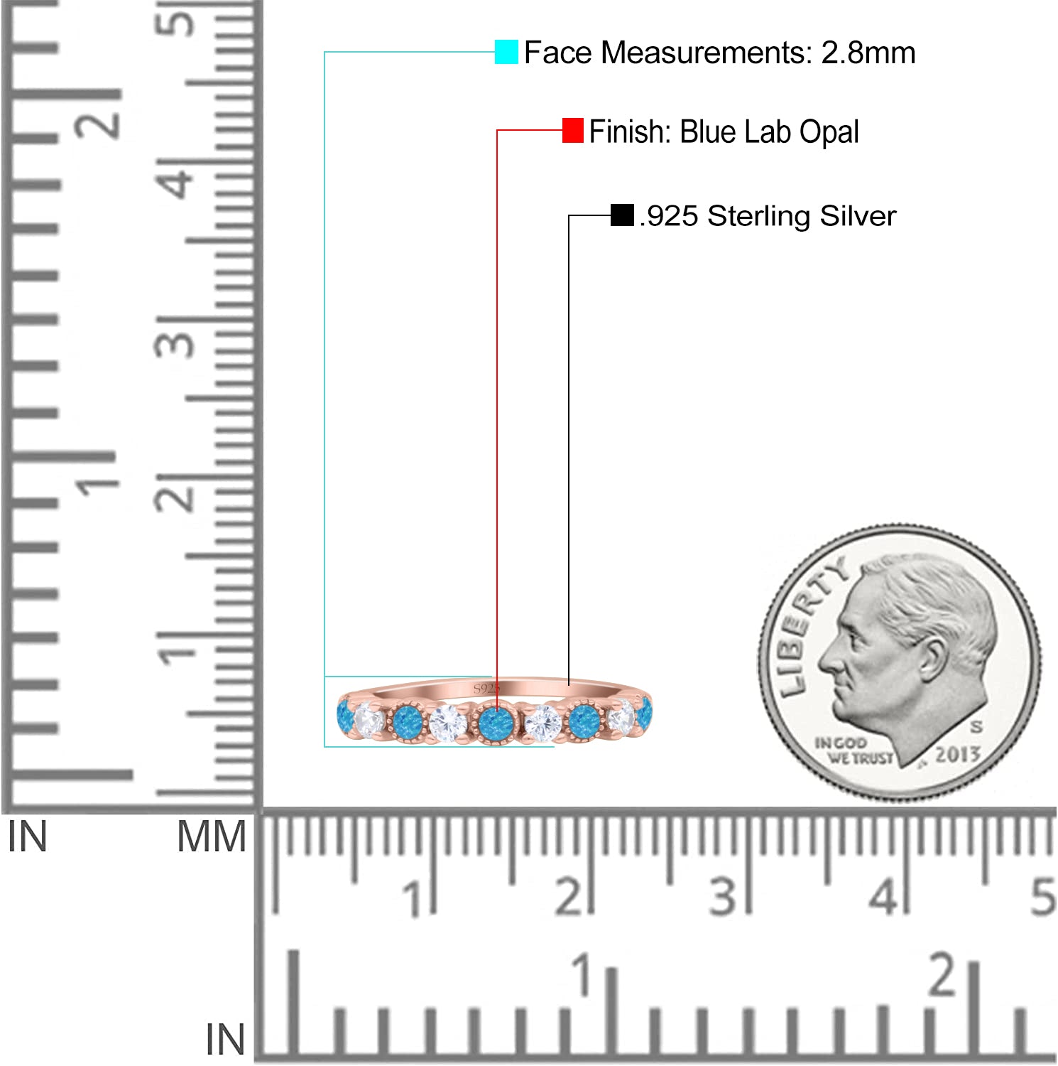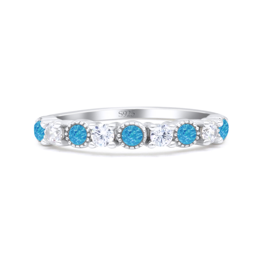 Half Eternity Ring Wedding Engagement Band Round Lab Created Opal 925 Sterling Silver