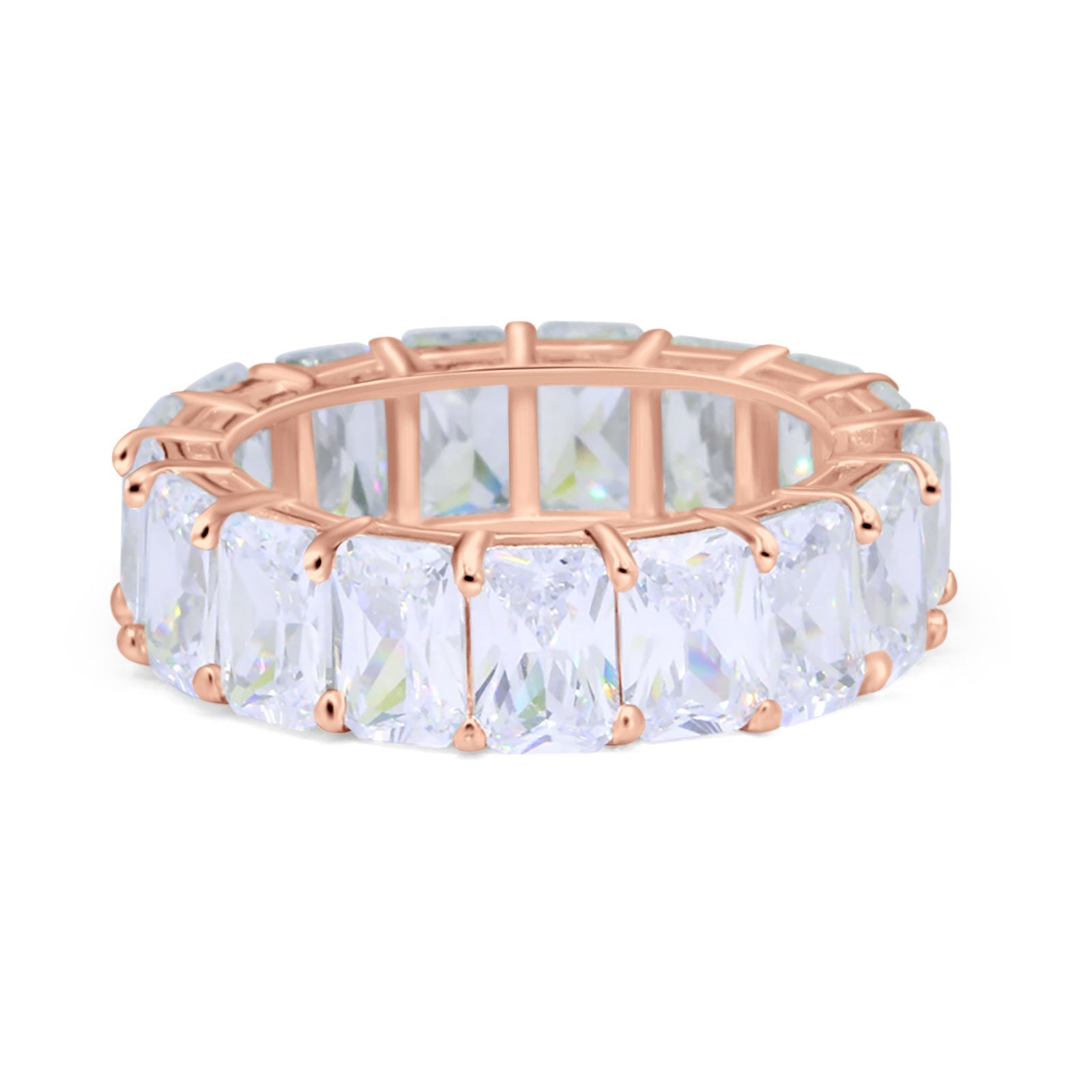 Stackable Emerald Cut Full Eternity Wedding Engagement Band Ring Simulated CZ 925 Sterling Silver