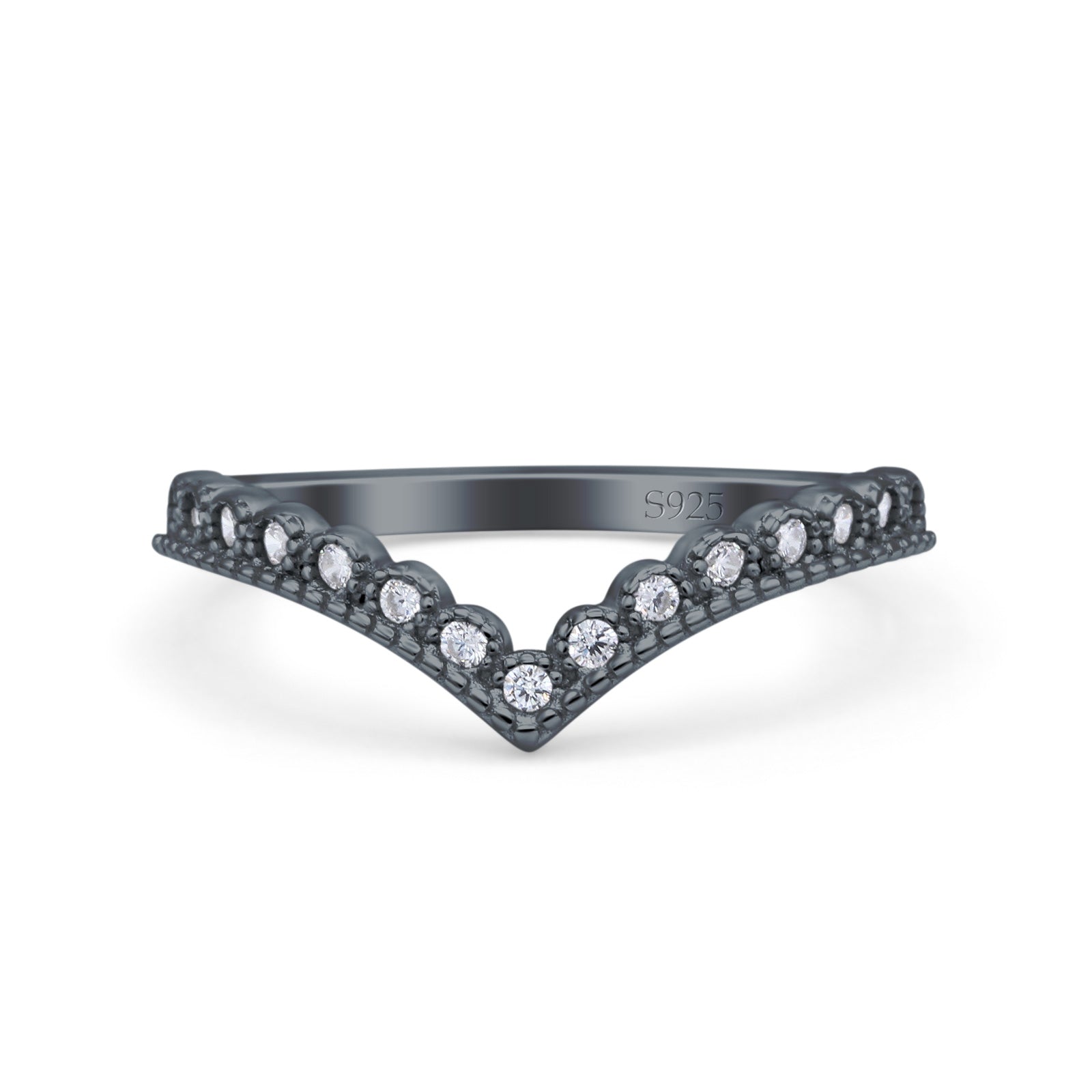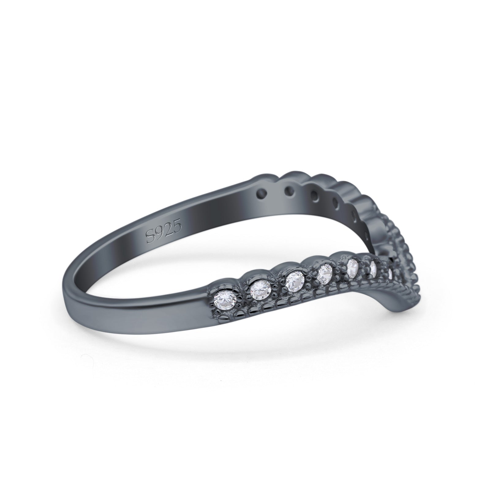 V Shape Wedding Engagement Anniversary Ring Band Round Simulated Cubic Zirconia 925 Sterling Silver