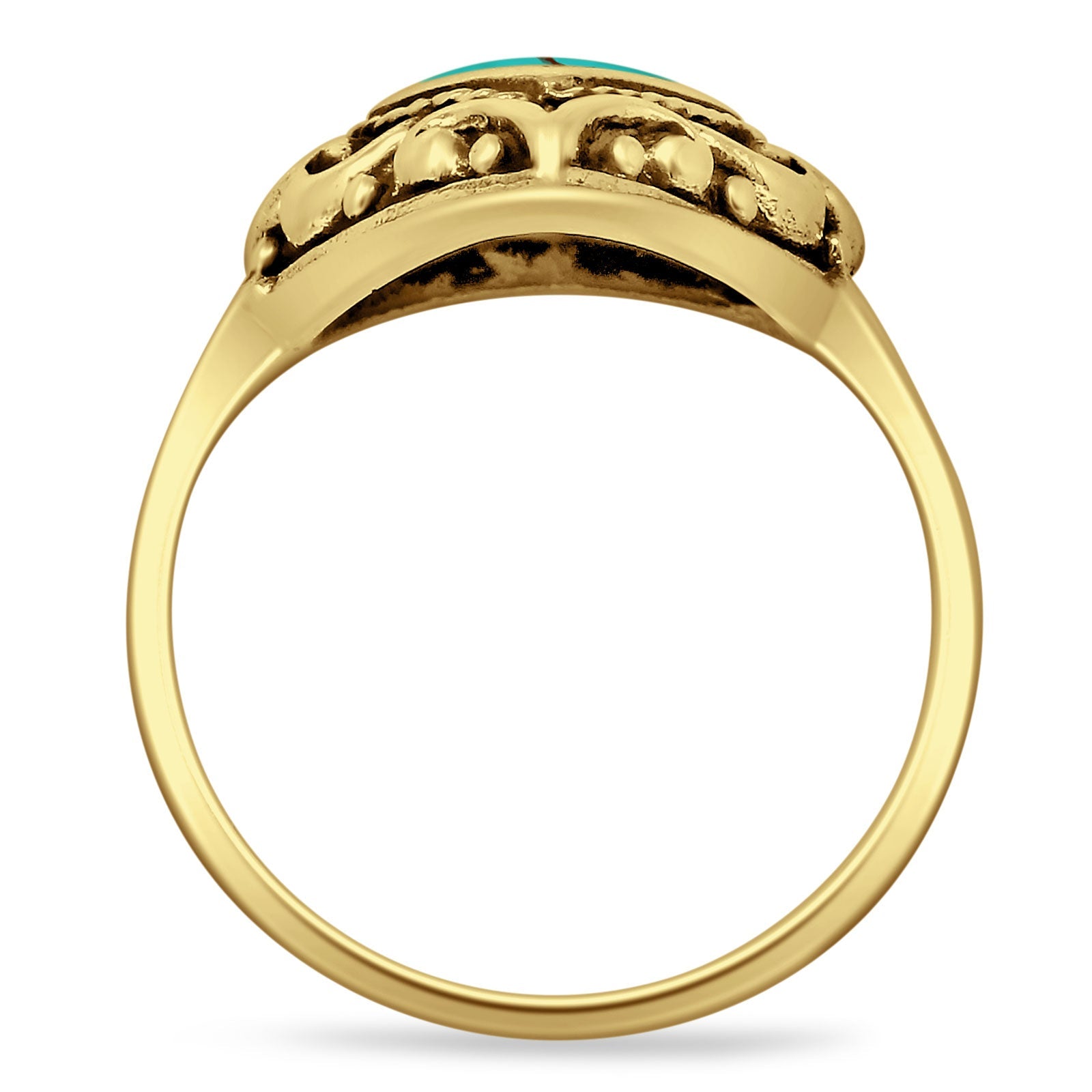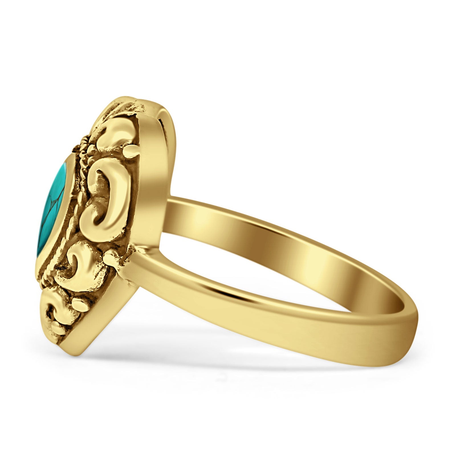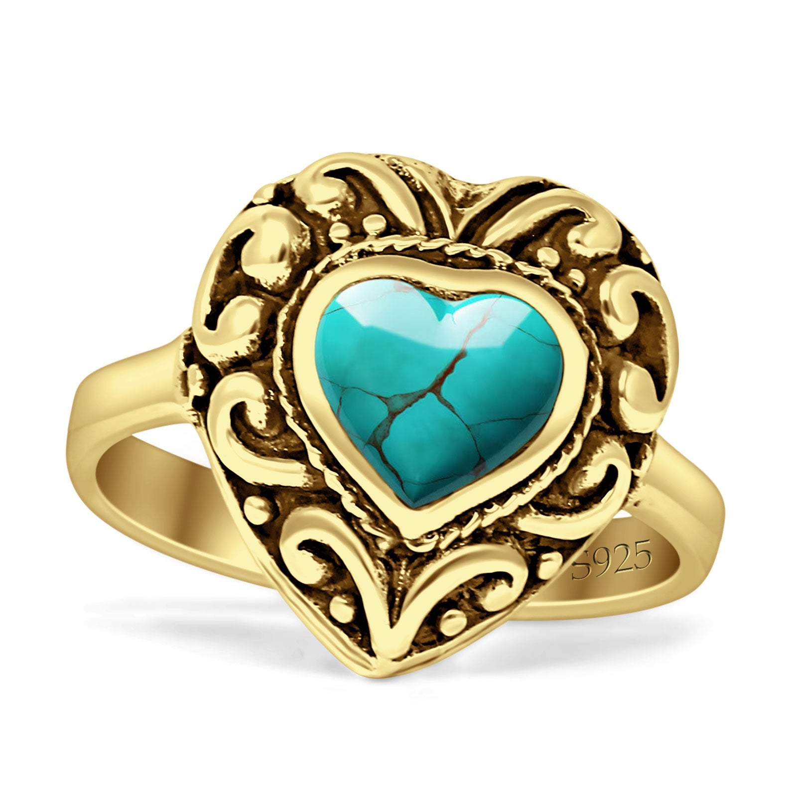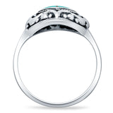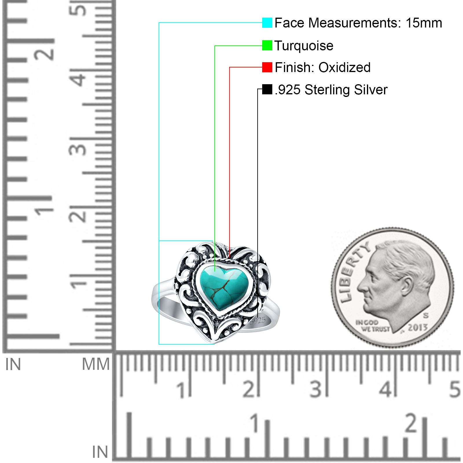 Art Deco 15mm Heart Turquoise Filigree Promise Rings Oxidized 925 Sterling Silver