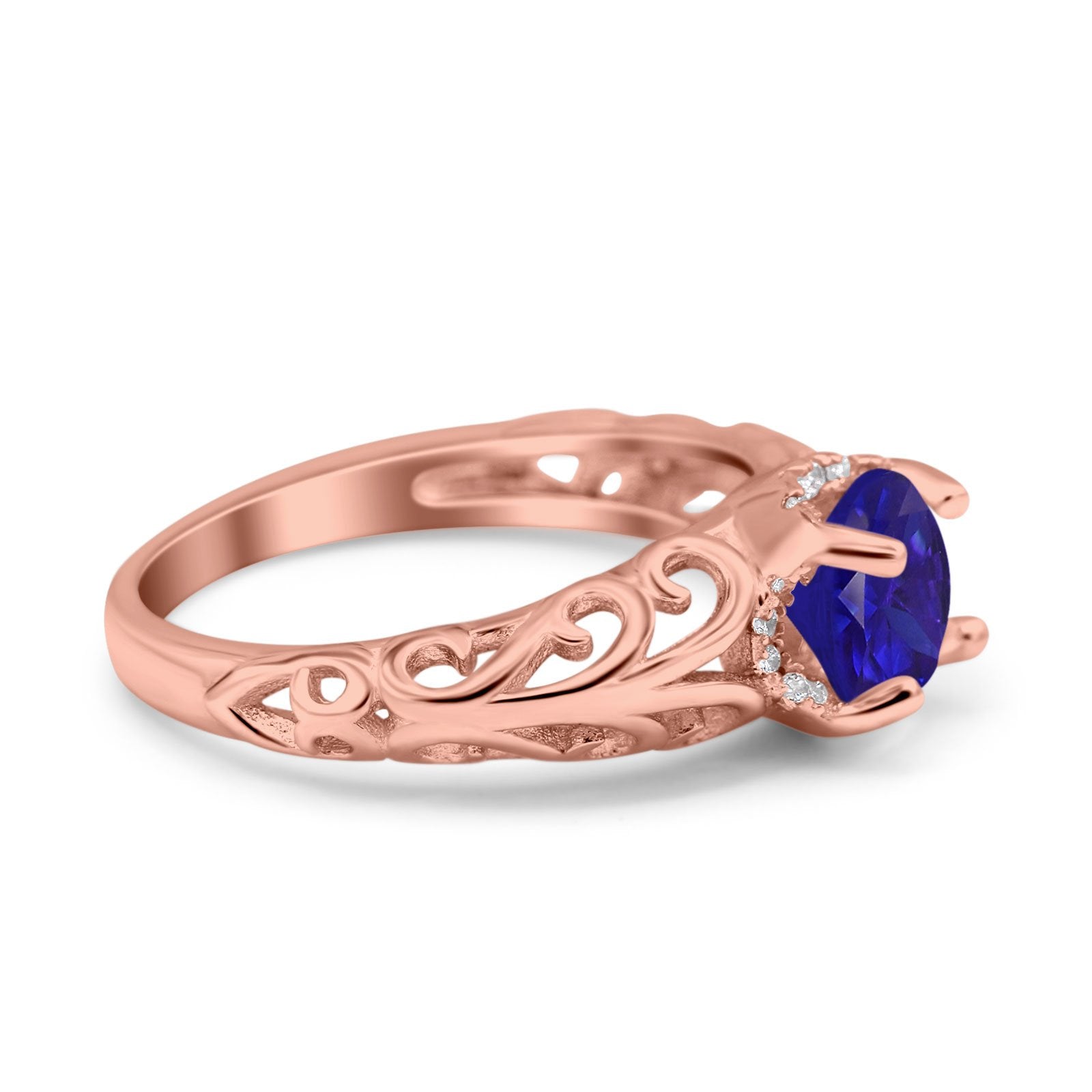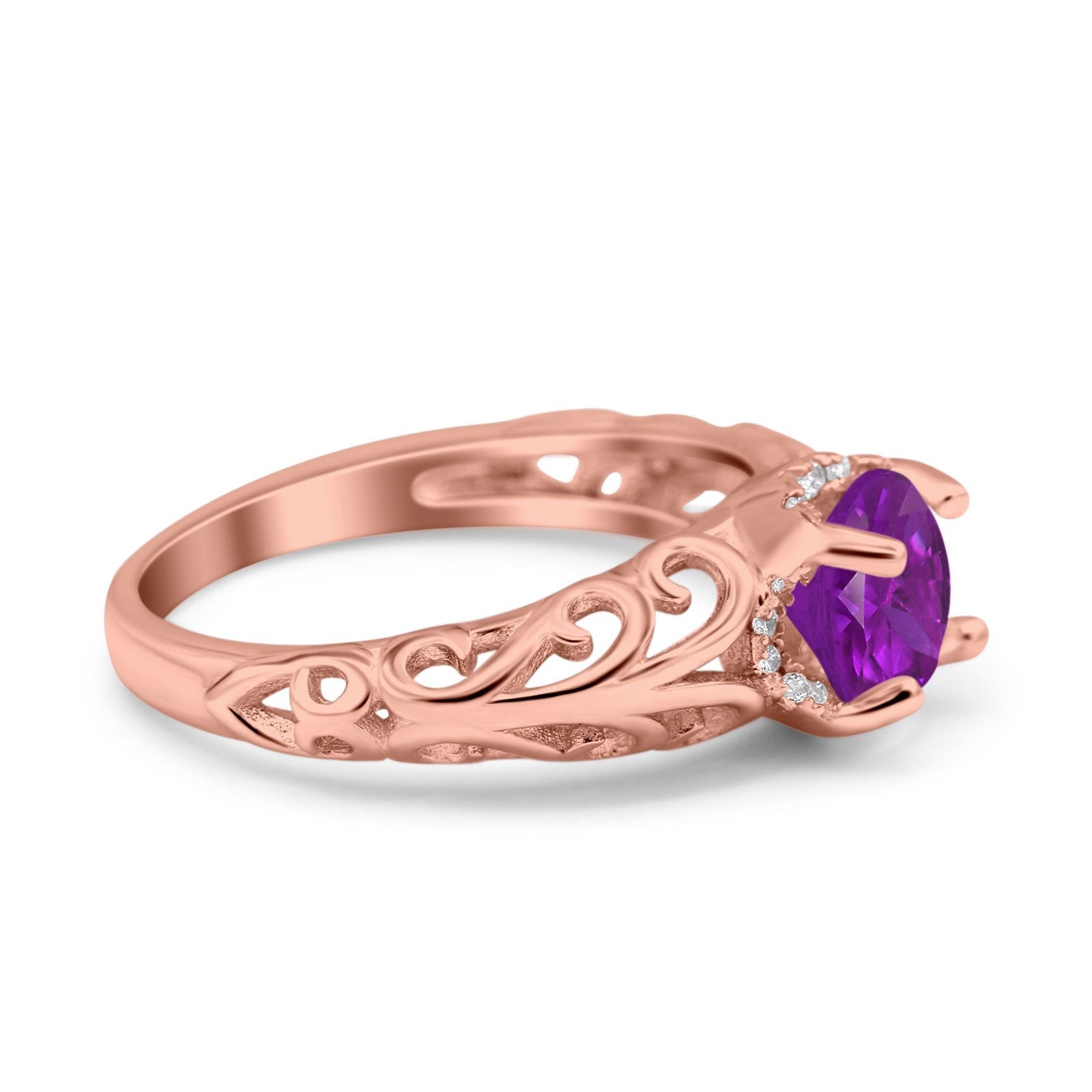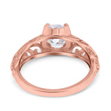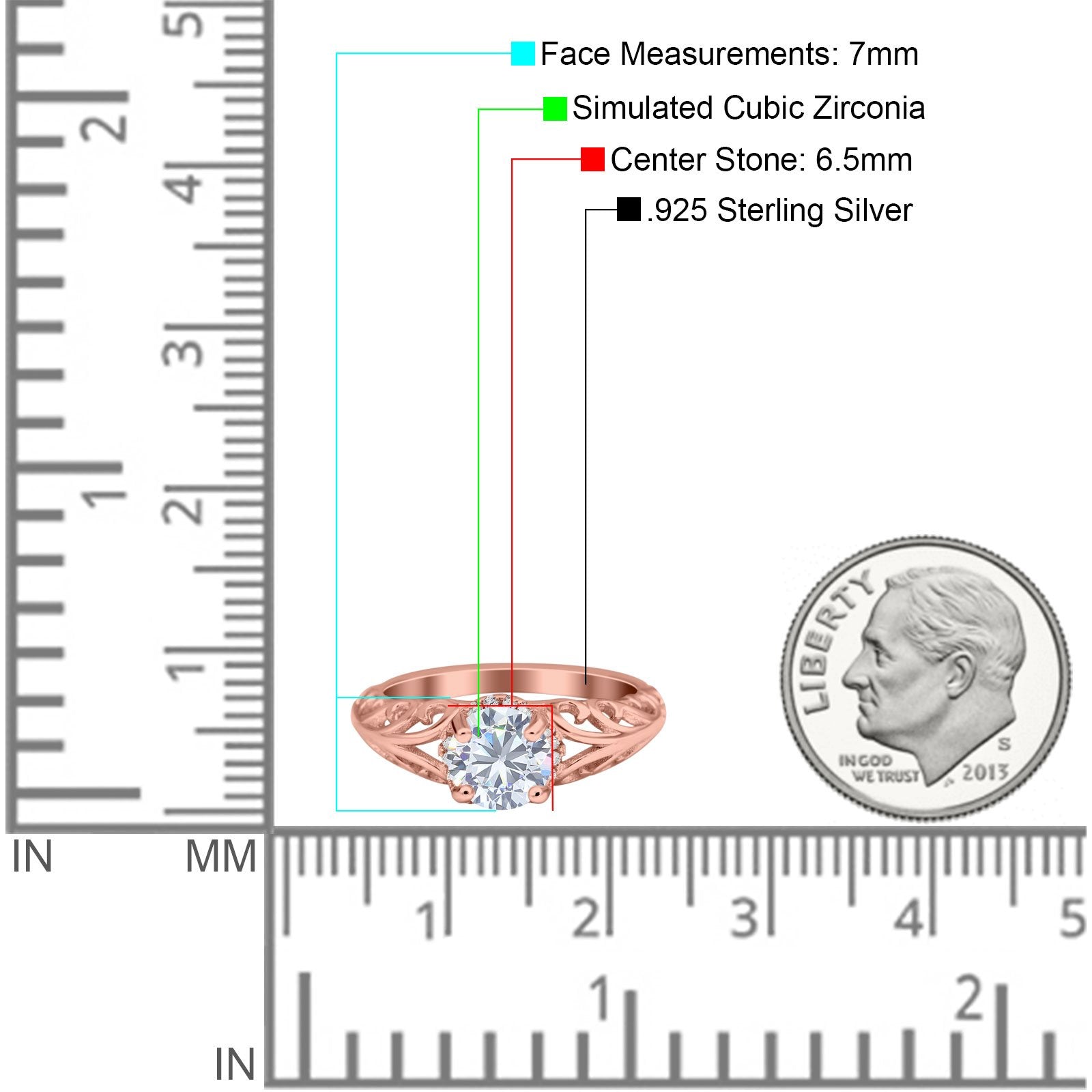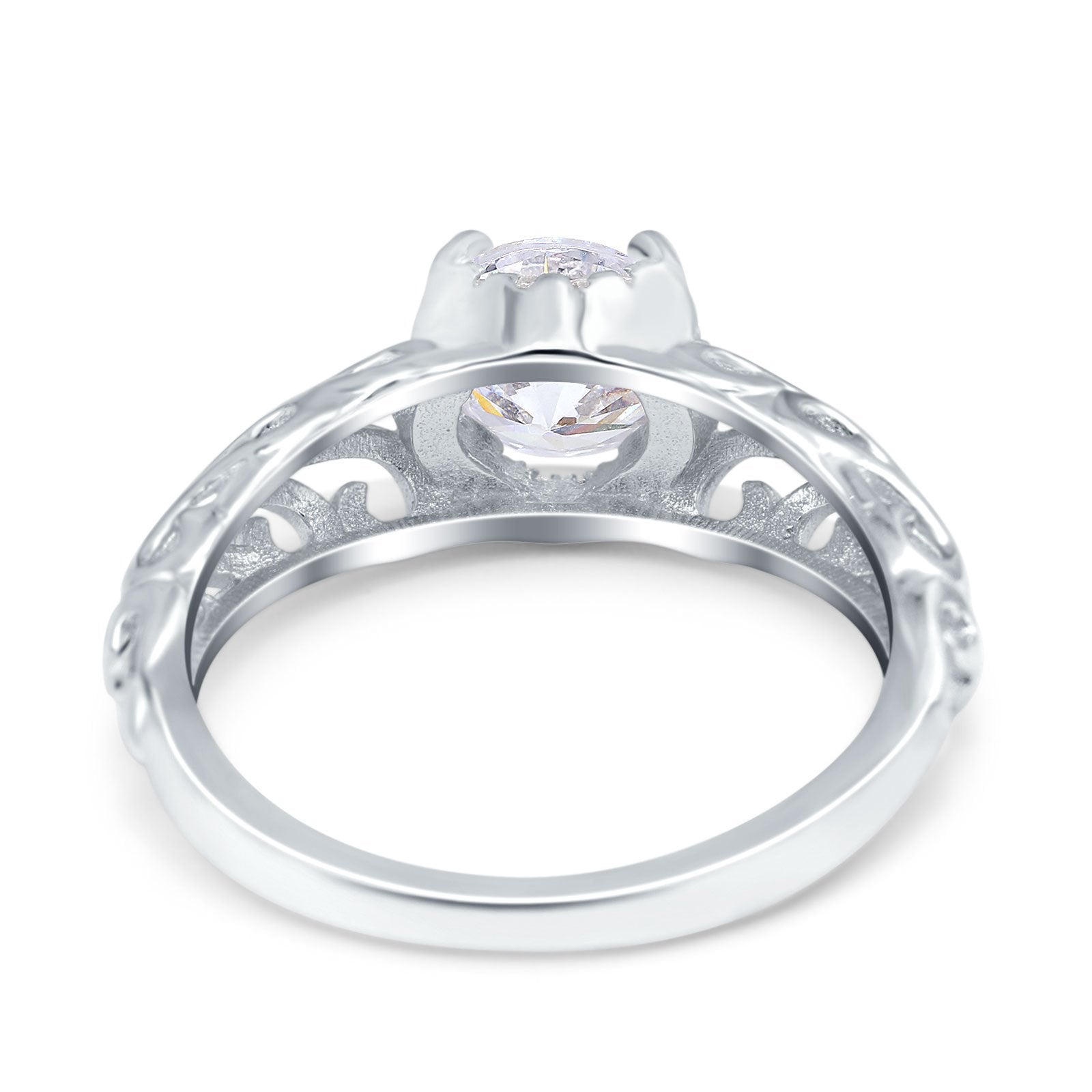 Art Deco Filigree Wedding Engagement Bridal Ring Round Simulated Cubic Zirconia 925 Sterling Silver
