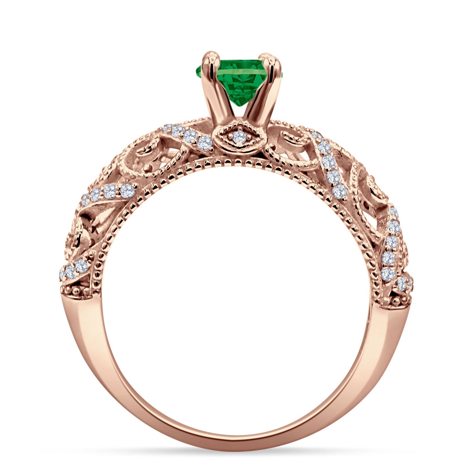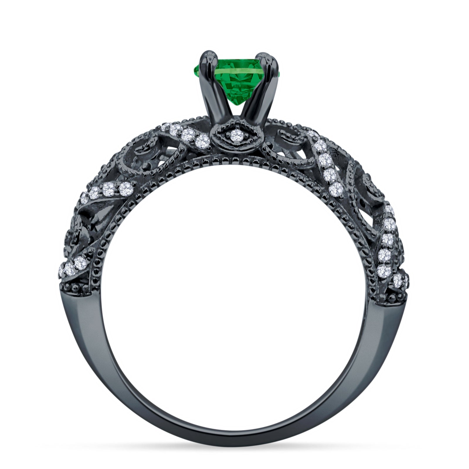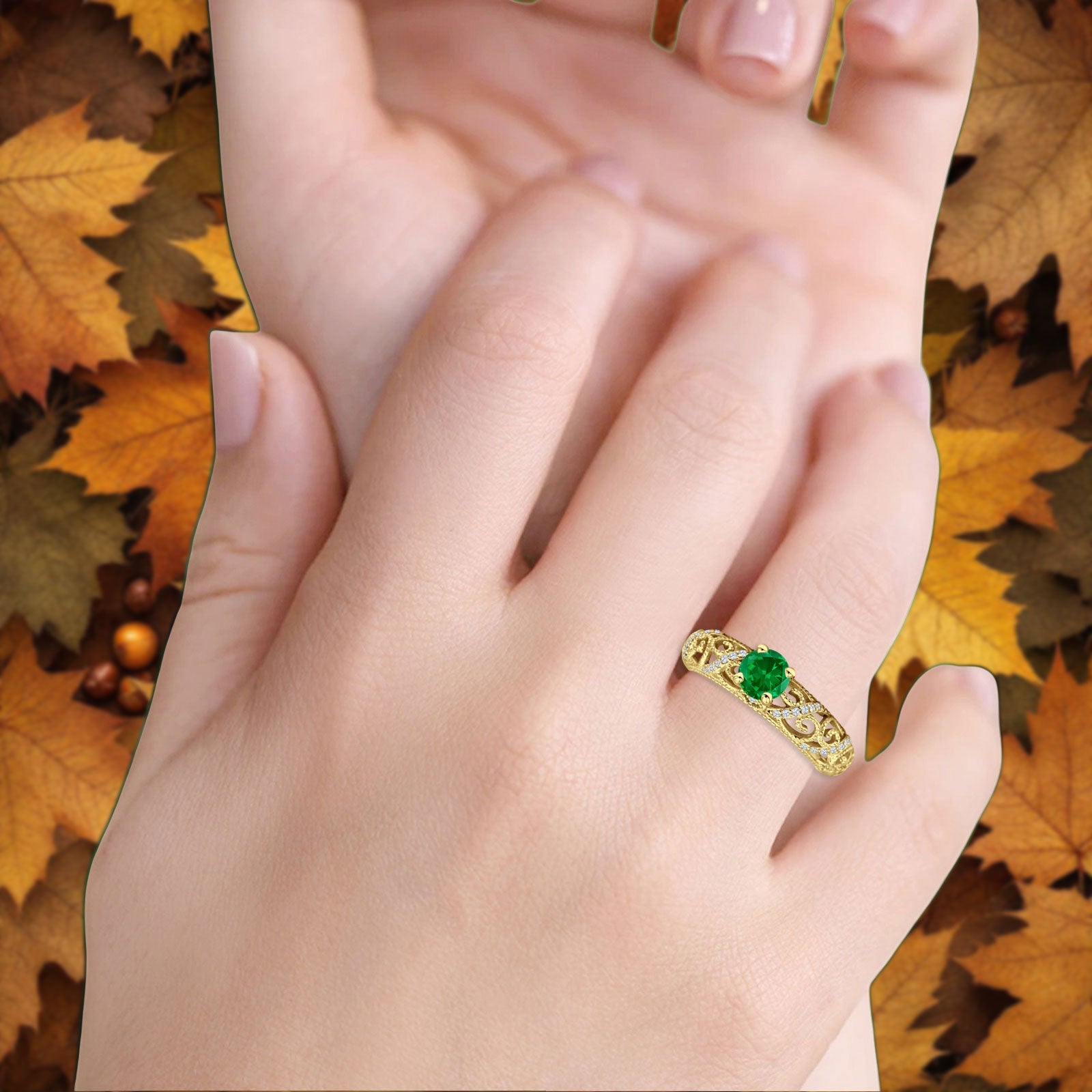 Ring Design: Round Green Emerald CZ Filigree Ring.