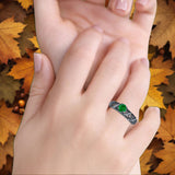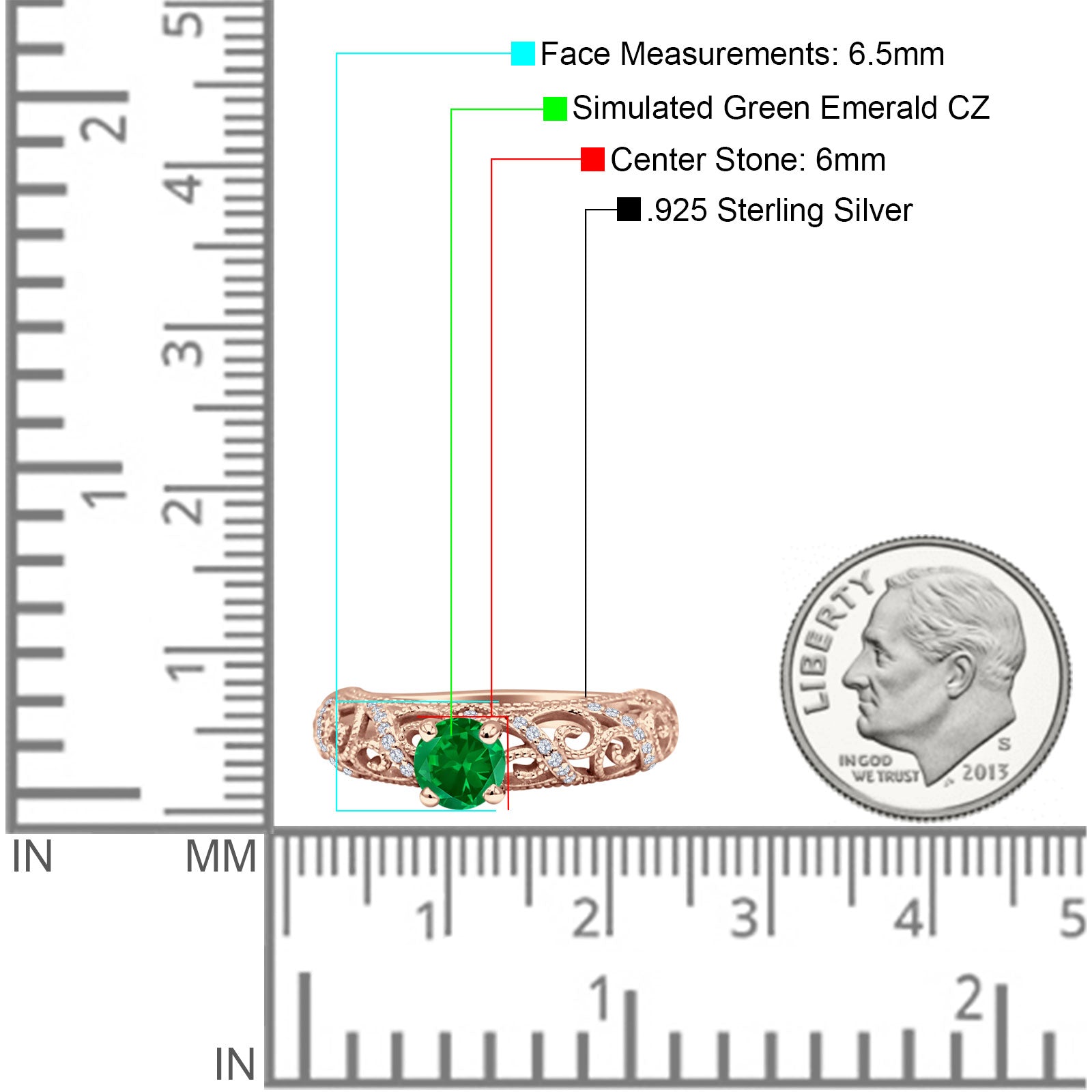 Art Deco Round Green Emerald CZ Filigree Ring 925 Sterling Silver