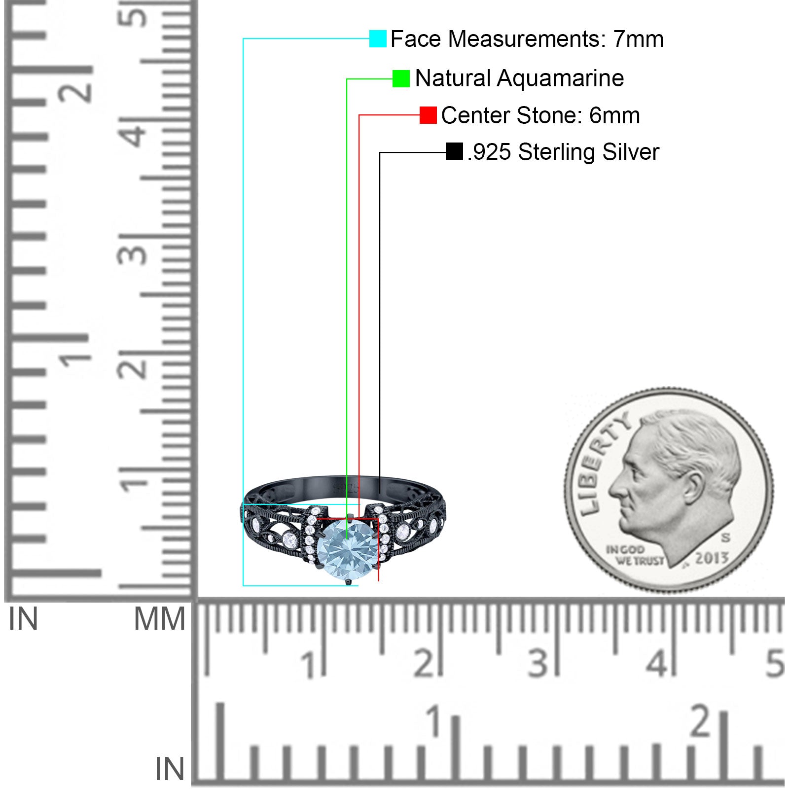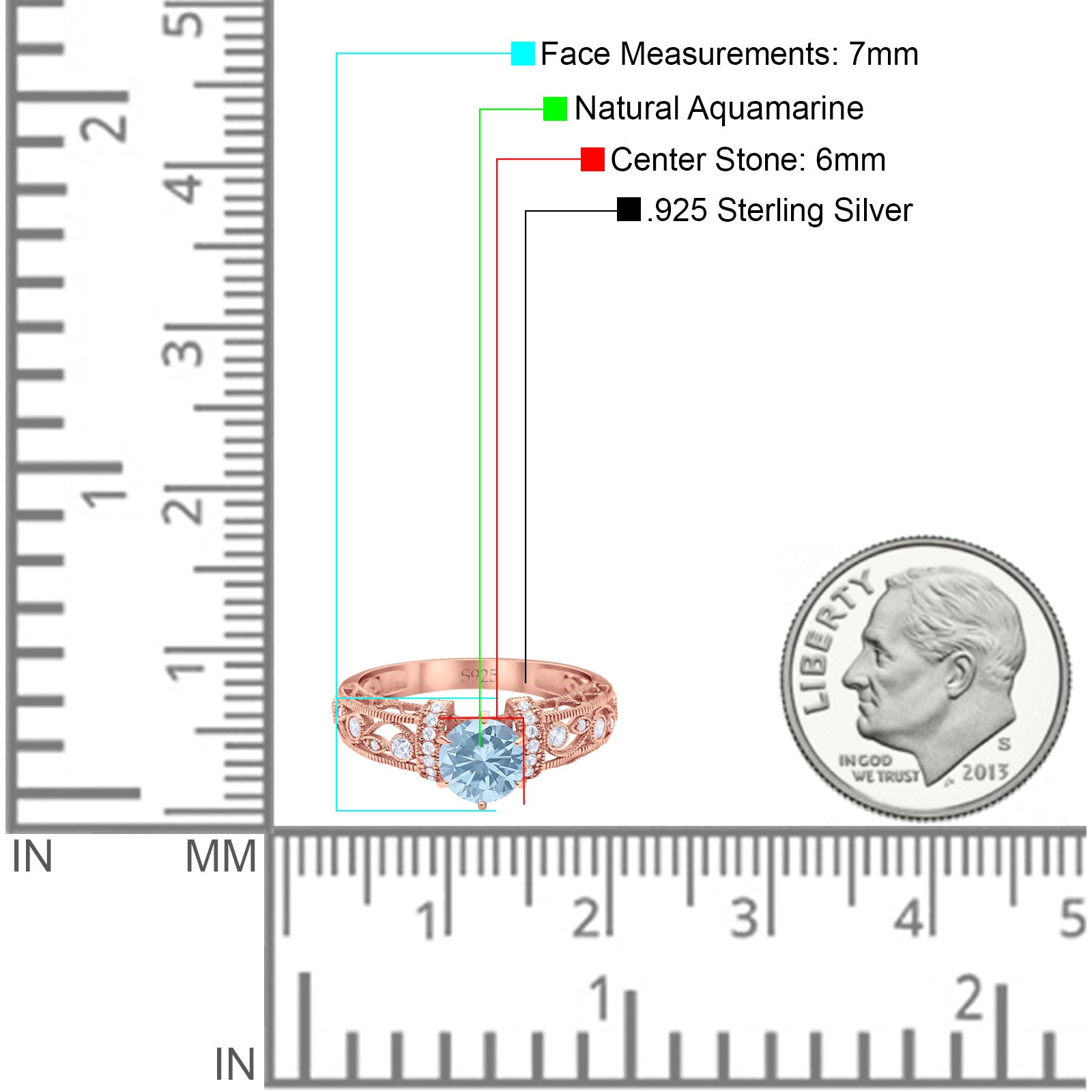 Art Deco Round Natural Aquamarine Filigree Ring 925 Sterling Silver