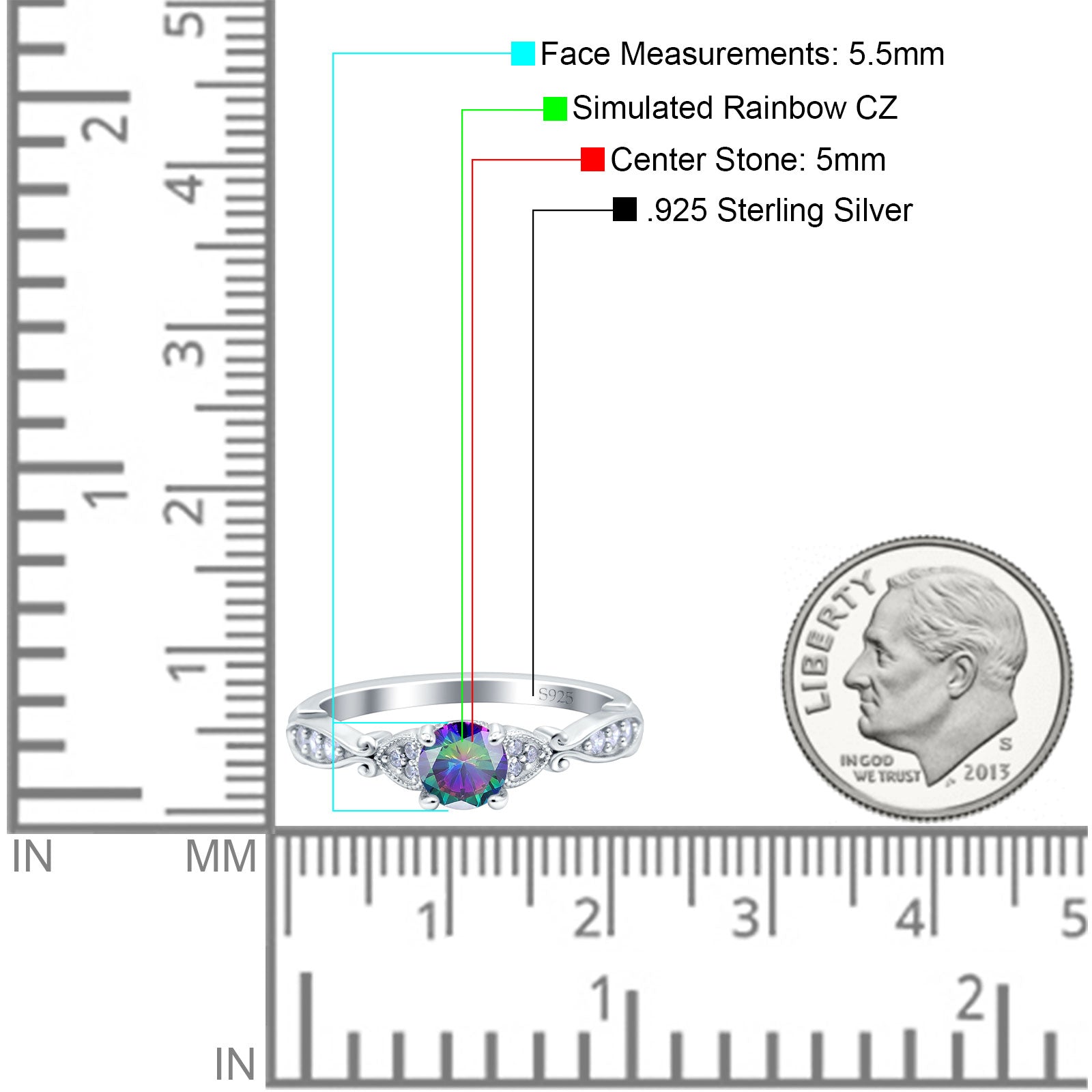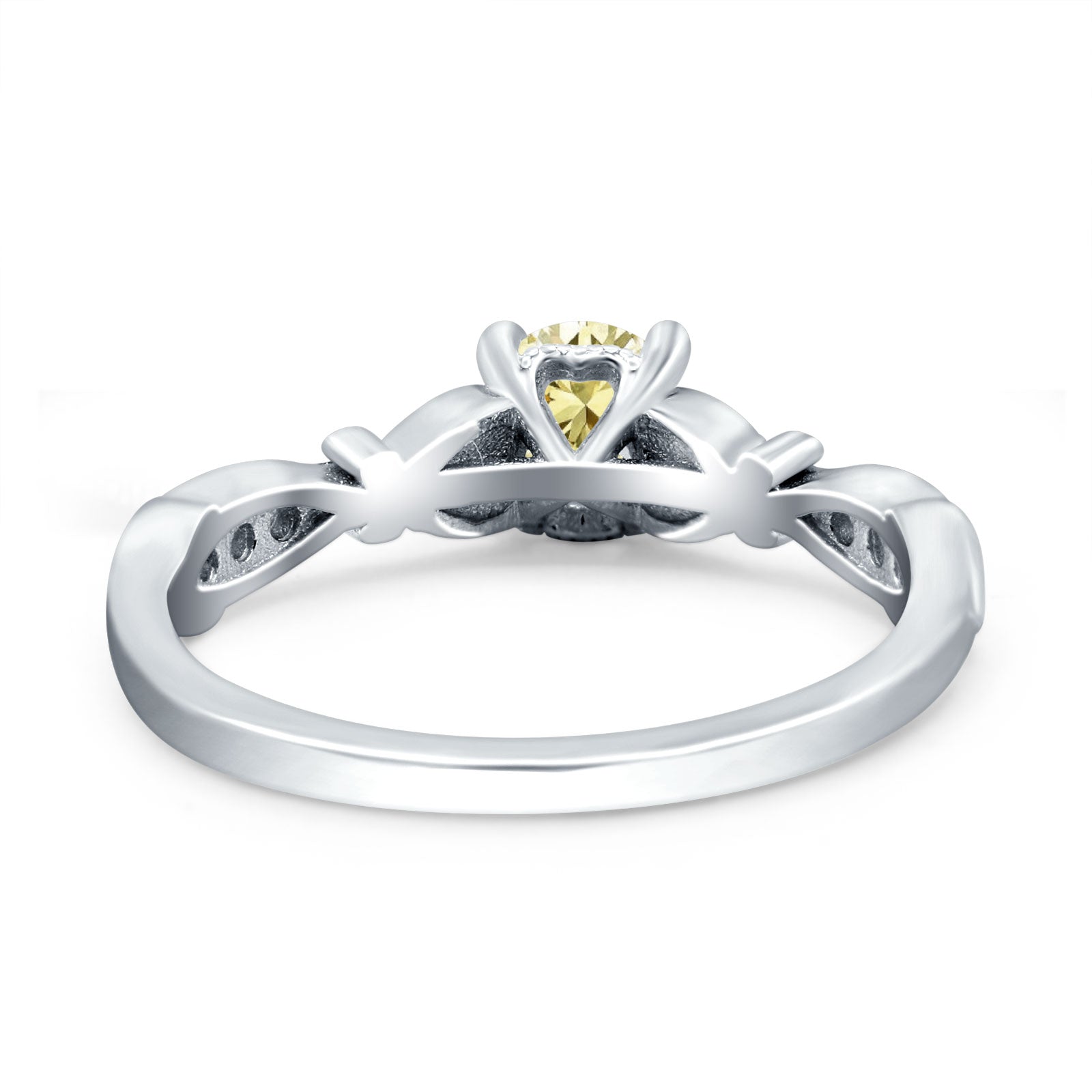 Heart Filigree Art Deco Wedding Bridal Ring Round Simulated Cubic Zirconia 925 Sterling Silver