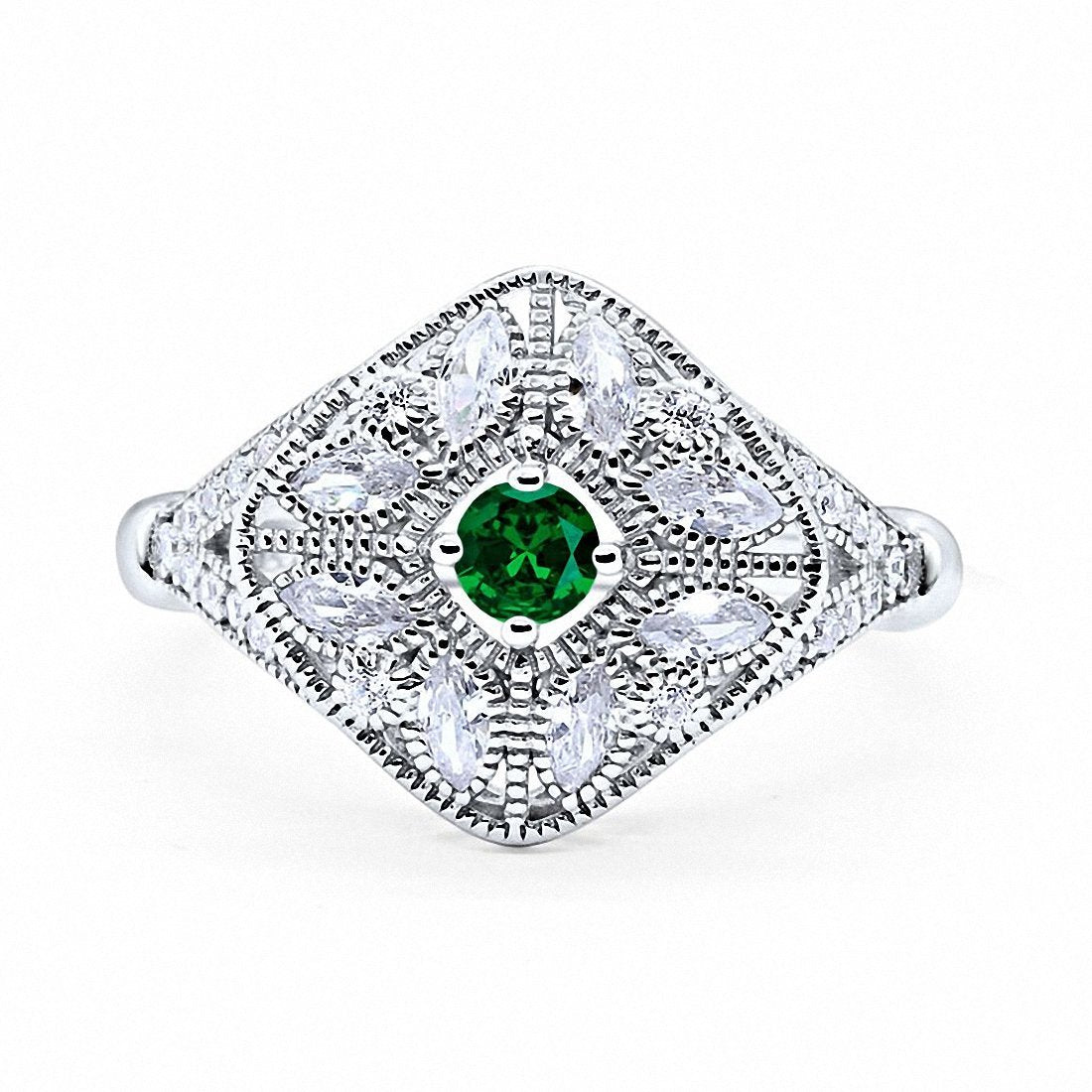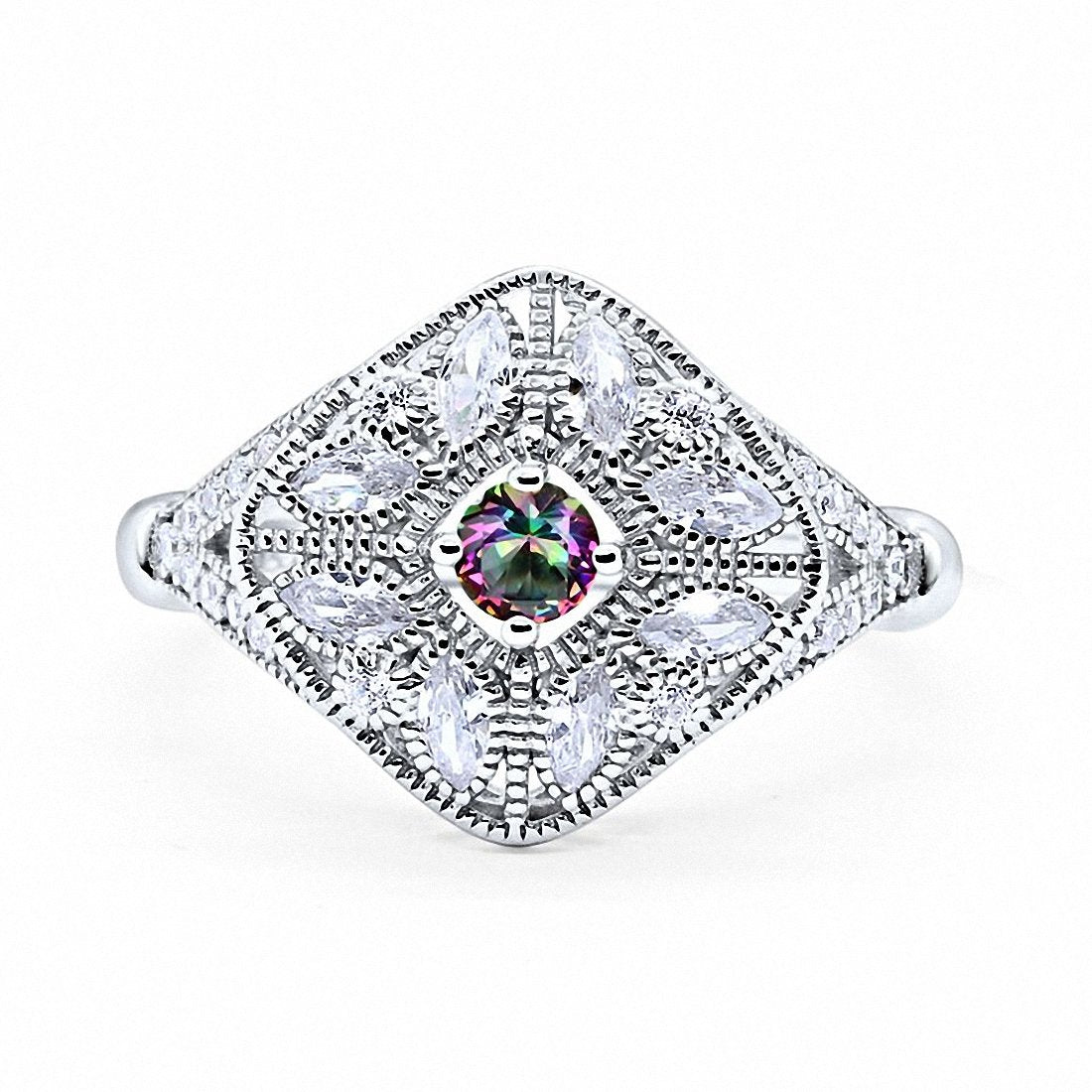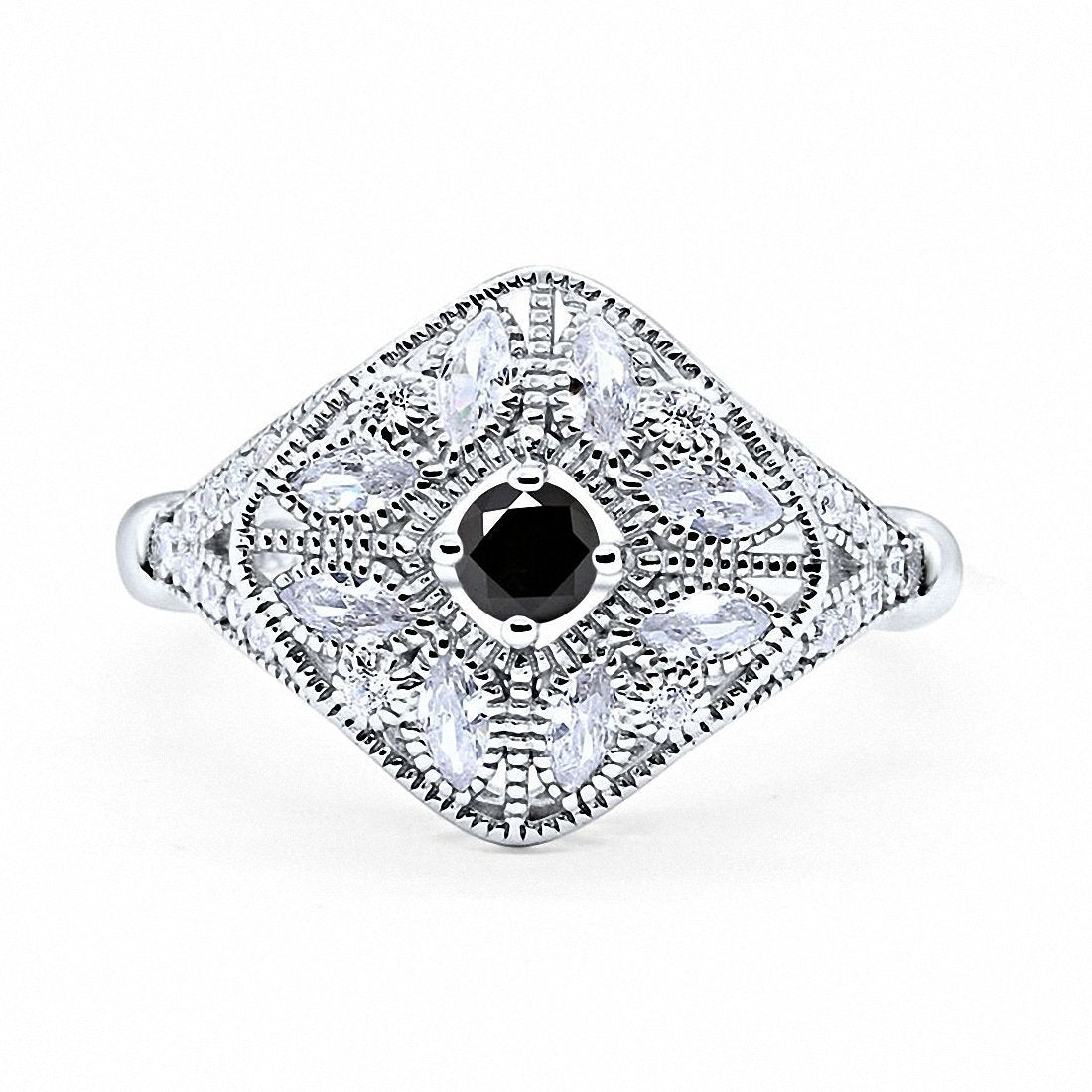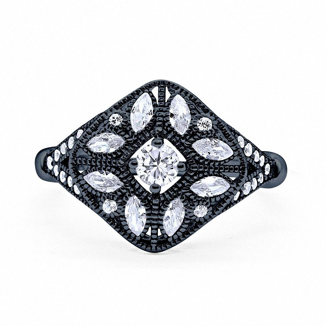 Art Deco Ring Marquise Filigree Round Cubic Zirconia 925 Sterling Silver Choose Color