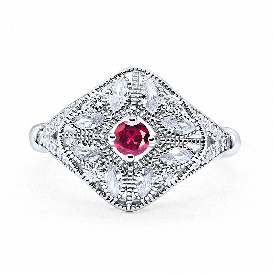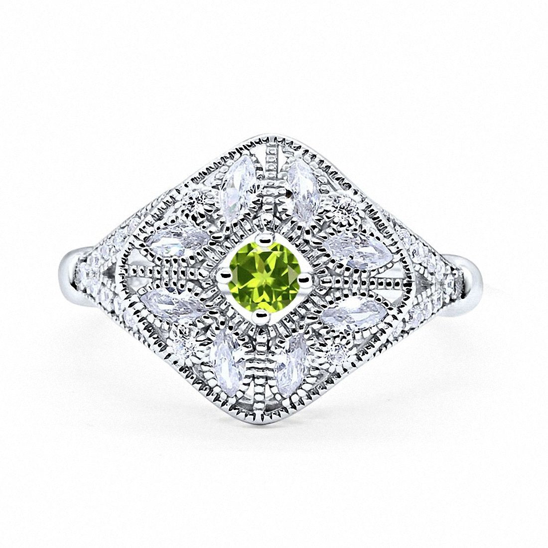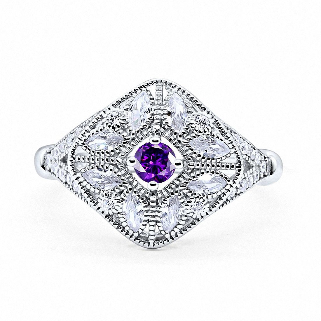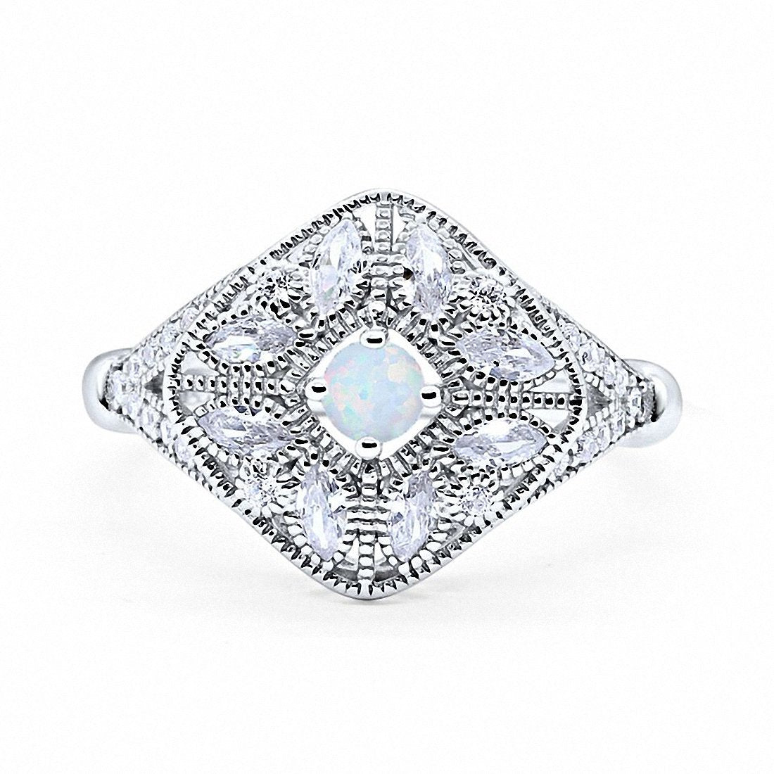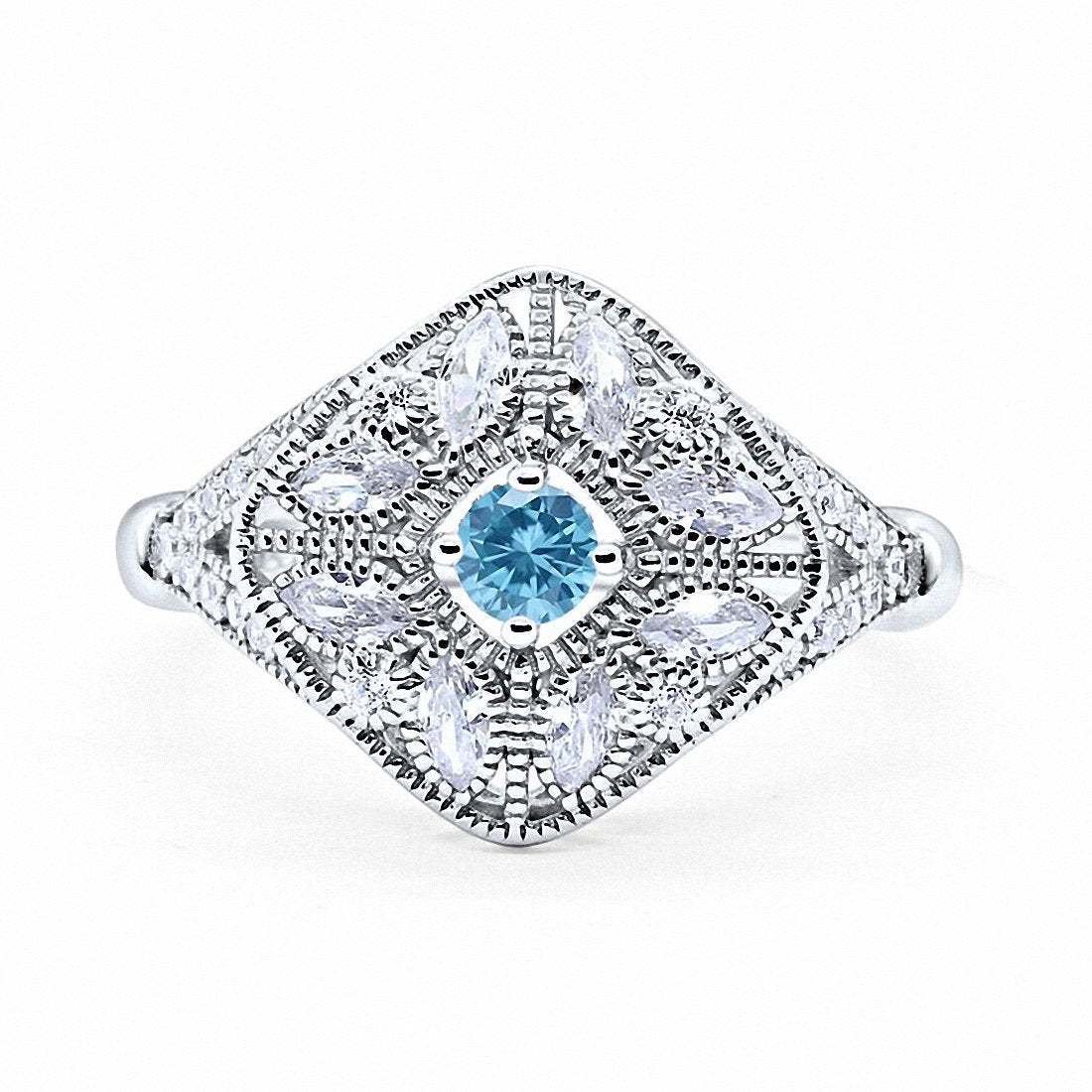 Art Deco Ring Marquise Filigree Round Cubic Zirconia 925 Sterling Silver Choose Color