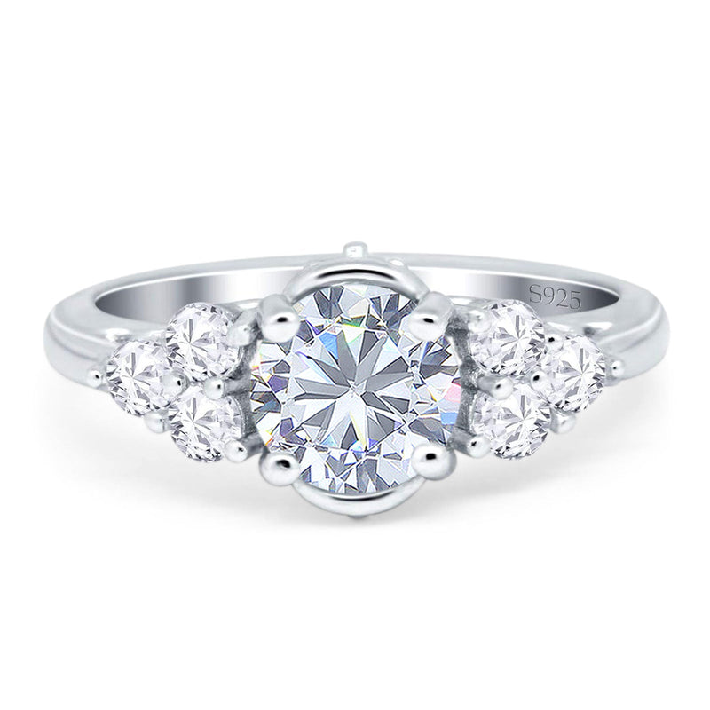 Moissanite Engagement RingMetal Type: Sterling Silver.Metal Stamp or Hallmark: .925Metal Purity: 92.5% Sterling.Gemstone: Moissanite.Side Stone: Cubic Zirconia (CZ).Face Measurements From South To North:8mm(0.31 inch)Center Stone Measurements:7mm(0.27").Approximate Center Stone Carat Weight: 1.28 CaratFeatures:-Round Moissanite Gemstone.-Elegant Scrollwork Gallery.-Six-Stone Side Cluster Setting.- Crafted...
