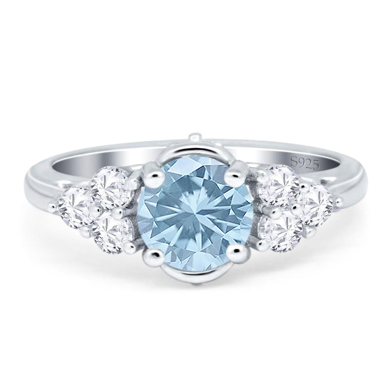 Natural Aquamarine Engagement RingMetal Type: Sterling Silver.Metal Stamp or Hallmark: .925Metal Purity: 92.5% Sterling.Gemstone: Natural Aquamarine.Gemstone Creation Method: Natural.Side Stone: Cubic Zirconia (CZ).Face Measurements From South To North:8mm(0.31 inch)Center Stone Measurements:7mm(0.27").Approximate Center Stone Carat Weight: 1.28 CaratFeatures:-Round Natural Aquamarine Gemstone.-Elegant...