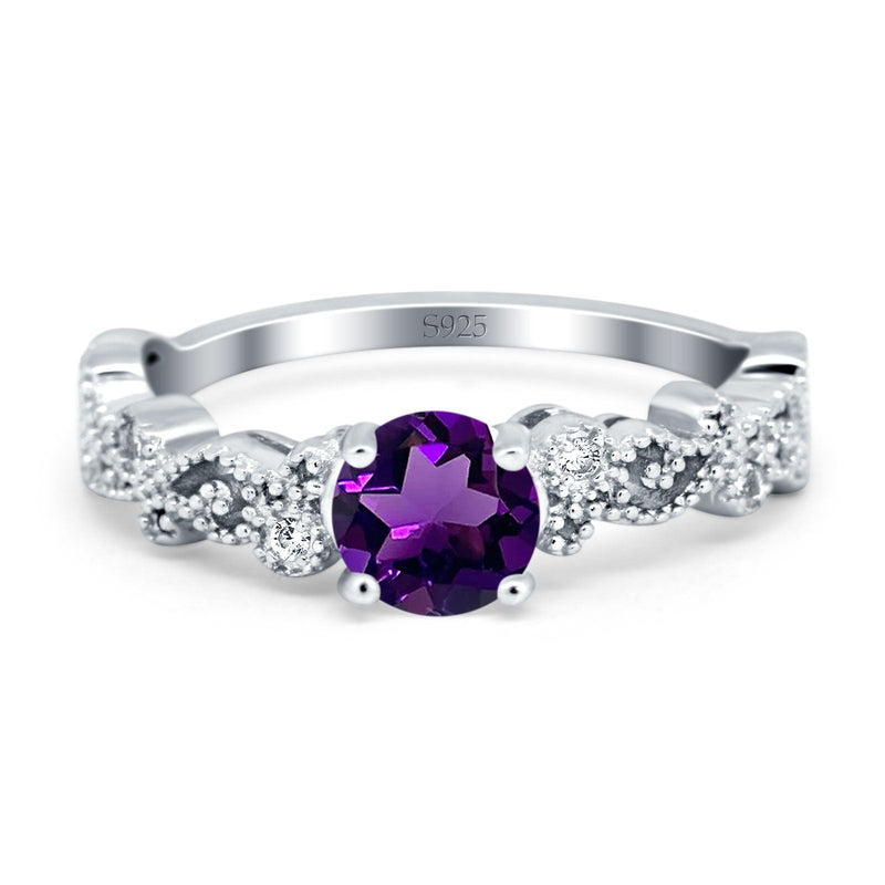 Natural Amethyst Engagement RingMetal Type: Sterling Silver.Metal Stamp or Hallmark: .925Metal Purity: 92.5% Sterling.Gemstone: Natural Amethyst.Gemstone Creation Method: Natural.Side Stone: Cubic Zirconia (CZ).Face Measurements From South To North:7mm(0.27 inch)Center Stone Measurements:7mm(0.27").Approximate Center Stone Carat Weight: 1.28 CaratFeatures:-Round Natural Amethyst Gemstone.-Vintage-Inspired...