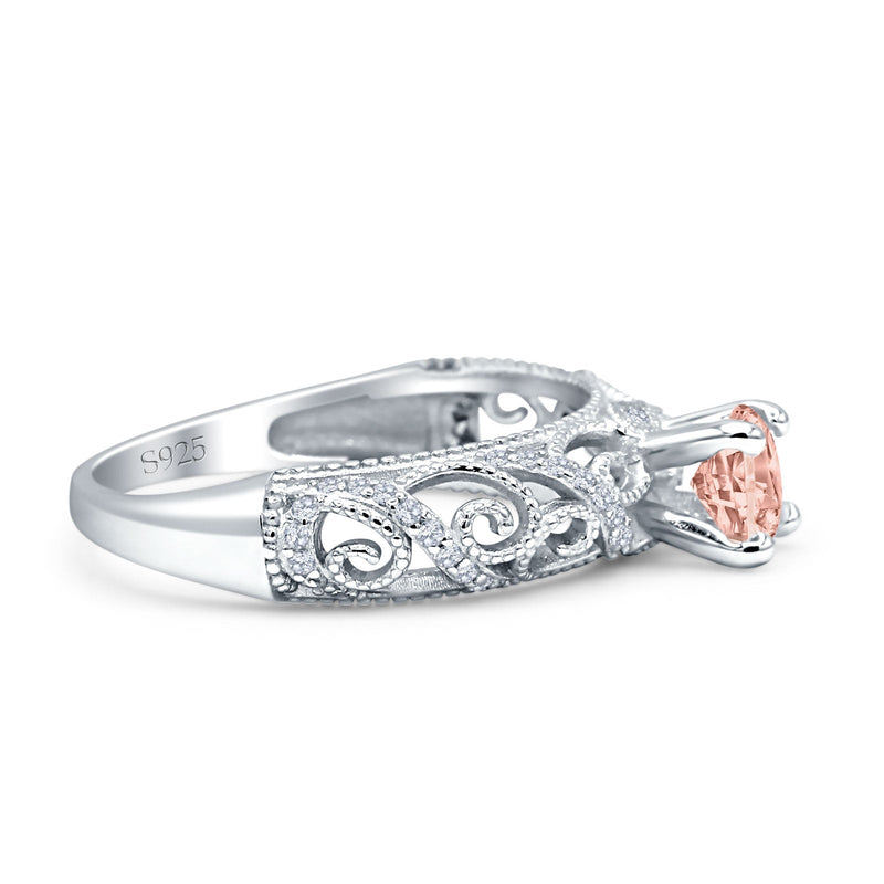 Art Deco Round Morganite CZ Filigree Ring 925 Sterling Silver
