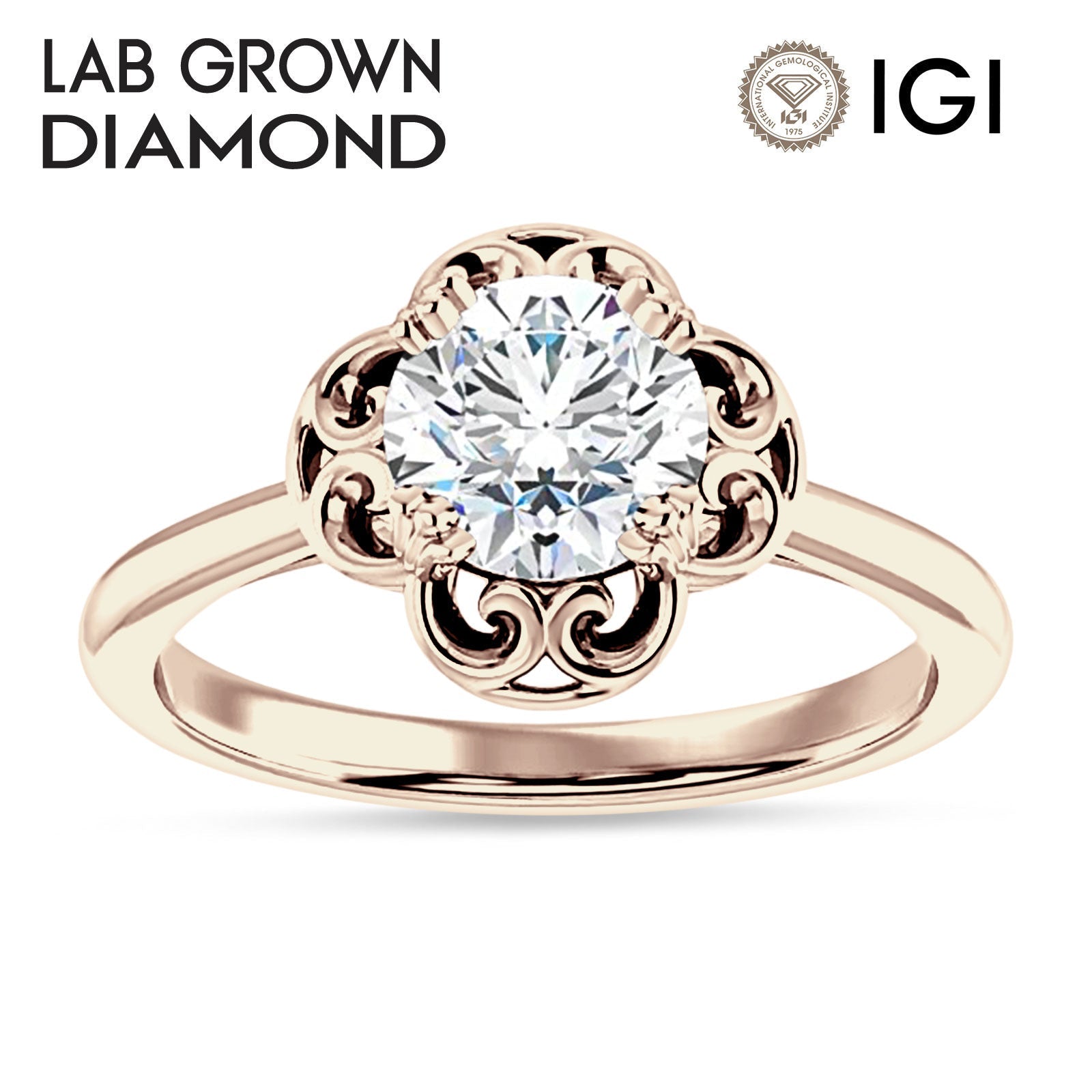 10K Gold IGI Certified Round 3 Carat Lab Grown Diamond Art Deco Solitaire Ring