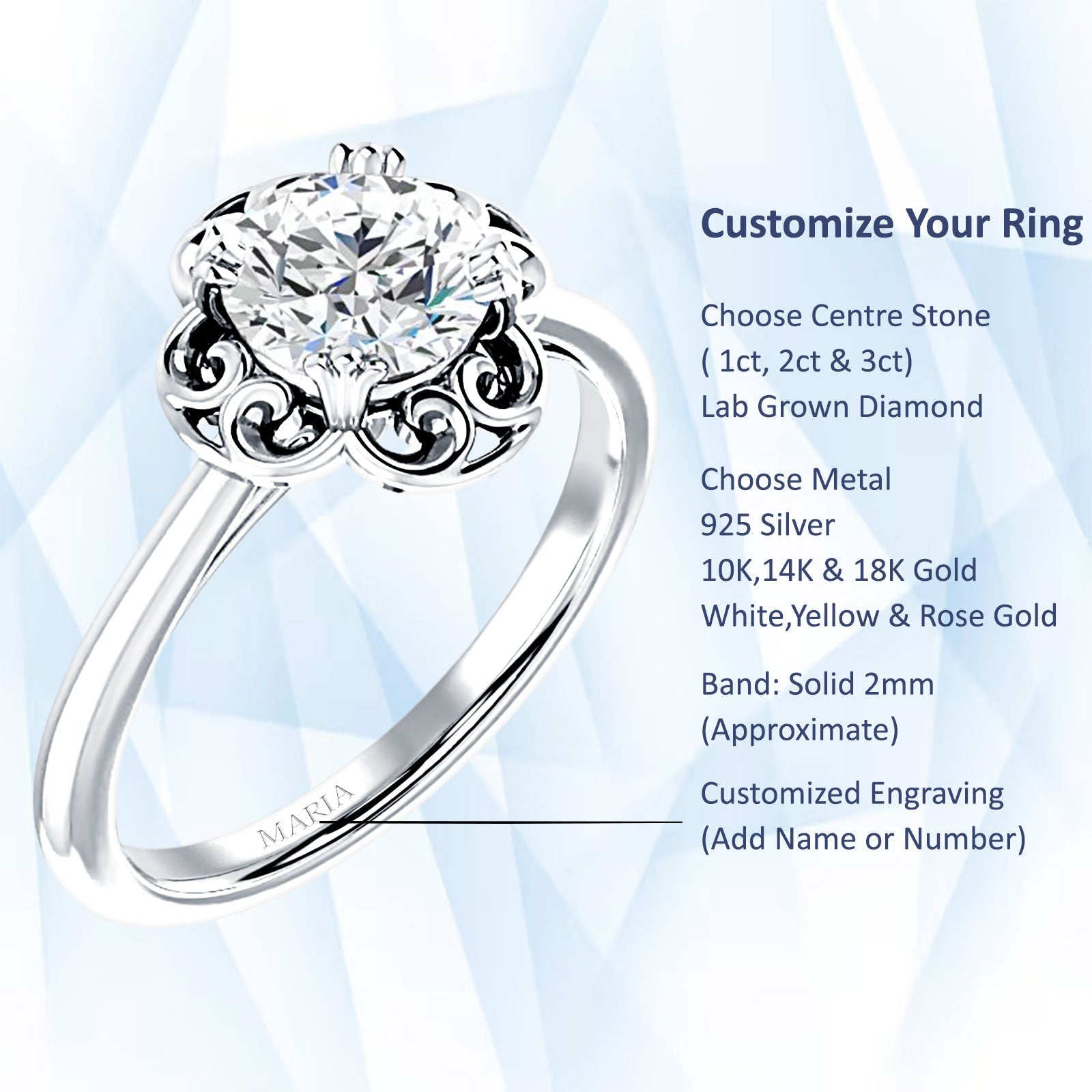 This lab grown diamond ring is available in three different carat weights and also comes in a choice of various metal types.(Tarnish Resistant Sterling Silver, 14K Gold & 18K Gold)