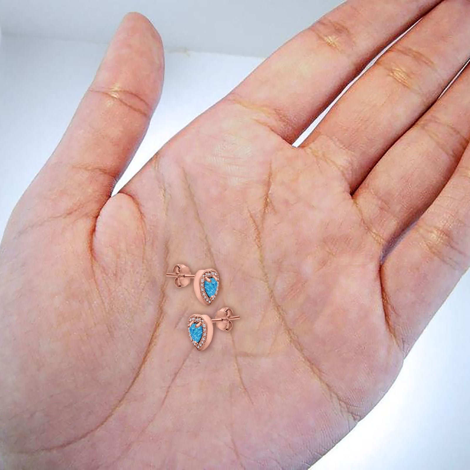 CZ & Blue Sapphire CZ Rose Tone Silver