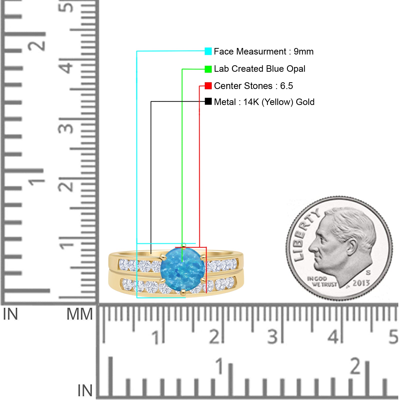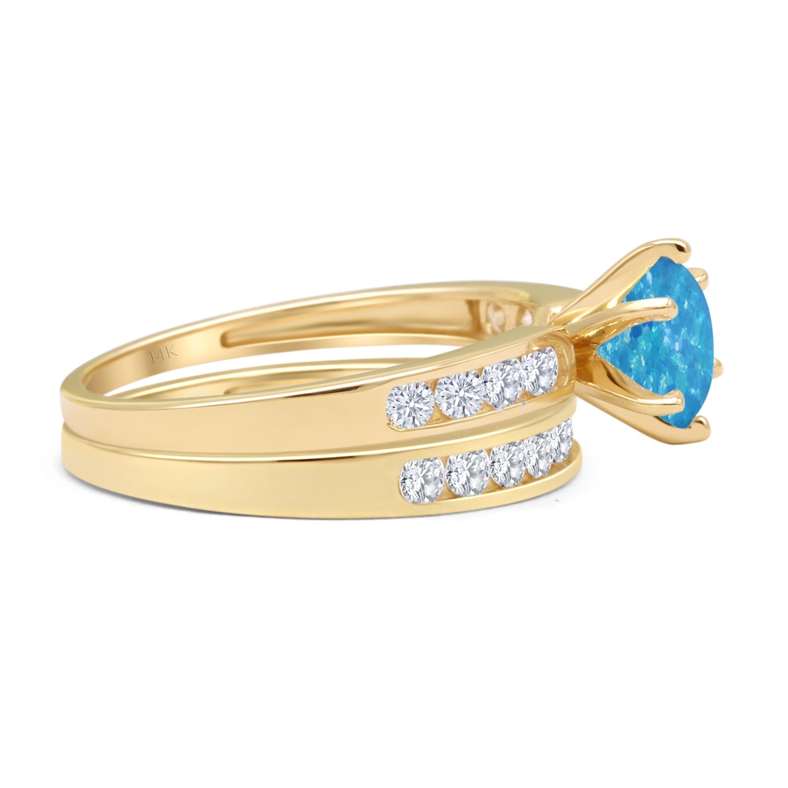 14K Yellow Gold Two Piece Half Eternity Round Lab Created Blue Opal Cathedral Ring