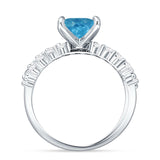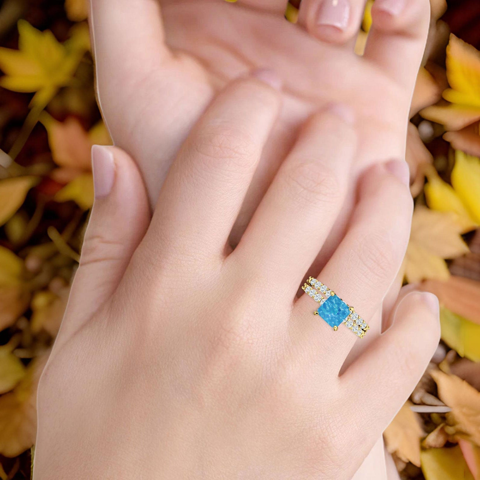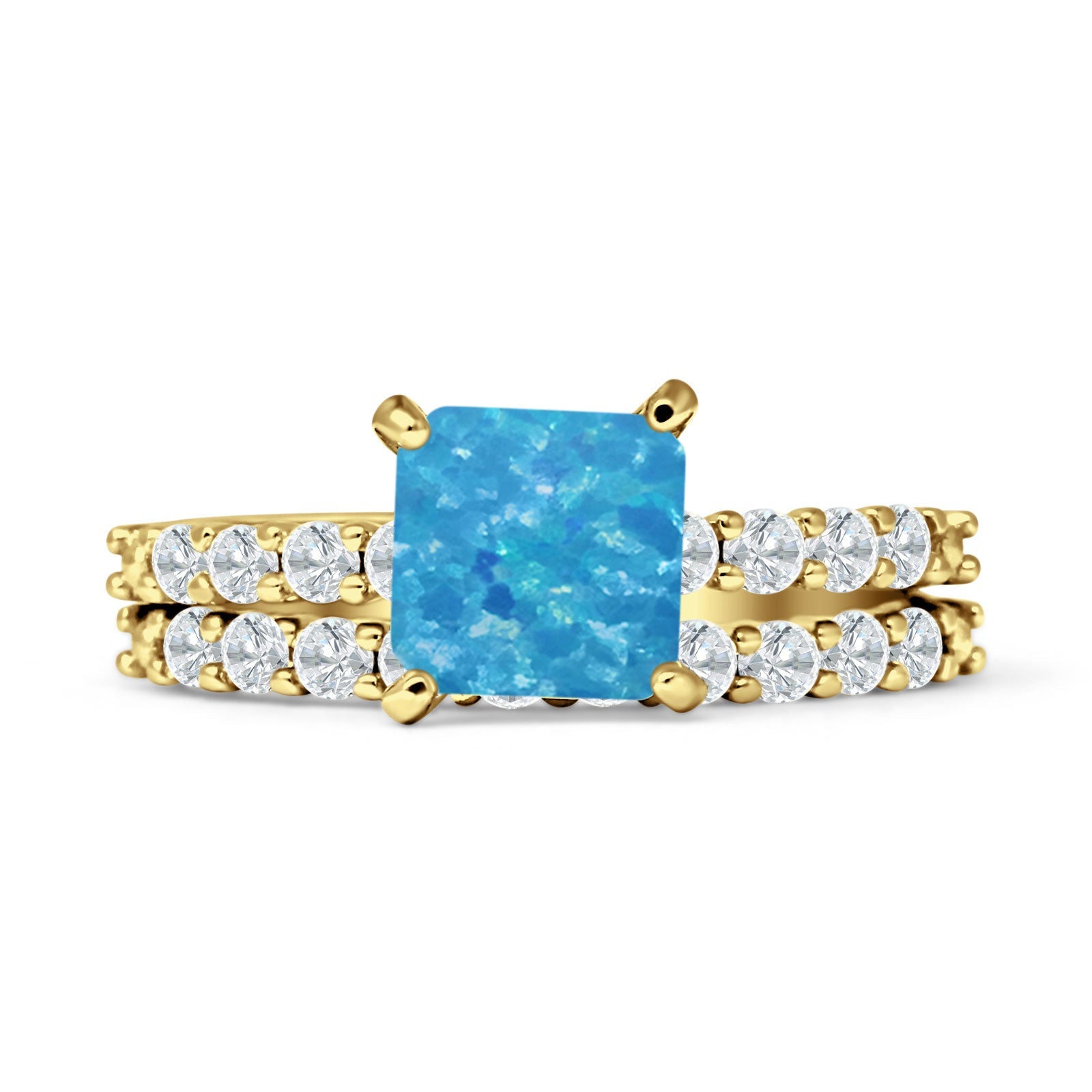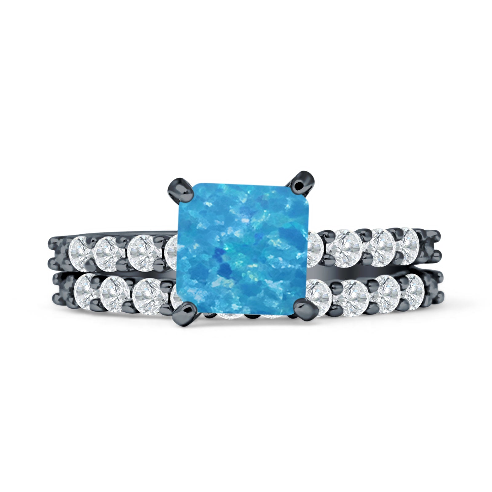 Art Deco 8mm Princess Cut Lab Created Blue Opal Stackable Ring 925 Sterling Silver