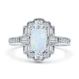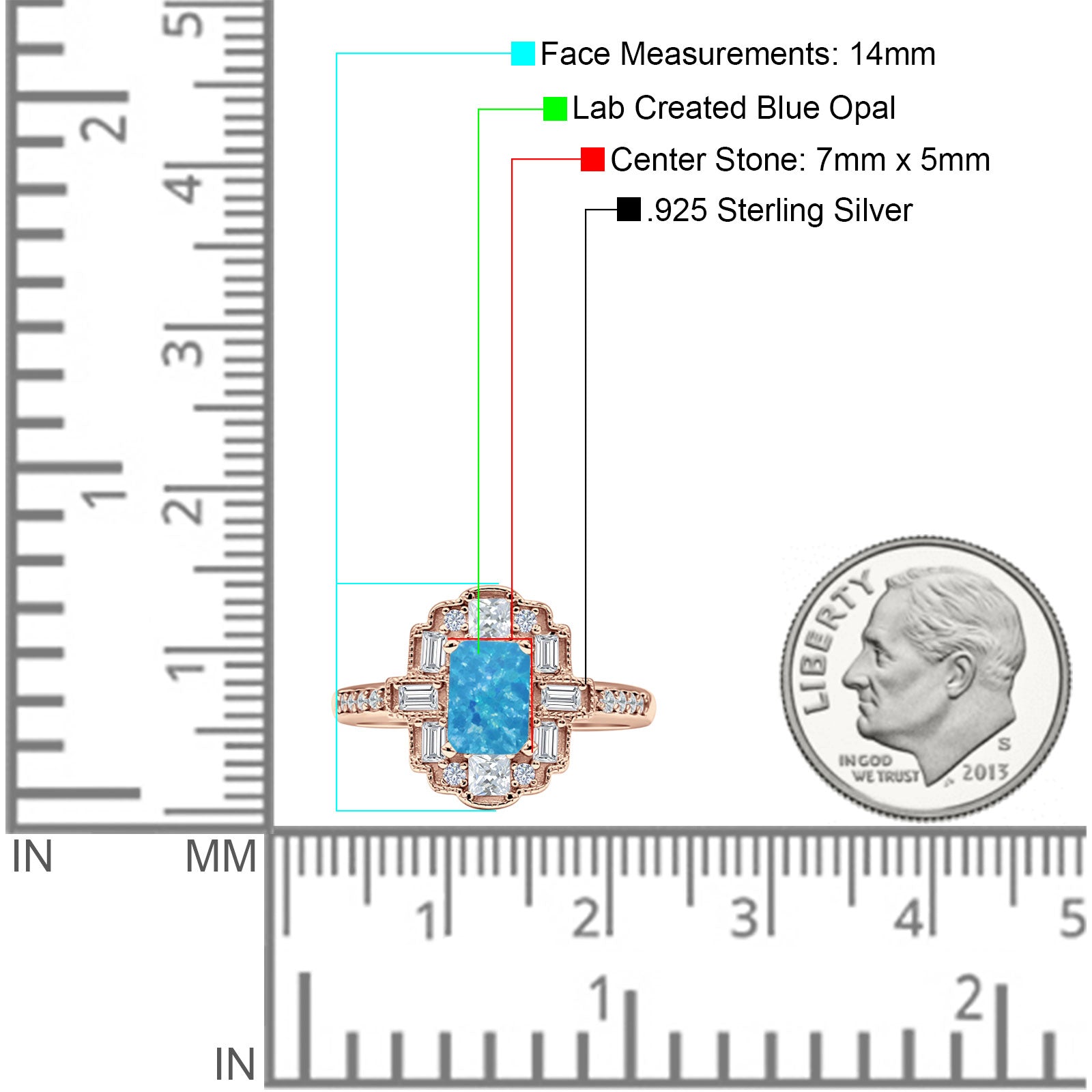 Art Deco Emerald Cut Lab Created Blue Opal Floral Cocktail Ring 925 Sterling Silver