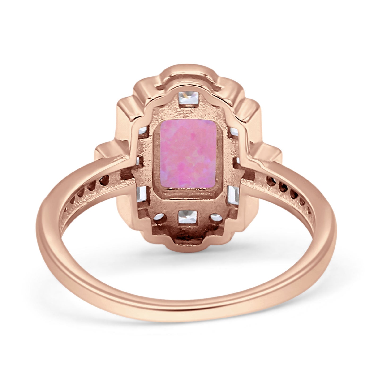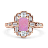 Art Deco Emerald Cut Lab Created Pink Opal Floral Cocktail Ring 925 Sterling Silver