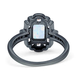 Art Deco Emerald Cut Lab Created White Opal Floral Cocktail Ring 925 Sterling Silver
