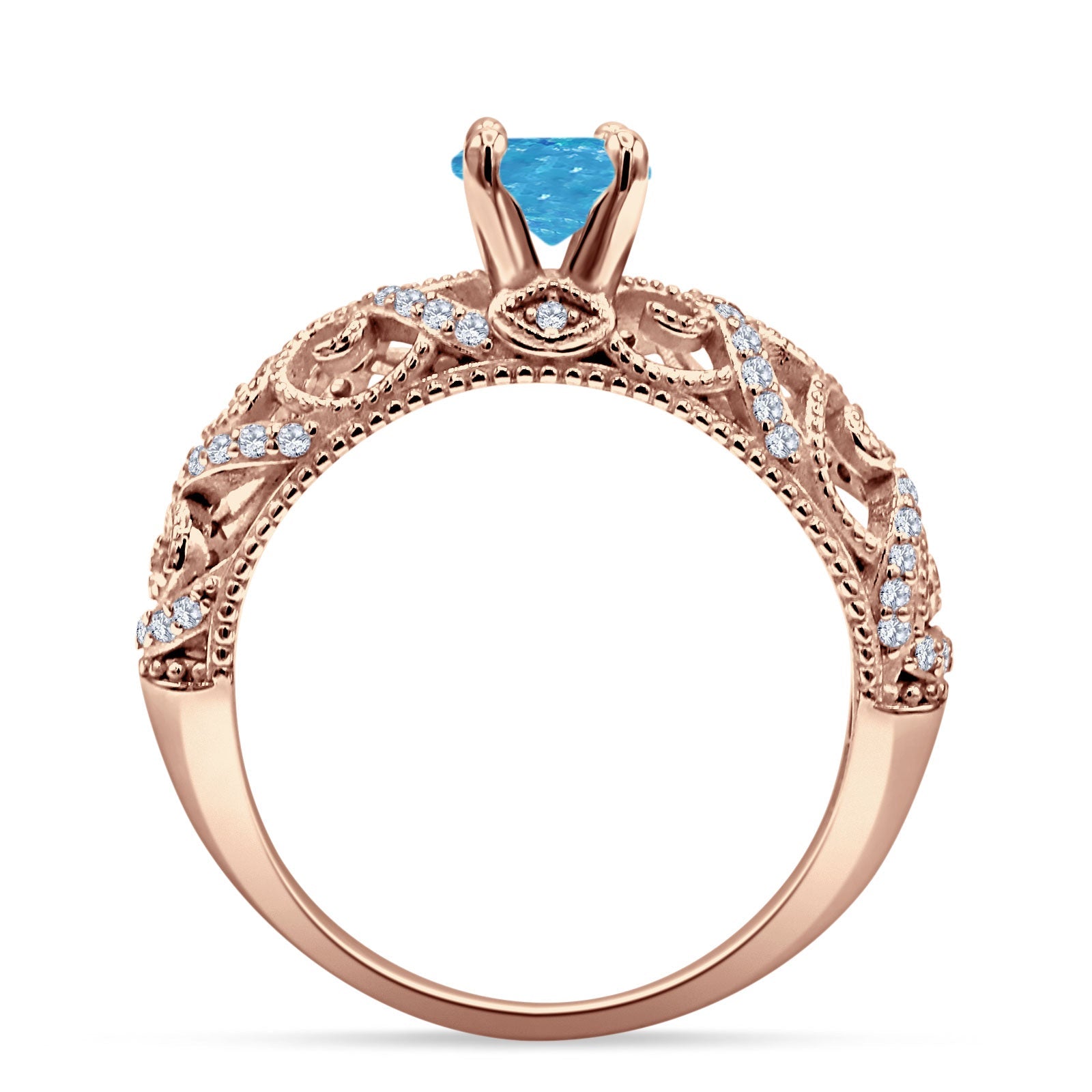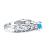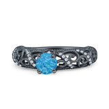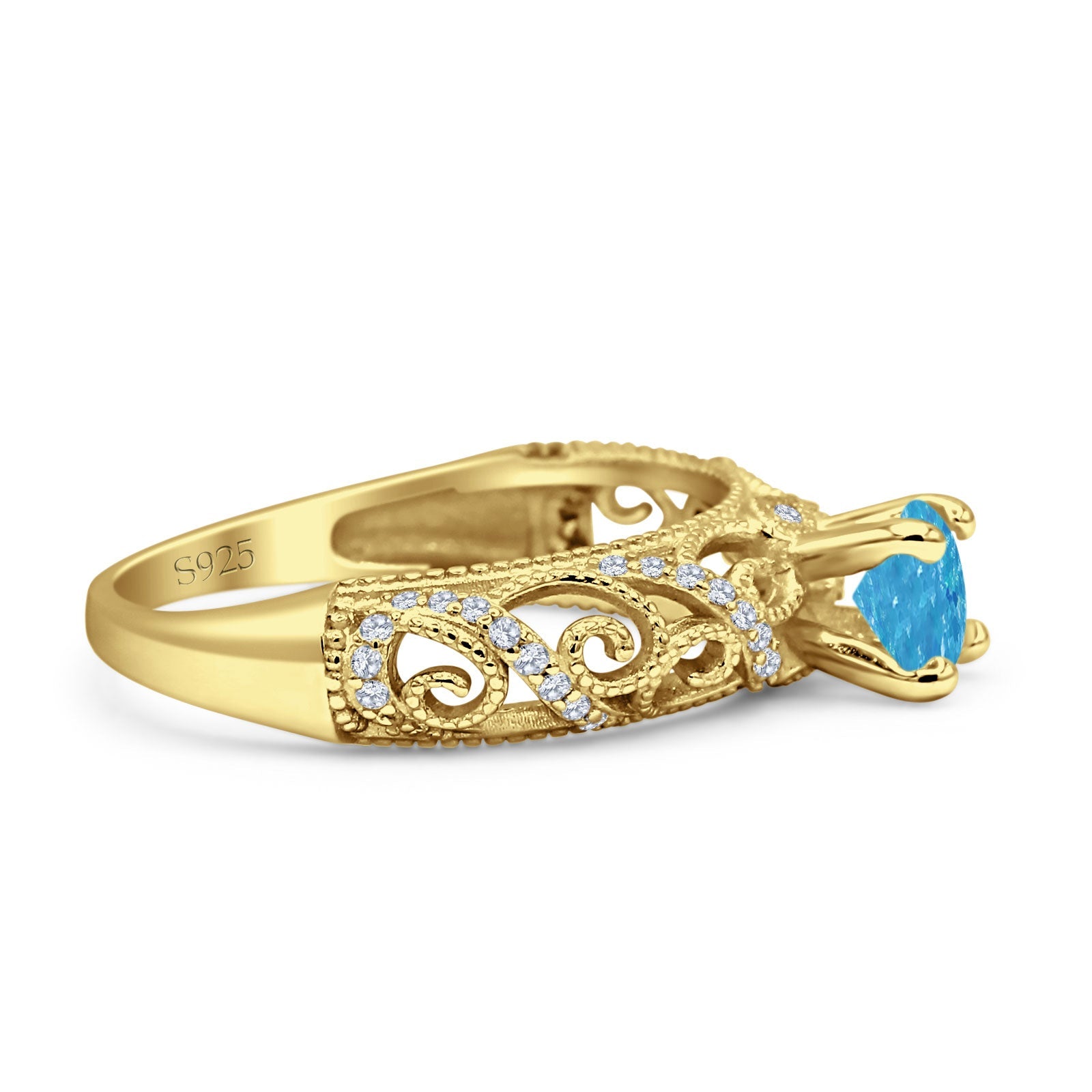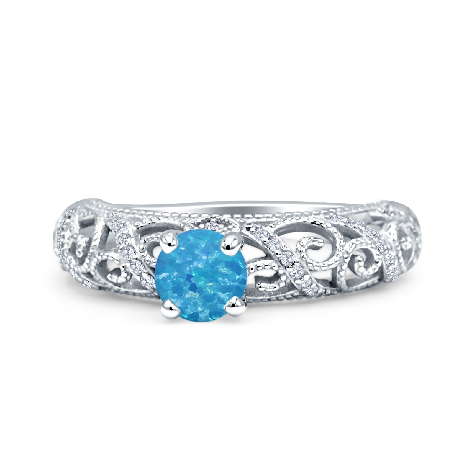 Ring Design: Round Lab Created Blue Opal Filigree Ring.