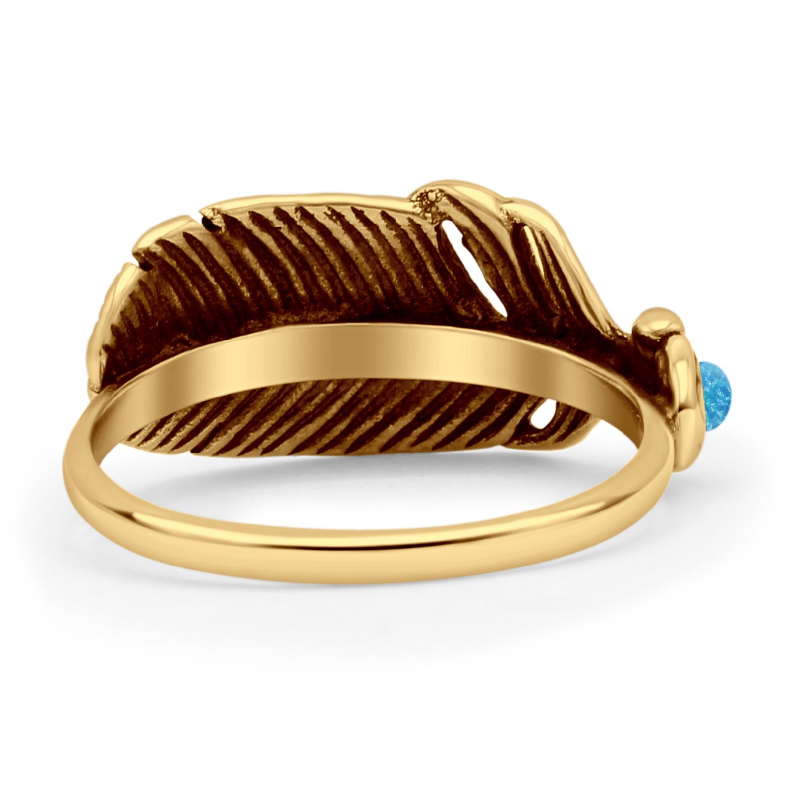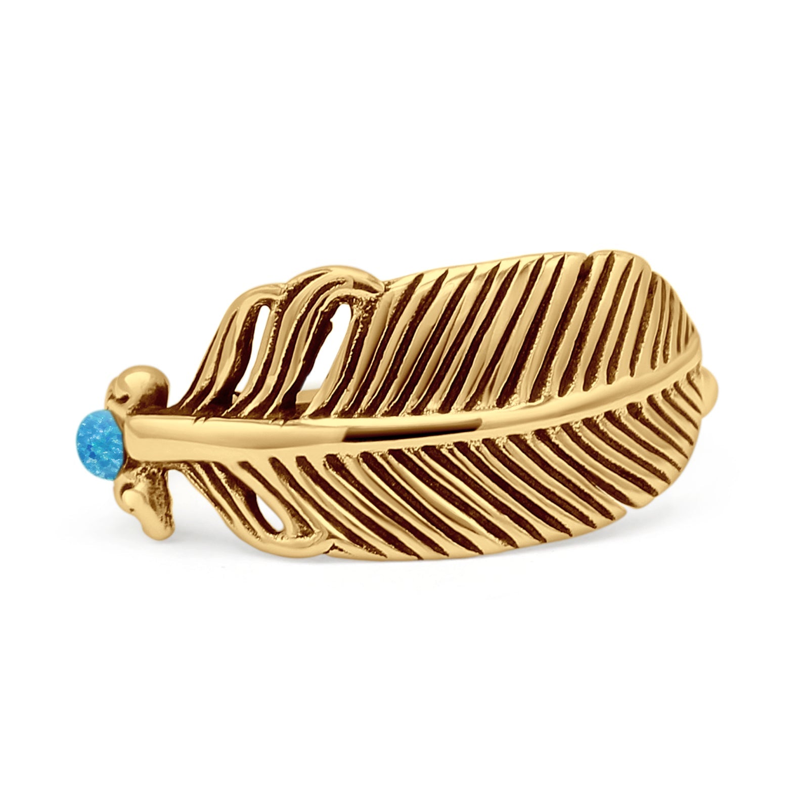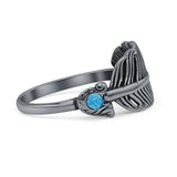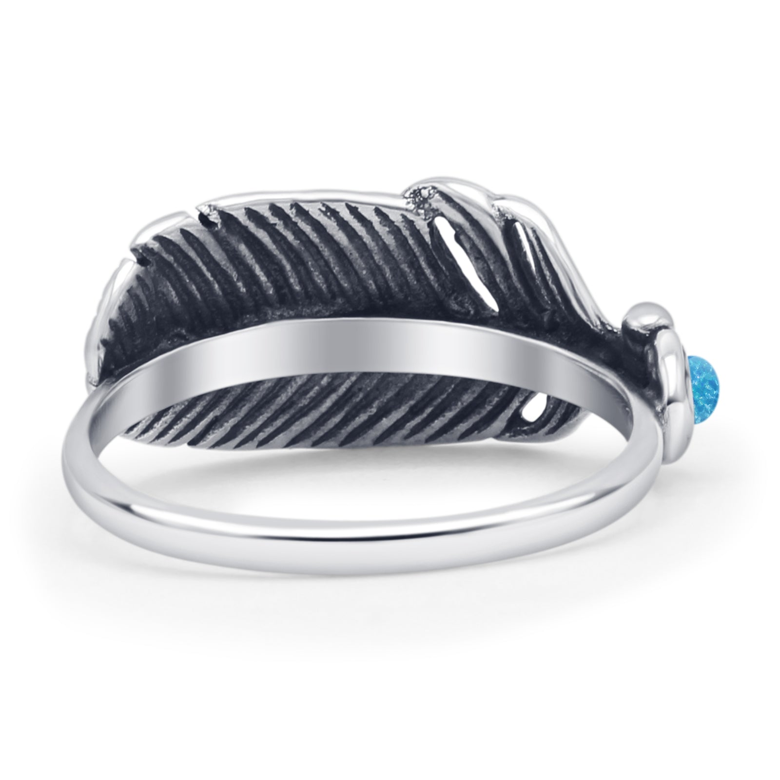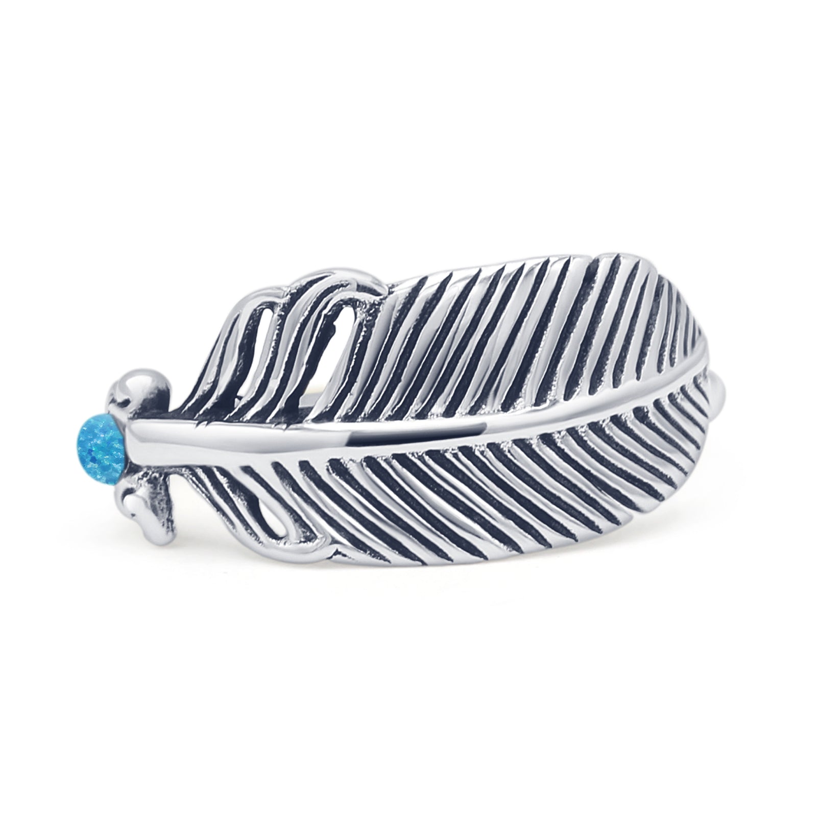 Design: Oxidized Lab Created Blue Opal Feather Ring.