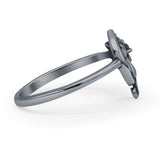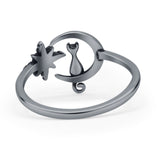 Design: Oxidized Lab Created White Opal Cat On Moon & Star Ring.