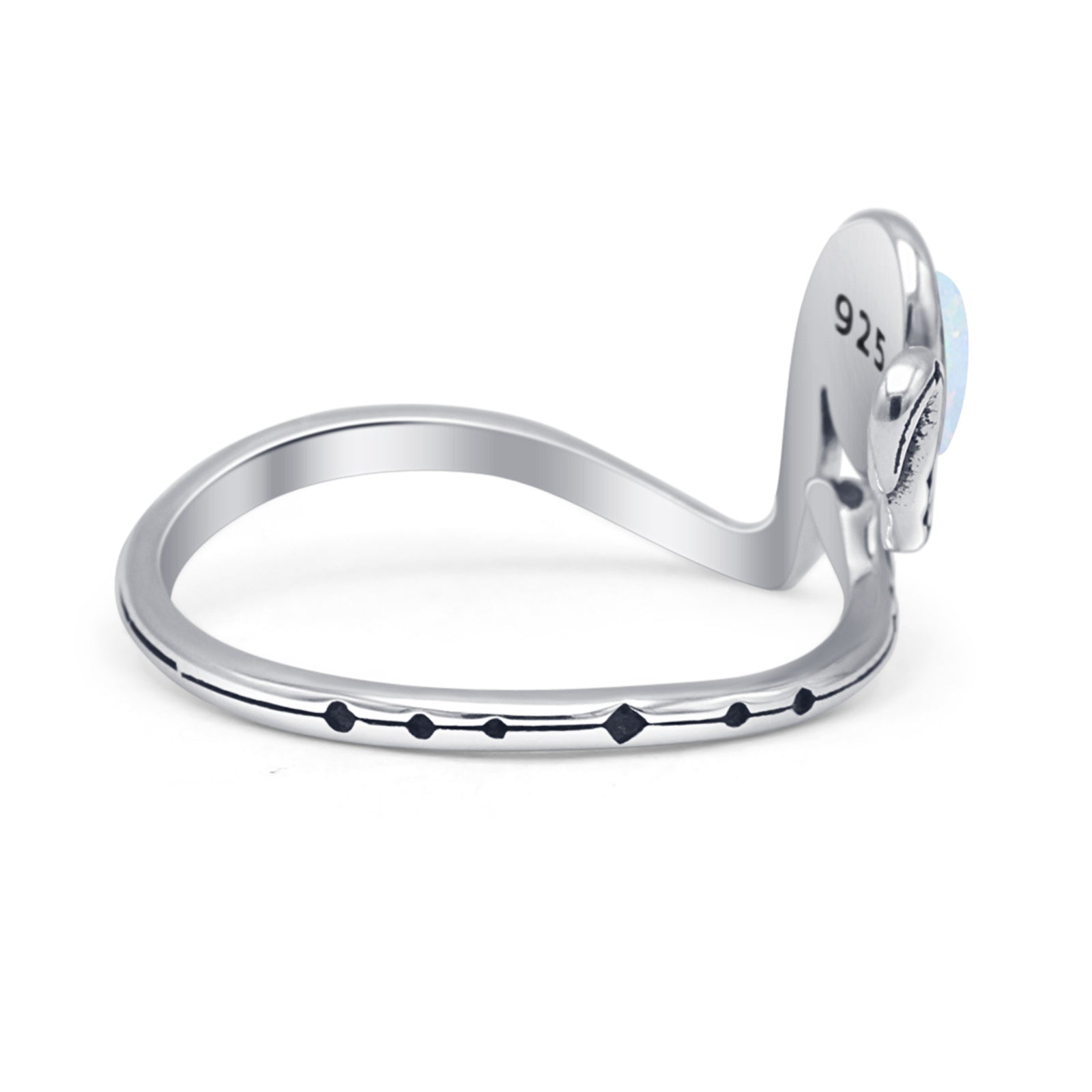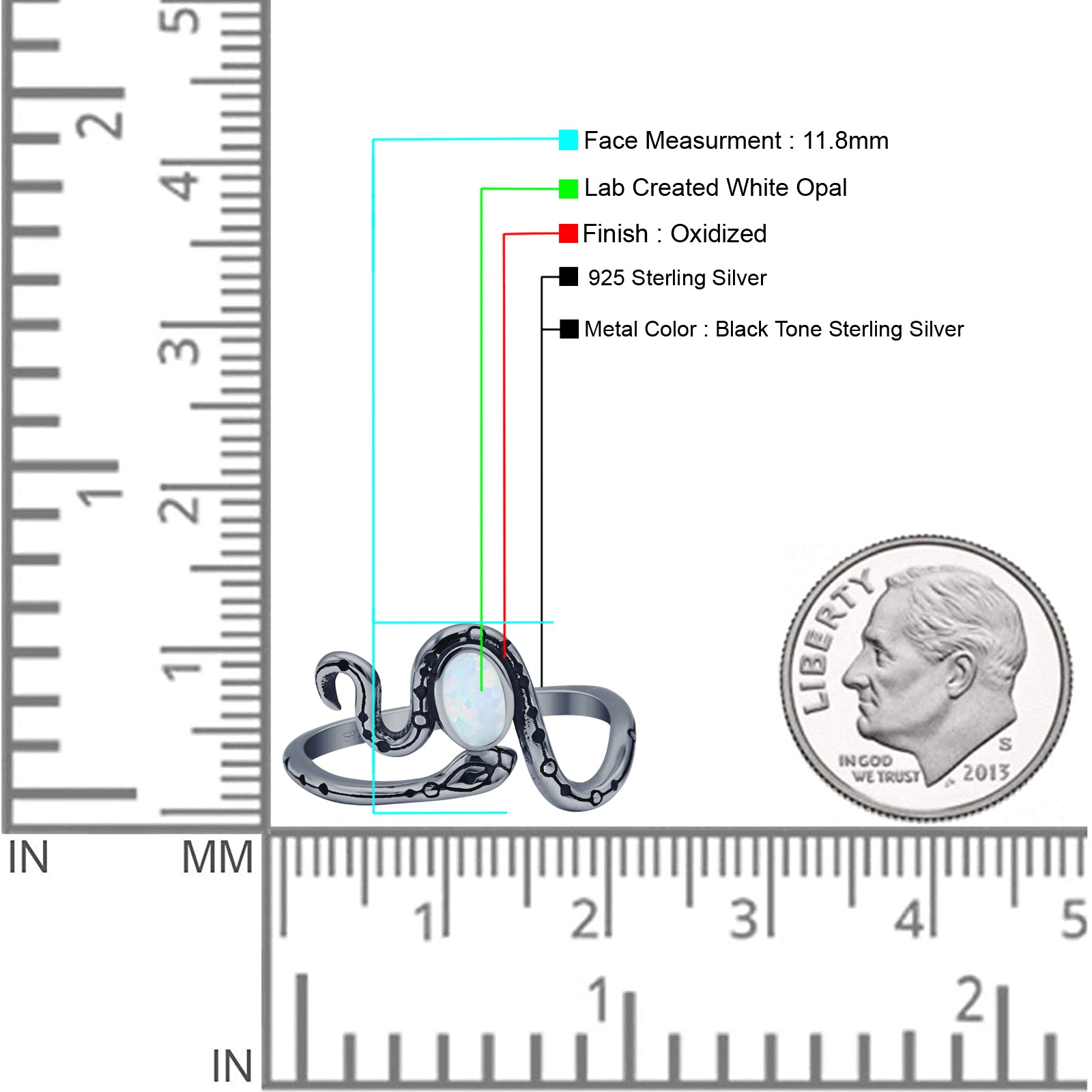 Minimalist 11.8mm Oval Lab Created White Opal Snake Ring Oxidized 925 Sterling Silver