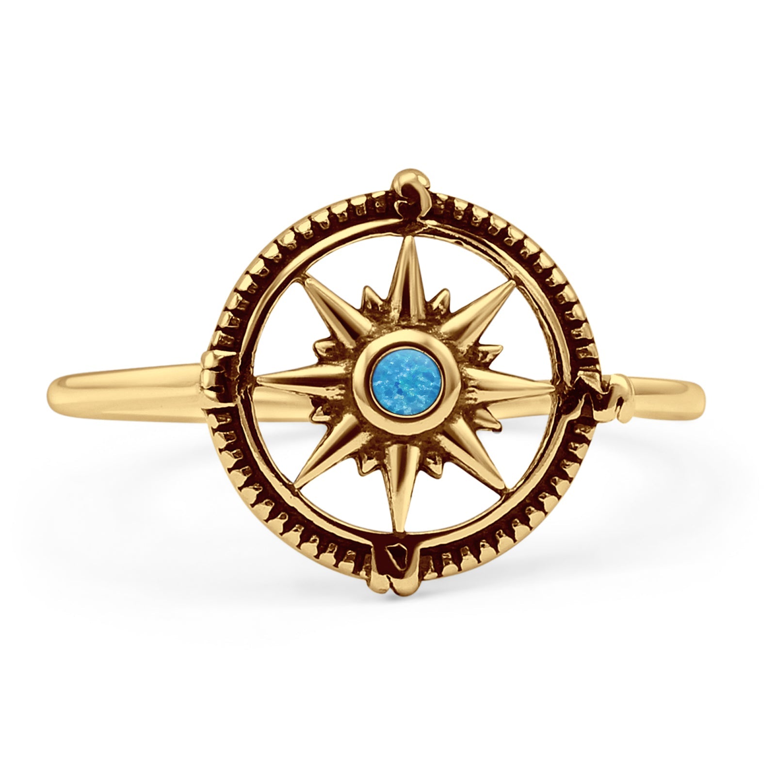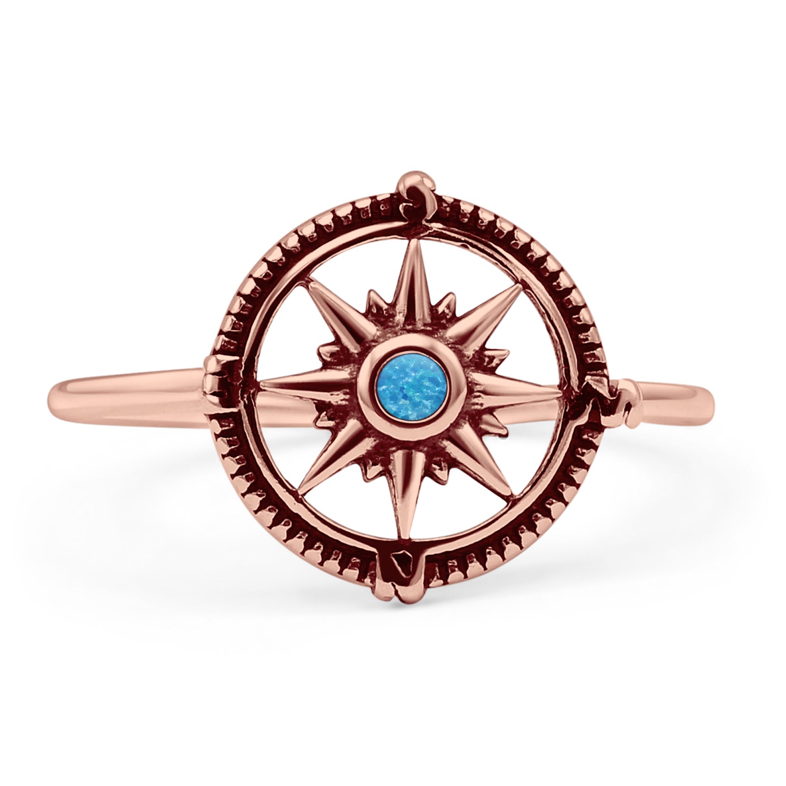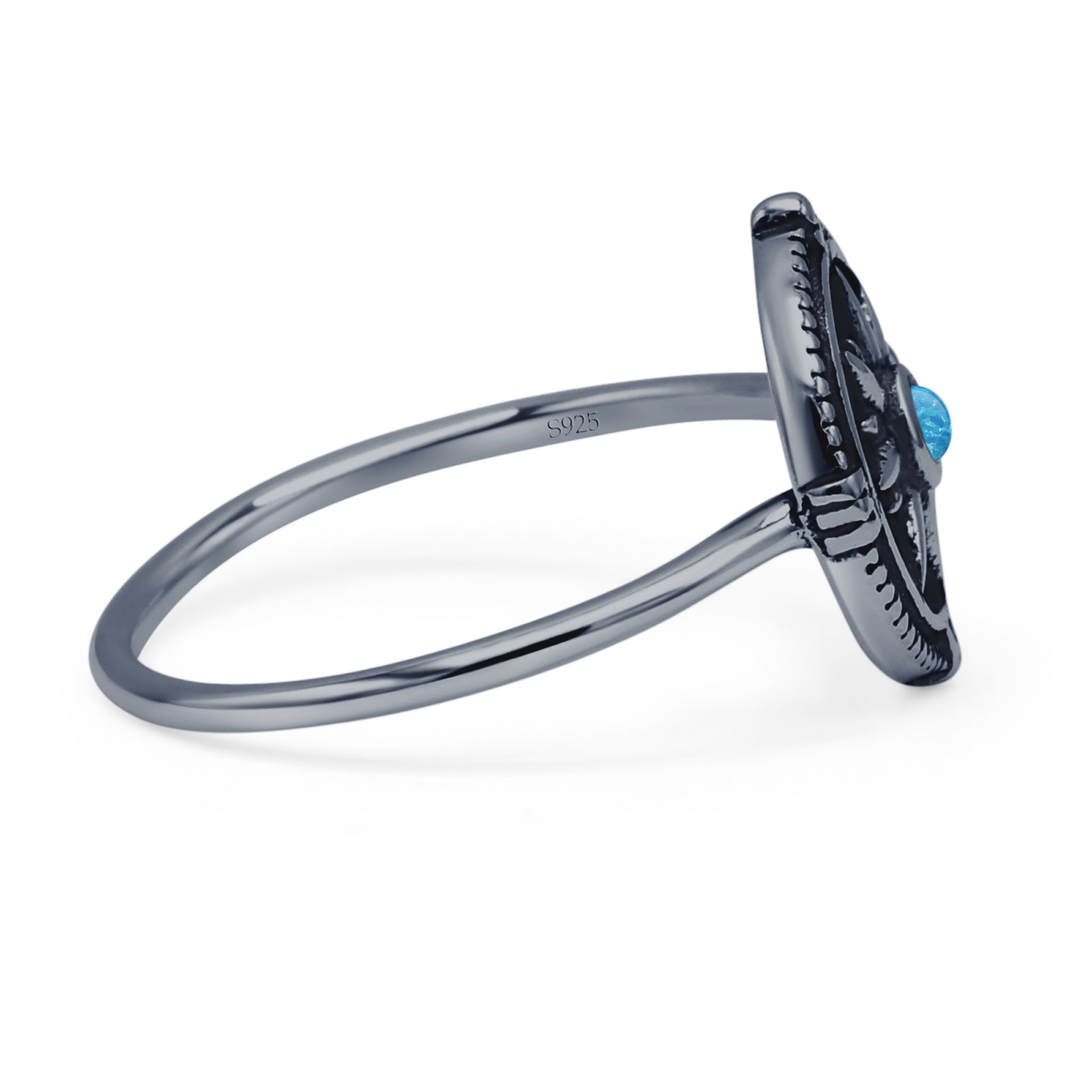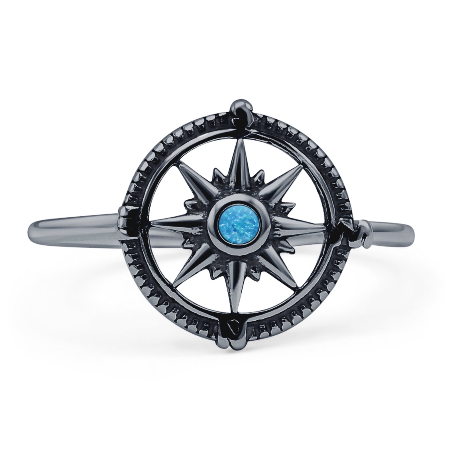 Design: Oxidized Round Lab Created Blue Opal Compass Ring.