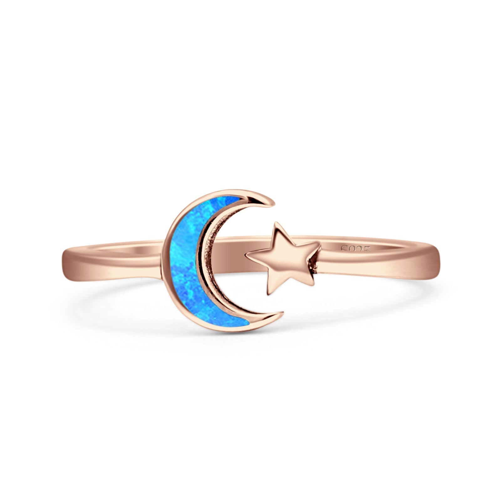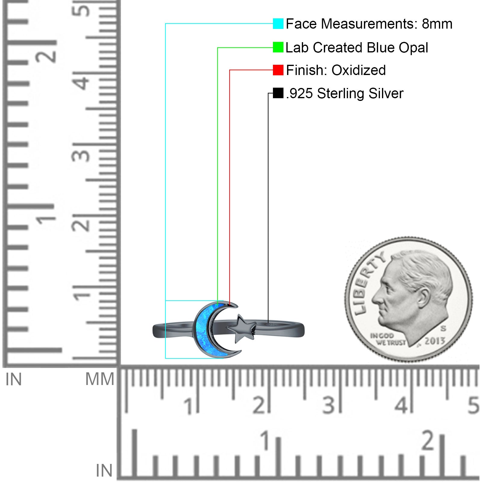 Design: Oxidized Lab Created Blue Opal Star & Moon Ring.