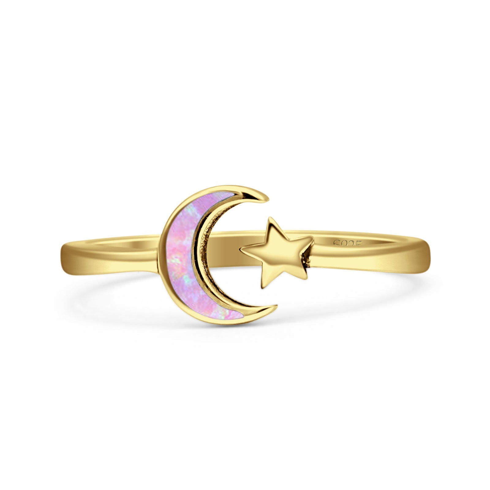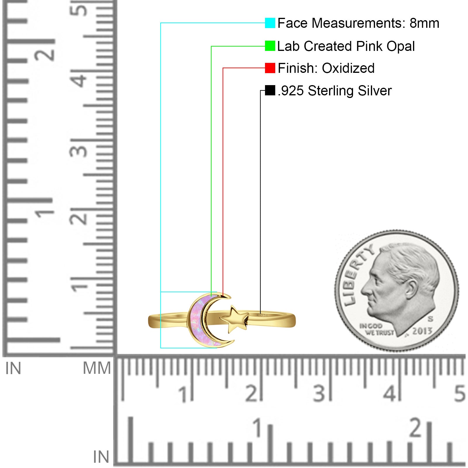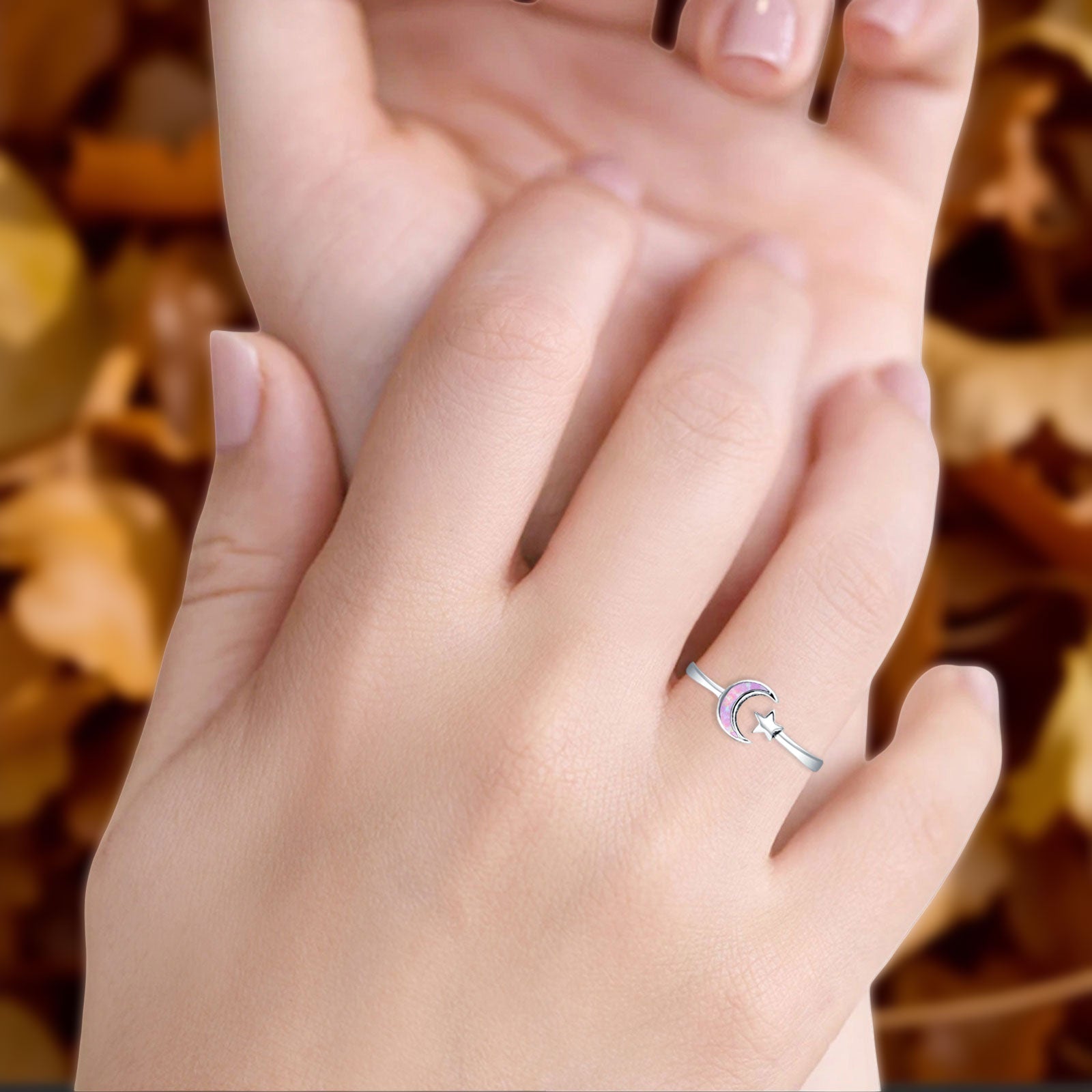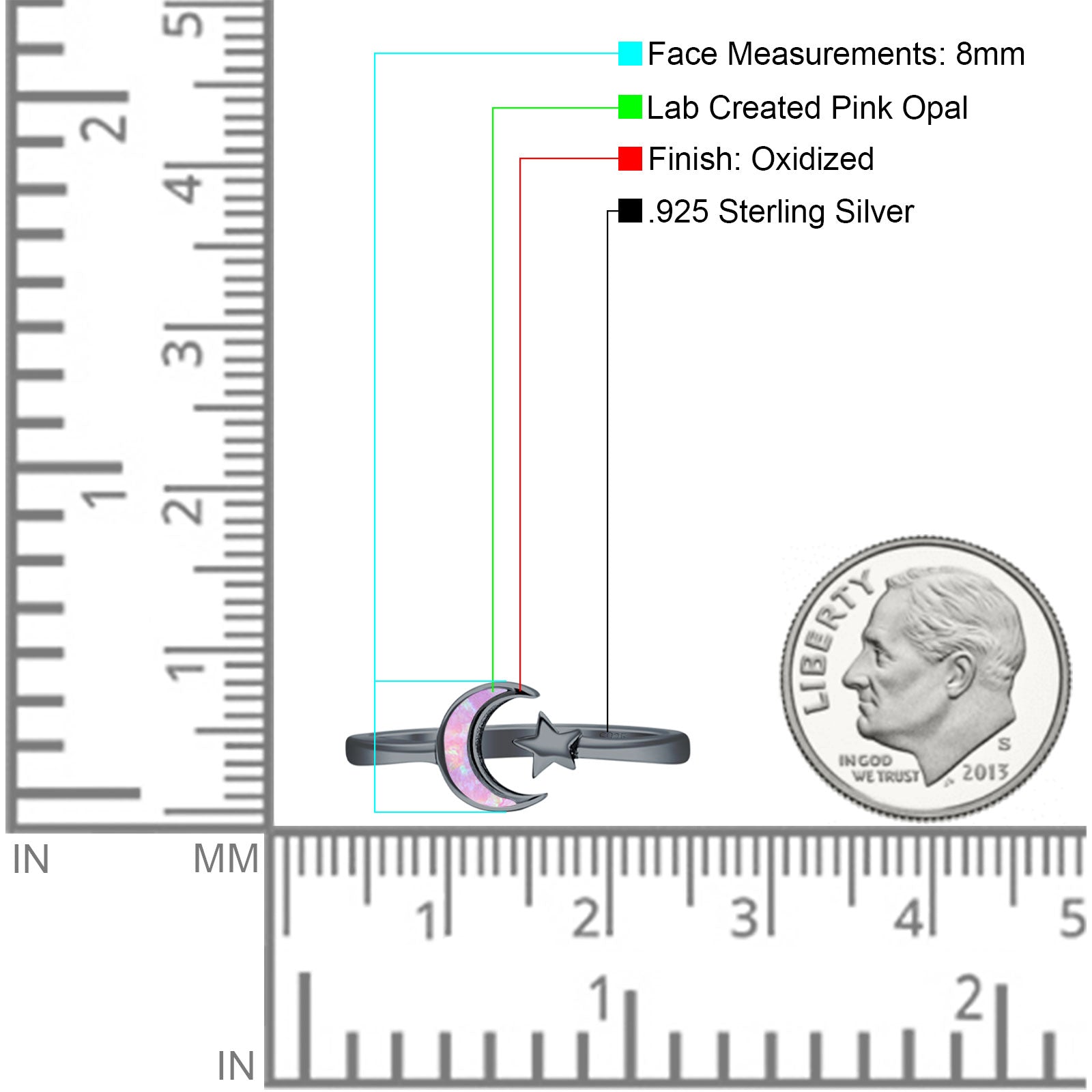 Design: Oxidized Lab Created Pink Opal Star & Moon Ring.