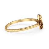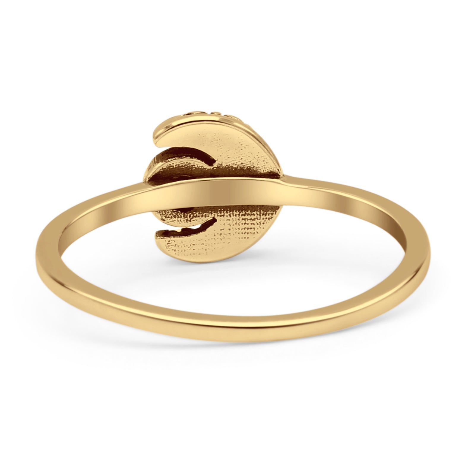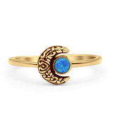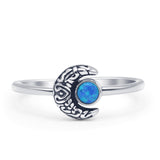 Minimalist 8mm Round Lab Created Blue Opal Crescent Moon Ring 925 Sterling Silver